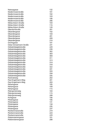 Natorpgasse 132 Niedermoserstraße 101 Niedermoserstraße 102 Niedermoserstraße 103 Niedermoserstraße 106 Niedermoserstraße 206 Niklas-Eslarn-Straße 103 Niklas-Eslarn-Straße 116 Niklas-Eslarn-Straße 120 Oberdorfstraße 201 Oleandergasse 102 Oleandergasse 103 Oleandergasse 201 Oleandergasse 209 Oleandergasse 210 Orchisgasse 101 Oskar-Grissemann-Straße 231 Ostbahnbegleitstraße 229 Ostbahnbegleitstraße 239 Ostbahnbegleitstraße 302 Ostbahnbegleitstraße 303 Ostbahnbegleitstraße 304 Ostbahnbegleitstraße 311 Ostbahnbegleitstraße 313 Ostbahnbegleitstraße 314 Ostbahnbegleitstraße 318 Ostbahnbegleitstraße 322 Ostbahnbegleitstraße 331 Ostbahnbegleitstraße 333 Ostbahnbegleitstraße 334 Ostbahnbegleitstraße 335 Pastinakweg 202 Paul-Engelmann-Weg 201 Paul-Engelmann-Weg 203 Pehamgasse 105 Pehamgasse 109 Pehamgasse 115 Pelargonienweg 103 Pelargonienweg 115 Pelargonienweg 208 Pichlgasse 106 Pilotengasse 106 Pilotengasse 131 Pilotengasse 134 Pilotengasse 235 Pilotengasse 237 Plankenmaisstraße 219 Plankenmaisstraße 223 Plankenmaisstraße 229 Plattensteinergasse 101 Plattensteinergasse 208