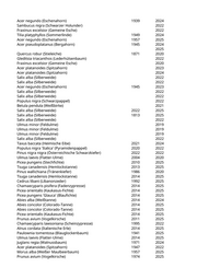 Koelreuteria paniculata (Blasenbaum) 1987 2025 Acer x freemanii (Rot-Ahorn) 2017 2025 Koelreuteria paniculata (Blasenbaum) 1977 2024 Magnolia grandiflora (Immergrüne Magnolie) 2023 2024 Aesculus hippocastanum (Rosskastanie) 1963 2021 Aesculus x carnea (Rotblühende Kastanie) 1952 2019 Magnolia grandiflora (Immergrüne Magnolie) 2023 2024 Pinus nigra nigra (Österreichische Schwarzkiefer) 2007 2024 Fagus sylvatica (Rotbuche) 2022 2025 Carpinus betulus 'Frans Fontaine' (Schlanke Säulenhainbuche) 2018 2024 Magnolia kobus (Baummagnolie) 2007 2019 Magnolia x soulangiana (Tulpenmagnolie) 2019 2023 Pinus nigra nigra (Österreichische Schwarzkiefer) 1953 2024 Aesculus x carnea (Rotblühende Kastanie) 1989 2019 Aesculus x carnea (Rotblühende Kastanie) 1963 2020 Quercus robur 'Fastigiata' (Säuleneiche) 1998 2019 Aesculus x carnea (Rotblühende Kastanie) 2016 2021 Aesculus x carnea (Rotblühende Kastanie) 1981 2023 Aesculus x carnea (Rotblühende Kastanie) 1936 2024 Sophora japonica (Schnurbaum) 1962 2019 Acer campestre (Feldahorn) 1982 2019 Acer campestre (Feldahorn) 1965 2022 Fagus sylvatica 'Laciniata' (Fiederblatt-Rotbuche) 2020 2022 Catalpa bignonioides (Trompetenbaum) 2006 2019 Catalpa bignonioides (Trompetenbaum) 2019 2023 Fagus sylvatica 'Fastigiata' (Säulenrotbuche) 2016 2024 Fagus sylvatica (Rotbuche) 2016 2020 Fagus sylvatica 'Fastigiata' (Säulenrotbuche) 2020 2021 Pinus nigra nigra (Österreichische Schwarzkiefer) 2017 2019 Pinus nigra nigra (Österreichische Schwarzkiefer) 1980 2019 Pinus nigra nigra (Österreichische Schwarzkiefer) 2019 2019 Aesculus hippocastanum (Rosskastanie) 1892 2024 Pinus nigra nigra (Österreichische Schwarzkiefer) 1986 2019 Pinus nigra nigra (Österreichische Schwarzkiefer) 2003 2019 Aesculus x carnea (Rotblühende Kastanie) 2015 2019 Koelreuteria paniculata (Blasenbaum) 1997 2019 Koelreuteria paniculata (Blasenbaum) 2019 2023 Fagus sylvatica (Rotbuche) 2016 2021 Sorbus aucuparia (Eberesche) 2016 2023 Aesculus x carnea (Rotblühende Kastanie) 1985 2020 Acer x freemanii (Rot-Ahorn) 2019 2023 Sophora japonica (Schnurbaum) 1951 2019 Tilia cordata (Winterlinde) 1956 2023 Acer negundo (Eschenahorn) 1970 2019 Acer negundo (Eschenahorn) 1999 2020 Fagus sylvatica 'Fastigiata' (Säulenrotbuche) 2016 2021 Liriodendron tulipifera 'Fastigiatum' (Säulentulpenbaum) 2016 2019 Fagus sylvatica (Rotbuche) 1986 2023 Fraxinus excelsior (Gemeine Esche) 1973 2020 Fraxinus excelsior (Gemeine Esche) 1932 2022 Celtis occidentalis (Westlicher Zürgelbaum) 1964 2022