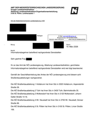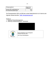 - 2 - Die NÖ Straßenbauabteilung 6 Amstetten hat ihren Sitz in 3300 Amstetten, Wagmeisterstraße 9. Die NÖ Straßenbauabteilung 7 Krems hat ihren Sitz in 3500 Krems, Drinkweldergasse 14. Die NÖ Straßenbauabteilung 8 Waidhofen an der Thaya hat ihren Sitz in 3830 Waidhofen/Thaya, Heidenreichsteiner Straße 42. Die personelle Ausstattung des Amtes der NÖ Landesregierung sowie der NÖ Straßen- bauabteilungen ist im vom NÖ Landtag beschlossenen Dienstpostenplan 2025 und 2026 des Landes Niederösterreich wie folgt festgelegt. Zusätzlich ist der Reinigungsdienst in folgendem Ausmaß zu berücksichtigen: