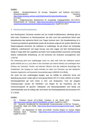 .BFA Bundesamt für Fremdenwesen und Asyl Seite 9 von 25 Quellen: - BMEIA - Bundesministerium für Europa, Integration und Äußeres (22.2.2017): Reiseinformationen - Tansania, https://www.bmeia.gv.at/reise-aufenthalt/reiseinformation/land/tansania/, Zugriff 22.2.2017 - EDA - Eidgenössisches Departement für auswärtige Angelegenheiten (22.2.2017): Reisehinweise für Tansania, https://www.eda.admin.ch/eda/de/home/vertretungen-und- reisehinweise/tansania/reisehinweise-fuertansania.html, Zugriff 22.2.2017 4. Rechtsschutz/Justizwesen Das Rechtssystem Tansanias orientiert sich am Vorbild Großbritanniens, allerdings gibt es lokal einen Pluralismus an Rechtssystemen, bei dem auch das autochthone Recht oder beispielsweise das islamische Recht zum Tragen kommen kann. Die Gewaltenteilung ist in Tansania grundsätzlich gewährleistet (wobei die Exekutive aufgrund der großen Mehrheit der Regierungspartei dominiert), die Judikative ist unabhängig. Sie gilt jedoch als hochgradig ineffizient, unterfinanziert und sogar korrupt, was eine zügige und faire Rechtsprechung häufig in Frage stellt. Die Legislative hat bisher noch eingeschränkte Autonomie und benötigt weitere institutionelle Entwicklung, um die Dominanz der Exekutive auszugleichen (GIZ 1.2017a). Die Verfassung sieht eine unabhängige Justiz vor, aber viele Teile der Judikative weisen große Defizite auf (s.o.) (vor allem in den Gerichten auf unterer Ebene) und unterliegen dem Einfluss der Exekutive. Richter und leitende Offiziere sind alle politische Beauftragte des Präsidenten. Der Zugang zur Justiz erfordert vor allem von Personen aus den ländlichen Gebieten logistische und finanzielle Herausforderungen (USDOS 13.4.2016). Die Justiz hat kein unabhängiges Budget, was sie anfällig für politischen Druck und Beeinflussung macht. Zudem gibt es nicht genug Richter (FH 27.1.2016; USDOS 13.4.2016). Rechtsstaatlichkeit gilt nicht immer in Zivil- und Strafsachen. Trotz der jüngsten Verbesserungen werden die Richtlinien und Regeln für die Festnahme und die Untersuchungshaft oft ignoriert. Selbstjustiz und Massengewalttaten sind häufig und Sicherheitskräfte sind oft unfähig oder nicht bereit, die Rechtsstaatlichkeit durchzusetzen (FH 27.1.2016). Quellen: - FH - Freedom House (27.1.2016): Freedom in the World 2016 - Tanzania, http://www.ecoi.net/local_link/327610/468226_de.html, Zugriff 22.2.2017 - GIZ - Deutsche Gesellschaft für Internationale Zusammenarbeit (1.2017a): Tansania - Geschichte, Staat und Politik, https://www.liportal.de/tansania/geschichte-staat/, Zugriff 22.2.2017 - USDOS - US Department of State (13.4.2016): Country Report on Human Rights Practices 2015 - Tanzania, https://www.ecoi.net/local_link/322617/462094_de.html, Zugriff 22.2.2017