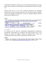 für gleichwertige medizinische Leistungen in den USA und Westeuropa günstiger. Dies hat dazu geführt, dass sich Thailand zu einem beliebten Ziel für Medizintourismus entwickelt hat (Allianz o.D.). Thailand verfügt über 62 von der Joint Commission International (JCI) akkreditierte Krankenhäuser, von denen 52 private Krankenhäuser sind. Thailand hat weltweit die viertgrößte Anzahl an JCI-akkreditierten Krankenhäusern, nur hinter den Vereinigten Arabischen Emiraten, Saudi-Arabien und Brasilien (ITA o.D.). Quellen: - AA - Auswärtiges Amt [Deutschland] (29.7.2025): Thailand: Reise- und Sicherheitshinweise, https://www.auswaertiges-amt.de/de/service/laender/thailand-node/thailandsicherheit/ 201558#content_5, Zugriff 11.8.2025 - Allianz (o.D.): Das Gesundheitswesen in Thailand, https://www.allianzcare.com/de/ressourcen/gesundheit-und-wellness/national- healthcaresystems/gesundheitswesen-in-thailand.html, Zugriff 12.8.2025 - ITA – International Trade Administration (o.D.): Healthcare – Thailand, https://www.trade.gov/healthcare-resource-guide-thailand, Zugriff 12.8.2025 22. Rückkehr Die Verfassung sieht die Freiheit der innerstaatlichen Bewegungsfreiheit, Auslandsreisen, Auswanderung und Rückführung vor; die Regierung setzt einige Ausnahmen durch, um „die Sicherheit des Staates, die öffentliche Ordnung, das öffentliche Wohl, die Stadt- und Landesplanung oder das Wohl der Jugend zu gewährleisten“ (USDOS 23.4.2024). Quellen: - USDOS - U.S. Department of State (23.4.2024): 2023 Country Report on Human Rights Practices: Thailand, https://www.ecoi.net/de/dokument/2107649.html, Zugriff 11.8.2025 .BFA Bundesamt für Fremdenwesen und Asyl Seite 29 von 29
