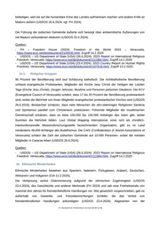 belästigen, weil sie auf die humanitäre Krise des Landes aufmerksam machen und andere Kritik an Maduro äußern (USDOS 26.6.2024; vgl. FH 2024). Die Führung der jüdischen Gemeinde äußerte sich besorgt über antisemitische Äußerungen von mit Maduro verbundenen Akteuren (USDOS 23.4.2024). Quellen: - FH – Freedom House (2024): Freedom in the World 2024 – Venezuela, https://www.ecoi.net/de/dokument/2105035.html, Zugriff 14.2.2025 - USDOS – US Department of State [USA] (26.6.2024): 2023 Report on International Religious Freedom: Venezuela, https://www.ecoi.net/de/dokument/2111984.html, Zugriff 14.2.2025 - USDOS – US Department of State [USA] (23.4.2024): 2023 Country Report on Human Rights Practices: Venezuela, https://www.ecoi.net/de/dokument/2107618.html, Zugriff 13.2.2025 15.1. Religiöse Gruppen 96 Prozent der Bevölkerung sind laut Schätzung katholisch. Die nichtkatholische Bevölkerung umfasst evangelische Protestanten, Mitglieder der Kirche Jesu Christi der Heiligen der Letzten Tage (Kirche Jesu Christi), Zeugen Jehovas, Muslime und Personen jüdischen Glaubens. Die ECV (Evangelical Council of Venezuela) schätzt, dass 17 bis 20 Prozent der Bevölkerung protestantisch sind, wobei die Mehrheit von ihnen Mitglieder evangelischer protestantischer Kirchen sind (USDOS 26.6.2024). Beobachter schätzen, dass viele Menschen die afro-stämmigen Religionen Santeria und Spiritismus parallel zum Christentum praktizieren. Führende Mitglieder der muslimischen Gemeinschaft schätzen, dass es etwa 100.000 bis 150.000 Anhänger des Islam gibt, wobei Sunniten die Mehrheit bilden. Laut Global Mapping International, einer sich als christlich- interkonfessionelle Missionsforschungsstelle bezeichnenden Organisation, gibt es im Land mindestens 48.000 Anhänger des Buddhismus. Die CAIV (Confederation of Jewish Associations of Venezuela) schätzt die Zahl der jüdischen Gemeinde auf 10.000 Personen, wobei die meisten Mitglieder in Caracas leben (USDOS 26.6.2024). Quellen: - USDOS – US Department of State [USA] (26.6.2024): 2023 Report on International Religious Freedom: Venezuela, https://www.ecoi.net/de/dokument/2111984.html, Zugriff 14.2.2025 16. Ethnische Minderheiten Ethnische Minderheiten bestehen aus Spaniern, Italienern, Portugiesen, Arabern, Deutschen, Afrikanern und Indigenen (CIA 12.2.2025). Die Verfassung verbot Diskriminierung aufgrund der ethnischen Zugehörigkeit (USDOS 23.4.2024), des Geschlechts und anderer Merkmale (FH 2024) und sah eine Freiheitsstrafe von maximal drei Jahren für fremdenfeindliche Handlungen vor. Wie gesetzlich vorgeschrieben, gab es außerhalb von Gewerbe- und Freizeiteinrichtungen Schilder, die das Verbot von fremdenfeindlichen Handlungen ankündigten (USDOS 23.4.2024). Abgesehen von der .BFA Bundesamt für Fremdenwesen und Asyl Seite 27 von 41