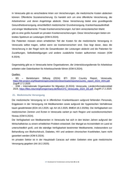 In Venezuela gibt es verschiedene Arten von Versicherungen, die medizinische Kosten abdecken können: Öffentliche Sozialversicherung: Es handelt sich um eine öffentliche Versicherung, die Arbeitnehmer und deren Angehörige abdeckt. Diese Versicherung bietet eine grundlegende Gesundheitsversorgung, einschließlich medizinischer Grundversorgung, Krankenhausaufenthalt und einiger Medikamente. Private Krankenversicherungen: Auf dem venezolanischen Markt gibt es eine große Auswahl an privaten Krankenversicherungen. Diese Versicherungen bieten ein breites Spektrum an Leistungen (IOM 8.2024). Die Patienten müssen einen erheblichen Teil der Kosten für die medizinische Versorgung in Venezuela selbst tragen, selbst wenn sie krankenversichert sind. Das liegt daran, dass die Versicherung in der Regel nicht die Gesamtkosten der Leistungen abdeckt und die Patienten für Zuzahlungen, Selbstbeteiligungen und andere zusätzliche Kosten aufkommen müssen (IOM 8.2024). Gegenwärtig gibt es in Venezuela keine Organisationen, die Unterstützungsdienste für Arbeitslose anbieten oder Datenbanken für Arbeitssuchende führen (IOM 8.2024). Quellen: - BS – Bertelsmann Stiftung (2024): BTI 2024 Country Report, Venezuela, https://bti-project.org/fileadmin/api/content/en/downloads/reports/country_report_2024_VEN.pdf, Zugriff 17.2.2025 - IOM – Internationale Organisation für Migration (8.2024): Venezuela, Länderinformationsblatt 2024, https://files.returningfromgermany.de/files/CFS_Venezuela_2024_DE.pdf, Zugriff 17.2.2025 21. Medizinische Versorgung Die medizinische Versorgung ist in öffentlichen Krankenhäusern aufgrund fehlenden Personals, Engpässen in der Versorgun g mit Medikamenten sowie aufgrund der hygienischen Verhältnisse kaum gewährleistet (EDA 18.2.2025; vgl. AA 18.2.2025, BMEIA 18.2.2025b). Die Verfügbarkeit von medizinischen Zentren und Ärzten in Venezuela variiert je nach Region und sozioökonomischem Niveau (IOM 8.2024). Die Verfügbarkeit von Medikamenten in Venezuela hat sich in den letzten Jahren aufgrund der Wirtschaftskrise zu einem erheblichen Problem entwickelt. Der Mangel an Arzneimitteln im Land ist unterschiedlich groß, und die ständige Verfügbarkeit bestimmter Medikamente, insbesondere zur Behandlung von Bluthochdruck, Diabetes, HIV und anderen chronischen Krankheiten, kann nicht garantiert werden (IOM 8.2024). Im privaten Sektor ist in der Hauptstadt Caracas auf vielen Gebieten eine gute medizinische Versorgung gegeben (AA 18.2.2025). .BFA Bundesamt für Fremdenwesen und Asyl Seite 39 von 41