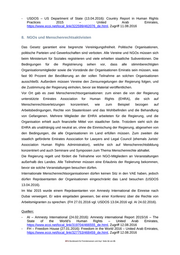 - USDOS – US Department of State (13.04.2016): Country Report in Human Rights Practices 2015 – United Arab Emirates, https://www.ecoi.net/local_link/322599/462076_de.html, Zugriff 11.08.2016 8. NGOs und Menschenrechtsaktivisten Das Gesetz garantiert eine begrenzte Vereinigungsfreiheit. Politische Organisationen, politische Parteien und Gewerkschaften sind verboten. Alle Vereine und NGOs müssen sich beim Ministerium für Soziales registrieren und viele erhielten staatliche Subventionen. Die Bedingungen für die Registrierung sehen vor, dass alle stimmberechtigten Organisationsmitglieder sowie die Vorstände der Organisationen Emiratis sein müssen, was fast 90 Prozent der Bevölkerung an der vollen Teilnahme an solchen Organisationen ausschließt. Außerdem müssen Vereine den Zensurregelungen der Regierung folgen, und die Zustimmung der Regierung einholen, bevor sie Material veröffentlichen. Vor Ort gab es zwei Menschenrechtsorganisationen: zum einen die von der Regierung unterstützte Emirates Association for Human Rights (EHRA), die sich auf Menschenrechtsverletzungen konzentriert, wie zum Beispiel bezogen auf Arbeitsbedingungen, Rechte von Staatenlosen und das Wohlbefinden und die Behandlung von Gefangenen. Mehrere Mitglieder der EHRA arbeiteten für die Regierung, und die Organisation erhielt auch finanzielle Mittel von staatlicher Seite. Trotzdem sieht sich die EHRA als unabhängig und neutral an, ohne die Einmischung der Regierung, abgesehen von den Bedingungen, die alle Organisationen im Land erfüllen müssen. Zum zweiten die staatlich geförderte Emirates Association for Lawyers and Legal Council (ehemals Jurists‘ Association Human Rights Administration), welche sich auf Menschenrechtsbildung konzentriert und auch Seminare und Symposien zum Thema Menschenrechte abhaltet. Die Regierung regelt und fördert die Teilnahme von NGO-Mitgliedern an Veranstaltungen außerhalb des Landes. Alle Teilnehmer müssen eine Erlaubnis der Regierung bekommen, bevor sie solche Veranstaltungen besuchen dürfen. Internationale Menschenrechtsorganisationen dürfen keinen Sitz in den VAE haben, jedoch dürfen Repräsentanten der Organisationen eingeschränkt das Land besuchen (USDOS 13.04.2016). Im Mai 2015 wurde einem Repräsentanten von Amnesty International die Einreise nach Dubai verweigert. Er wäre eingeladen gewesen, bei einer Konferenz über die Rechte von Arbeitsmigranten zu sprechen. (FH 27.01.2016 vgl. USDOS 13.04.2016 vgl. AI 24.02.2016). Quellen: - AI – Amnesty International (24.02.2016): Amnesty international Report 2015/16 – The State of the World’s Human Rights – United Arab Emirates, https://www.ecoi.net/local_link/319704/466555_de.html, Zugriff 12.08.2016 - FH – Freedom House (27.01.2016): Freedom in the World 2016 – United Arab Emirates, https://www.ecoi.net/local_link/327753/468459_de.html, Zugriff 12.08.2016 .BFA Bundesamt für Fremdenwesen und Asyl Seite 11 von 21