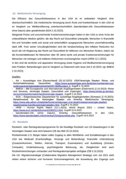 22. Medizinische Versorgung Die Effizienz des Gesundheitswesens in den USA ist im weltweiten Vergleich eher überdurchschnittlich. Die medizinische Versorgung durch Ärzte und Krankenhäuser in den USA ist im Vergleich zur Weltbevölkerung unterdurchschnittlich (laenderdaten.info Gesundheitswesen ohne Datum) aber gewährleistet (EDA 2.10.2023). Steigende Preise und unzureichende Krankenversicherungen haben in den USA zu einer Krise der unbezahlbaren Medizin geführt, die das Recht auf Gesundheit untergräbt, Menschen in finanzielle Not und Schulden treibt und sozial und wirtschaftlich ausgegrenzte Menschen unverhältnismäßig stark trifft. Trotz seiner Unzulänglichkeiten wird die Verabschiedung des Inflation Reduction Act durch die US-Regierung das Recht auf Gesundheit für Millionen von Menschen fördern, indem sie die Arzneimittelkosten für Menschen über 65 Jahre senkt und private Krankenversicherungen für Menschen mit niedrigen und mittleren Einkommen erschwinglicher macht (HRW 12.1.2023). In den sind die ärztliche und apparative Versorgung sowie Hygiene und Medikamentenversorgung kein Problem. Behandlungen sind im Vergleich zu Österreich sehr teuer (AA 2.10.2023; vgl. BMEIA 2.10.2023). Quellen: -AA – Auswärtiges Amt [Deutschland] (20.10.2023): USA/Vereinigte Staaten: Reise- und Sicherheitshinweise, Gesundheit, https://www.auswaertiges-amt.de/de/service/laender/usa- node/usavereinigtestaatensicherheit/201382#content_5, Zugriff 2.10.2023 -BMEIA – BM Europäische und internationale Angelegenheiten [Österreich] (2.10.2023): Reise und Services, Vereinigte Staaten, Gesundheit und Impfungen, https://www.bmeia.gv.at/reise- services/reiseinformation/land/vereinigte-staaten, Zugriff 2.10.2023 - EDA – Eidgenössisches Departement für auswärtige Angelegenheiten [Schweiz] (2.10.2023): Reisehinweise für die Vereinigten Staaten von Amerika, Medizinische Versorgung, https://www.eda.admin.ch/eda/de/home/vertretungen-und-reisehinweise/vereinigte-staaten/ reisehinweise-fuerdievereinigtenstaaten.html, Zugriff 2.10.2023 -HRW – Human Rights Watch (12.1.2023): World Report 2023 – United States, https://www.ecoi.net/de/dokument/2085513.html, Zugriff 15.9.2023 -laenderdaten.info (ohne Datum): Amerika, Gesundheitswesen in den USA, https://www.laenderdaten.info/Amerika/USA/gesundheit.php, Zugriff 19.9.2023 23. Rückkehr Rückkehr- oder Reintegrationsprogramme für die freiwillige Rückkehr von US-Staatsbürgern in die Vereinigten Staaten sind nicht bekannt (VB des BMI 20.10.2023). Rückkehrende U.S. Bürger haben vollen Zugang zu allen Wohlfahrts- und Sozialleistungen in den USA wie Medicaid (Krankenpflege, Vorsorge und Behandlung), finanzielle Unterstützung (Zusatzeinkommen, Telefon, Internet, Transport, Essenskarten) und Ausbildung (Schulen, Computer), Kinderbetreuung, psychologische Betreuung, etc. Desgleichen sind auch Rückkehreinrichtungen vorhanden und Reintegrationsprojekte verfügbar (ÖB 5.10.2023). Die US- Migrationsstrategie (Collaborative Migration Management Strategy) vom Juli 2021 sieht neben einem sicheren und humanen Grenzmanagement, der Ausweitung des Zugangs zum .BFA Bundesamt für Fremdenwesen und Asyl Seite 26 von 27