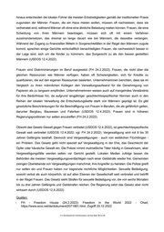 .BFA Bundesamt für Fremdenwesen und Asyl Seite 16 von 21 hinaus entscheiden die lokalen Führer die meisten Erbstreitigkeiten gemäß der traditionellen Praxis zugunsten der Männer. Frauen, die ein Haus mieten wollen, müssen oft nachweisen, dass sie verheiratet sind, während Männer oft ohne eine ähnliche Belastung mieten können. Frauen, die eine Scheidung von ihren Männern beantragen, müssen sich oft mit einem Verfahren auseinandersetzen, das dreimal so lange dauert wie bei Männern, die dasselbe verlangen. Während der Zugang zu finanziellen Mitteln in Sorgerechtsfällen in der Regel den Männern zugute kommt, sprechen einige Gerichte wirtschaftlich benachteiligten Frauen, die nachweislich besser in der Lage sind, sich um die Kinder zu kümmern, das Sorgerecht zu als den besser gestellten Männern (USDOS 12.4.2022). Frauen sind Diskriminierungen im Beruf ausgesetzt (FH 24.2.2022). Frauen, die nicht über die gleichen Ressourcen wie Männer verfügen, haben oft Schwierigkeiten, sich für Kredite zu qualifizieren, die auf den eigenen Ressourcen basierten. Unternehmerinnen berichten, dass sie im Vergleich zu ihren männlichen Kollegen den Verwaltungsaufwand für die Genehmigung von Papieren als zu langsam empfinden. Unternehmerinnen weisen auch auf mangelndes Verständnis für ihre Bedürfnisse hin, da aufgrund langjähriger geschlechtsspezifischer Normen auch in den Reihen der lokalen Verwaltung die Entscheidungskette stark von Männern geprägt ist. Es gibt gesetzliche Beschränkungen für die Beschäftigung von Frauen in Berufen, die als gefährlich gelten, darunter Bergbau, Bauwesen und Fabriken (USDOS 12.4.2022). Frauen sind in höheren Regierungspositionen nur selten anzutreffen (FH 24.2.2022). Obwohl das Gesetz Gewalt gegen Frauen verbietet (USDOS 12.4.2022), ist geschlechtsspezifische Gewalt weit verbreitet (USDOS 12.4.2022; vgl. FH 24.2.2022). Vergewaltigung wird mit 8 bis 30 Jahren Gefängnis bestraft. Dennoch sind Vergewaltigungen - auch von weiblichen Flüchtlingen - ein Problem. Das Gesetz geht nicht speziell auf Vergewaltigung in der Ehe, das Geschlecht der Opfer oder häusliche Gewalt ein. Die Polizei nimmt mutmaßliche Täter häufig in Gewahrsam, aber Vergewaltigungsfälle werden selten vor Gericht gestellt. Lokalen Medien zufolge lassen die Behörden die meisten Vergewaltigungsverdächtigen nach einer Geldstrafe wieder frei. Gemeinden zwingen Überlebende von Vergewaltigungen manchmal, ihre Angreifer zu heiraten. Die Polizei greift nur selten ein und Frauen haben nur begrenzte rechtliche Möglichkeiten. Sexuelle Belästigung, sowohl verbal als auch körperlich, ist auf allen Ebenen der Gesellschaft weit verbreitet und betrifft in der Regel Frauen. Das Gesetz sieht Strafen für sexuelle Belästigung vor, die von sechs Monaten bis zu drei Jahren Gefängnis und Geldstrafen reichen. Die Regierung setzt das Gesetz aber nicht wirksam durch (USDOS 12.4.2022). Quellen: - FH - Freedom House (24.2.2022): Freedom in the World 2022 - Chad, https://www.ecoi.net/de/dokument/2071861.html, Zugriff 20.12.2022
