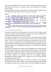 Das Gesetz verbietet die schlimmsten Formen der Kinderarbeit. Nach dem Arbeitsgesetz ist das Mindestalter für den Abschluss eines Arbeitsvertrags 18 Jahre. Ein Kind im Alter von 15 Jahren kann jedoch mit Erlaubnis der Eltern und der Gewerkschaft vier bis sechs Stunden pro Tag und bis zu 24 Stunden pro Woche arbeiten. Das Gesetz verbietet Kindern auch, Überstunden zu machen oder zwischen 22:00 und 6:00 Uhr zu arbeiten, und schützt Kinder vor Ausbeutung am Arbeitsplatz. Kinder arbeiten informell auf Märkten und Basaren als Träger, die Karren mit schweren Lasten transportieren (USDOS 23.4.2024). Kinder aus verarmten Familien arbeiten oft im Freien und verkaufen Produkte wie Lebensmittel und Wasser (FH 2024). Quellen: - CEDAW – United Nations Committee on the Elimination of Discrimination Against Women (20.2.2024): Concluding observations on the sixth periodic report of Turkmenistan [CEDAW/C/TKM/CO/6], https://www.ecoi.net/en/file/local/2105452/CEDAW_C_TKM_CO_6_57561_E.docx, Zugriff 19.6.2024 - FH – Freedom House (2024): Freedom in the World 2024 - Turkmenistan, https://www.ecoi.net/de/dokument/2108024.html, Zugriff 19.6.2024 - UNICEF – United Nations International Children's Emergency Fund (o.D.a): Quality inclusive education, https://www.unicef.org/turkmenistan/quality-inclusive-education, Zugriff 19.6.2024 - UNICEF – United Nations International Children's Emergency Fund (o.D.b): Social and child protection, https://www.unicef.org/turkmenistan/social-and-child-protection, Zugriff 19.6.2024 - UNICEF – United Nations International Children's Emergency Fund (o.D.c): Child health, nutrition and early childhood development, https://www.unicef.org/turkmenistan/child-health- nutrition-and-early-childhood-development, Zugriff 19.6.2024 - USDOS – United States Department of State [USA] (23.4.2024): 2023 Country Report on Human Rights Practices: Turkmenistan, https://www.ecoi.net/de/dokument/2107632.html, Zugriff 19.6.2024 12. Bewegungsfreiheit Jeder Bürger Turkmenistans hat gemäß der turkmenischen Verfassung, den Gesetzen und internationalen Verträgen im Bereich der Menschenrechte das Recht auf Bewegungsfreiheit, freie Wahl des Wohnsitzes und des Aufenthaltsortes im gesamten Staatsgebiet (TURK 2005, Art. 40). Es besteht jedoch keine Bewegungs- oder Niederlassungsfreiheit (BS 19.3.2024). Für die Bewegung im Land sind Inlandsreisepässe (Personalausweise) und Aufenthaltsgenehmigungen gesetzlich verlangt. Das Gesetz sieht ein internes Exil vor, bei dem Personen für einen festgelegten Zeitraum von zwei bis fünf Jahren in einem bestimmten Gebiet wohnen müssen (USDOS 23.4.2024). Laut Freedom House behindern die Inlandsreisepässe und das System von Aufenthaltsgenehmigungen das Reisen innerhalb des Landes (FH 2024). Berichten zufolge gibt es Beschränkungen der Bewegungsfreiheit und des Aufenthaltsrechts sowie des Rechts, das Land zu verlassen (USDOS 23.4.2024; vgl. FH 2024). Gemäß dem turkmenischen Migrationsgesetz wird die Ausreise aus dem Land vorübergehend beschränkt, wenn die Ausreise eines turkmenischen Staatsbürgers den Interessen der nationalen Sicherheit .BFA Bundesamt für Fremdenwesen und Asyl Seite 18 von 22