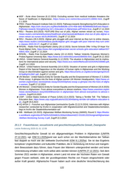 ■ MSF - Ärzte ohne Grenzen (6.12.2024): Excluding women from medical institutes threatens the future of healthcare in Afghanistan, https://www.ecoi.net/en/document/2118866.html , Zugriff 2.1.2025 ■ PRIO - Peace Research Institute Oslo (12.2023): Pathways towards Strengthening Girl’s Education in Afghanistan, https://cdn.cloud.prio.org/files/0edb828b-cd7d-4f3b-bbf2-f92989b69c5b/Event Report - Pathways towards Strengthening Girl s Education in Afghanistan.pdf?inline=true, Zugriff 17.12.2024 ■ REU - Reuters (8.8.2023): FEATURE-Shut out of jobs, Afghan women retrain as nurses, https: //www.reuters.com/article/business/healthcare-pharmaceuticals/feature-shut-out-of-jobs-afghan-w omen-retrain-as-nurses-idUSL8N3934R3 , Zugriff 17.12.2024 ■ REU - Reuters (28.3.2023): Afghan girls struggle with poor internet as they turn to online classes, https://www.reuters.com/world/asia-pacific/afghan-girls-struggle-with-poor-internet-they-turn-onlin e-classes-2023-03-27 , Zugriff 17.12.2024 ■ RFE/RL - Radio Free Europe/Radio Liberty (20.12.2023): Secret Schools Offer ’A Ray Of Hope’ For Rural Afghan Girls, https://www.rferl.org/a/afghanistan-secret-schools-girls-education-taliban/327 40641.html, Zugriff 17.12.2024 ■ RFE/RL - Radio Free Europe/Radio Liberty (22.12.2022): Taliban Violently Disperses Women’s Protest Against University Ban, https://www.ecoi.net/en/document/2084556.html, Zugriff 29.12.2022 ■ UNGA - United Nations General Assembly (1.12.2023): The situation in Afghanistan and its implica tions for international peace and security, https://www.ecoi.net/en/file/local/2102425/N2336960.pdf, Zugriff 14.2.2024 ■ UNGA - United Nations General Assembly (15.6.2023): Situation of women and girls in Afghanistan. Report of the Special Rapporteur on the situation of human rights in Afghanistan and the Working Group on discrimination against women and girls, https://documents.un.org/doc/undoc/gen/g23/125 /67/pdf/g2312567.pdf, Zugriff 17.12.2024 ■ UN Women - United Nations Entity for Gender Equality and the Empowerment of Women (7.3.2024): Photo essay: A glimpse into the lives of Afghan women UN Women Headquarters, https://www.un women.org/en/news-stories/photo-essay/2024/03/photo-essay-a-glimpse-into-the-lives-of-afgha n-women, Zugriff 17.12.2024 ■ UN Women - United Nations Entity for Gender Equality and the Empowerment of Women (15.8.2023): Women in Afghanistan: From almost everywhere to almost nowhere, https://www.unwomen.org/en /news-stories/feature-story/2023/08/women-in-afghanistan-from-almost-everywhere-to-almost-n owhere, Zugriff 8.9.2023 ■ USIP - United States Institute of Peace [USA] (13.4.2023): Taking a Terrible Toll: The Taliban’s Education Ban, https://www.usip.org/publications/2023/04/taking-terrible-toll-talibans-education-b an, Zugriff 29.8.2023 ■ VQ AFGH 2 - Forscher aus Afghanistan [vertrauliche Quelle 2] (12.9.2024): Interview with Afghan researcher conducted by EUAA in cooperation with Migrationsverket and Staatendokumentation, liegt im Archiv der Staatendokumentation auf ■ WB - Weltbank (10.2023): Afghanistan Welfare Monitoring Survey (AWMS); Round 3, https://thedoc s.worldbank.org/en/doc/975d25c52634db31c504a2c6bee44d22-0310012023/original/Afghanistan -Welfare-Monitoring-Survey-3.pdf , Zugriff 22.3.2024 20.1.3 Frauenhäuser, sexualisierte und geschlechtsspezifische Gewalt, Zwangsehe Letzte Änderung 2025-01-31 12:06 Geschlechtsspezifische Gewalt ist ein allgegenwärtiges Problem in Afghanistan (UNFPA 27.12.2021; vgl. IOM 9.1.2025a)und war auch schon vor der Machtübernahme der Taliban fast doppelt so hoch wie der weltweite Durchschnitt (IOM 9.1.2025a). Sie ist das Ergebnis komplexer Ungleichheiten und kultureller Praktiken, die in Verbindung mit Armut und mangeln dem Bewusstsein dazu führen, dass Frauen den Männern untergeordnet werden und keine Unterstützung erhalten oder nicht selbst aktiv werden können (UNFPA 27.12.2021). Seit dem Sommer 2021 werden in Afghanistan, einem Land mit einer der höchsten Raten von Gewalt gegen Frauen weltweit, viele der grundlegendsten Rechte von Frauen eingeschränkt oder außer Kraft gesetzt. Afghanische Frauen haben auch eine deutliche Verschlechterung des 122