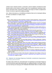 verboten wurde, männliche Schüler zu unterrichten, wodurch weibliche Lehrkräfte ihrer Arbeit beraubt wurden und die Schüler in weiterer Folge oft von unqualifizierten männlichen Ersatz lehrern unterrichtet werden. Körperliche Züchtigung, schon lange ein Problem an afghanischen Schulen, hat ebenso zugenommen (HRW 11.12.2023). Anm.: Weitere Informationen zur Schulbildung von Mädchen finden sich im Unterkapitel „ Bildung für Frauen und Mädchen“ im Kapitel „ Frauen“. Quellen ■ 8am - Hasht-e Sobh (16.7.2023): Dissolution of Teacher Training Department: Trainers and Staff Demand a Reconsideration, https://8am.media/eng/dissolution-of-teacher-training-department-tra iners-and-staff-demand-a-reconsideration , Zugriff 24.1.2024 ■ 8am - Hasht-e Sobh (17.12.2022): EXCLUSIVE: Taliban Modify Education Curriculum to Propagate Violence and Bigotry - Hasht-e Subh Daily, https://8am.media/eng/exclusive-taliban-modify-educati on-curriculum-to-propagate-violence-and-bigotry/?fbclid=IwAR3pDgU_RfsRxB679XHZLctkQ7Kv7 B1r2qlFyobzFv6znap0L7n8l1ttoQI, Zugriff 30.1.2023 ■ BAMF - Bundesamt für Migration und Flüchtlinge [Deutschland] (31.12.2023): Briefing Notes Zu sammenfassung: Afghanistan - Juli bis Dezember 2023, https://milo.bamf.de/OTCS/cs.exe/app/nod es/29188455, Zugriff 22.1.2024 [Login erforderlich] ■ DIP - Diplomat, The (21.12.2022): What Does a Taliban School Curriculum Look Like?, https://thed iplomat.com/2022/12/what-does-a-taliban-school-curriculum-look-like , Zugriff 27.1.2023 ■ HRW - Human Rights Watch (11.12.2023): Afghanistan: Taliban Schools Also Failing Boys, https: //www.hrw.org/news/2023/12/05/afghanistan-taliban-schools-also-failing-boys , Zugriff 22.3.2024 ■ HRW - Human Rights Watch (20.12.2022): Afghan University Women Feared This Dark Day, https: //www.ecoi.net/en/document/2084641.html, Zugriff 29.12.2022 ■ KP - Khaama Press (13.7.2023): Authorities Confirm Closure of Teacher Training Centers Across Afghanistan, https://www.khaama.com/authorities-confirm-closure-of-teacher-training-centers-acr oss-afghanistan, Zugriff 24.1.2024 ■ Rawadari - Rawadari (11.2023): The human Rights Situation of Children in Afghanistan: Violations of Civil and Political Rights – Rawadari, https://rawadari.org/wp-content/uploads/2023/11/RW_Chil dReport_English.pdf?#, Zugriff 2.4.2024 ■ RFE/RL - Radio Free Europe/Radio Liberty (22.12.2022): Taliban Violently Disperses Women’s Protest Against University Ban, https://www.ecoi.net/en/document/2084556.html, Zugriff 29.12.2022 ■ RFE/RL - Radio Free Europe/Radio Liberty (25.6.2022): ’War On Education’: Taliban Converting Secular Schools Into Religious Seminaries, https://www.rferl.org/a/taliban-secular-schools-convert ed-madrasahs-education/31914672.html, Zugriff 31.1.2023 ■ TN - Tolonews (12.7.2023): DeepL UÜbersetzer: Der praäziseste UÜbersetzer der Welt, https: //www.deepl.com/de/translator, Zugriff 24.1.2024 ■ UNGA - United Nations General Assembly (1.12.2023): The situation in Afghanistan and its implica tions for international peace and security, https://www.ecoi.net/en/file/local/2102425/N2336960.pdf, Zugriff 14.2.2024 ■ VOA - Voice of America (16.9.2022): Public Education in Afghanistan Faces Collapse, for Boys and Girls, https://www.voanews.com/a/public-education-in-afghanistan-faces-collapse-for-boys-and-gir ls-/6749304.html, Zugriff 31.1.2023 20.3 Mitglieder der ehemaligen Regierung / Streitkräfte / ausländischer Organisationen Letzte Änderung 2024-03-29 09:57 Die Taliban haben offiziell eine „ Generalamnestie“ für Angehörige der ehemaligen Regierung und Sicherheitskräfte angekündigt (AA 26.6.2023; vgl. UNAMA 22.8.2023). Hochrangige Taliban, auch das Oberhaupt der Bewegung, Emir Haibatullah Akhundzada, haben die Taliban-Kämpfer 130