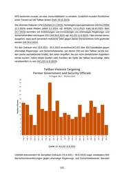 AFN bestechen musste, um eine „ Immunitätskarte“ zu erhalten. Zusätzlich mussten Rückkehrer einen Treueid auf die Taliban leisten (KaN 18.10.2023). Die Vereinten Nationen (VN) (UNAMA 22.1.2023), Nichtregierungsorganisationen (NGOs) (HRW 11.1.2024) sowie Medien (Afintl 3.2.2024; vgl. RFE/RL 13.11.2023, KaN 18.10.2023, 8am 23.7.2023) berichten von Entführungen und Ermordungen von ehemaligen Regierungs- und Sicherheitskräften seit August 2021 (AA 26.6.2023; vgl. ACLED 11.8.2023). Täter können davon ausgehen, dass auch persönlich motivierte Taten gegen diesen Personenkreis nicht geahndet werden (AA 26.6.2023). Für den Zeitraum vom 16.8.2021 - 30.5.2023 verzeichnet ACLED über 400 Gewalttaten gegen ehemalige Regierungs- und Sicherheitsbeamte, von denen 290 von den Taliban verübt wur den (siehe nachstehende Grafik). Bei vielen Angriffen, die von nicht identifizierten Angreifern verübt wurden, haben lokale Quellen oder Familien der Opfer die Taliban beschuldigt, dafür verantwortlich zu sein (ACLED 11.8.2023). Quelle 13: ACLED 11.8.2023 UNAMA dokumentiert für denselben Zeitraum (15.8.2021 - 30.6.2023) sogar mindestens 800 Menschrechtsverletzungen gegen ehemalige Regierungs- und Sicherheitsbeamte, darunter 132
