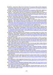 ■ UNOCHA - United Nations Office for the Coordination of Humanitarian Affairs (6.2024): Afghanistan: Humanitarian Update, June 2024, https://www.unocha.org/publications/report/afghanistan/afghanist an-humanitarian-update-june-2024 , Zugriff 8.10.2024 ■ UNOCHA - United Nations Office for the Coordination of Humanitarian Affairs (2024): Afghanistan: Drought - 2021-2024, https://reliefweb.int/disaster/dr-2021-000022-afg , Zugriff 21.10.2024 ■ UNOCHA - United Nations Office for the Coordination of Humanitarian Affairs (23.12.2023): Af ghanistan Humanitarian Needs and Response Plan 2024 (December 2023) [EN/Dari/PS], https: //www.unocha.org/publications/report/afghanistan/afghanistan-humanitarian-needs-and-respons e-plan-2024-december-2023-endarips , Zugriff 30.10.2024 ■ UNOCHA - United Nations Office for the Coordination of Humanitarian Affairs (16.11.2023a): Today’s top news: Occupied Palestinian Territory, Afghanistan, https://www.unocha.org/news/todays-top-n ews-occupied-palestinian-territory-afghanistan-1 , Zugriff 20.2.2024 ■ UNOCHA - United Nations Office for the Coordination of Humanitarian Affairs (16.11.2023b): Afghanistan: Herat Earthquake Response Plan (October 2023 - March 2024) [EN/Dari/Pashto] - Afghanistan, https://reliefweb.int/report/afghanistan/afghanistan-herat-earthquake-response-plan- october-2023-march-2024-endaripashto?_gl=1*x3nind*_ga*OTQ3MDYyNTk3LjE2NzQyMzE0NDM. *_ga_E60ZNX2F68*MTcwMjM4NjQ0NS4xMy4xLjE3MDIzODgyNzIuMjkuMC4w#:~:text=This multi- sectoral Herat Earthquake,months in earthquake affected areas., Zugriff 20.2.2024 ■ UNOCHA - United Nations Office for the Coordination of Humanitarian Affairs (20.10.2023): Herat Earthquakes: Flash Update #7 Earthquakes in Herat Province, Western Region, Afghanistan (20 October 2023) - Afghanistan, https://reliefweb.int/report/afghanistan/herat-earthquakes-flash-updat e-7-earthquakes-herat-province-western-region-afghanistan-20-october-2023?_gl=1*st7wu9*_ga *MTgxNDQ2OTc0LjE2NTg0ODU3MDc.*_ga_E60ZNX2F68*MTcwMjM4NjUxNC40LjEuMTcwMjM 4NjUyNC41MC4wLjA., Zugriff 20.2.2024 ■ UNOCHA - United Nations Office for the Coordination of Humanitarian Affairs (16.10.2023): Herat Earthquakes: Flash Update #6 Earthquakes in Herat Province, Western Region, Afghanistan (16 October 2023) [EN/Dari/PS] - Afghanistan, https://reliefweb.int/report/afghanistan/herat-earthquak es-flash-update-6-earthquakes-herat-province-western-region-afghanistan-16-october-2023-end arips, Zugriff 20.2.2024 ■ UNOCHA - United Nations Office for the Coordination of Humanitarian Affairs (1.2023): Humanitarian Needs Overview - Afghanistan, https://www.ecoi.net/en/document/2086031.html, Zugriff 30.1.2023 ■ USIP - United States Institute of Peace [USA] (10.8.2023): Two Years into Taliban Rule, New Shocks Weaken Afghan Economy, https://www.usip.org/publications/2023/08/two-years-taliban-rule-new-s hocks-weaken-afghan-economy , Zugriff 21.10.2024 ■ USIP - United States Institute of Peace [USA] (8.8.2022): One Year Later, Taliban Unable to Reverse Afghanistans Economic Decline, https://www.usip.org/publications/2022/08/one-year-later-taliban-u nable-reverse-afghanistans-economic-decline , Zugriff 21.10.2024 ■ WB - Weltbank (4.2024): Afghanistan Development Update - Navigating Challenges: Confronting Economic Recession and Deflation, https://thedocs.worldbank.org/en/doc/18a1ccff0457effb0a456 c0d4af7cce2-0310012024/original/Afghanistan-Development-Update-April-2024.pdf?_gl=1*7ytcd w*_gcl_au*OTAzMjEwMTYwLjE3MjU2MTcwNDM., Zugriff 21.10.2024 ■ WB - Weltbank (19.3.2024): AFGHANISTAN PRIVATE SECTOR RAPID SURVEY: An Assessment of the Business Environment – Round 3, https://thedocs.worldbank.org/en/doc/98d79f4be6e960479 8353078fab5e480-0310012024/original/Afghanistan-Private-Sector-Rapid-Survey-Round-3.pdf , Zugriff 30.9.2024 ■ WB - Weltbank (3.10.2023): Afghanistan Development Update (October 2023): Uncertainty After Fleeting Stability (October 2023) - Afghanistan, https://reliefweb.int/report/afghanistan/afghanist an-development-update-october-2023-uncertainty-after-fleeting-stability-october-2023 , Zugriff 21.10.2024 ■ WB - Weltbank (31.7.2023): Afghanistan Economic Monitor, https://thedocs.worldbank.org/en/doc/5 56f10c93b28f880074208ad43583bf7-0310012023/original/Afghanistan-Economic-Monitor-31-Jul y-2023.pdf, Zugriff 22.8.2023 ■ WB - Weltbank (10.2022): Afghanistan Development Update: October 2022, https://thedocs.worldb ank.org/en/doc/d7d49962c0c44fd6bb9ba3bfe1b6de1f-0310062022/original/Afghanistan-Develop ment-Update-October-2022.pdf , Zugriff 21.10.2024 ■ WFP - World Food Programme (11.7.2024): Afghanistan: Monthly Market Report: Issue 49: June 2024 - Afghanistan, https://reliefweb.int/report/afghanistan/afghanistan-monthly-market-report-iss ue-49-june-2024 , Zugriff 21.10.2024 174