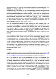 dass die Menschen trotz der Zunahme an Erkrankungen keine Angst mehr haben würden und keine Präventivmaßnahmen ergreifen (PAN 8.9.2022). Bis zur Machtübernahme der Taliban waren landesweit insgesamt 38 COVID-19-Krankenhäuser in Betrieb, die alle von internationalen Gebern finanziert wurden. Daneben wurden im Rahmen der COVID-19-Notfallmaßnahmen auch Krisenreaktionsteams (Rapid Response Teams, RRTs) und Distriktzentren (District Centers, DCs) eingerichtet, um Risikokommunikationsveranstal tungen durchzuführen, Proben von Verdachtsfällen zu sammeln, Kontaktpersonen ausfindig zu machen und Ratschläge für leichte und mittelschwere Fälle zu geben, die zu Hause be handelt werden sollten. Diese Maßnahmen trugen entscheidend dazu bei, die Belastung der für COVID-19 zuständigen Krankenhäuser zu verringern, sodass sie sich auf die Behandlung schwerer und kritischer Fälle konzentrieren konnten. Nach dem Zusammenbruch der vorherigen Regierung wurden alle Finanzmittel und Unterstützungen für die COVID-19-Notfallmaßnahmen gekürzt, und die meisten Krankenhäuser mussten ihren Betrieb einstellen, weil es an Mitteln, Ärzten, Medikamenten und sogar Heizmaterial mangelte. Der Mangel an Gesundheitspersonal für die Entnahme von Proben verdächtiger Personen und der Mangel an Kits für labordiagnos tische Tests waren in den meisten Distrikten Afghanistans auch 2022 nach wie vor die größten Herausforderungen. Das hohe Maß an finanzieller Unsicherheit in mehreren Teilen des Lan des hat große und direkte negative Auswirkungen auf die Bereitstellung und Abdeckung von Gesundheitsdiensten für die breite Öffentlichkeit. Viele Menschen, die ihre erste Impfung mit dem COVID-19-Impfstoff erhalten haben, konnten die nächste Dosis nicht erhalten, weil der Impfstoff knapp oder nicht verfügbar war (Asady/Sediqi/Habibi 28.6.2022). Quellen ■ Asady/Sediqi/Habibi - Abdullah Asady, Mohammad Faiq Sediqi, Sayed Samir Habibi (28.6.2022): The Fourth Wave of the COVID-19 in Afghanistan: The Way Forward, https://www.dovepress.com/ getfile.php?fileID=81757, Zugriff 6.2.2023 ■ HC - Health Cluster (31.12.2022): Health Cluster Bulletin - December 2022, https://www.ecoi.net/e n/document/2085796.html, Zugriff 30.1.2023 ■ HRW - Human Rights Watch (12.2.2024): “A Disaster for the Foreseeable Future”, https://www.hrw. org/report/2024/02/12/disaster-foreseeable-future/afghanistans-healthcare-crisis#_ftn41 , Zugriff 18.3.2024 ■ IOM - International Organization for Migration (12.1.2023): Information on the socio-economic situ ation in Afghanistan, https://www.ecoi.net/en/document/2085350.html , Zugriff 18.1.2023 [Login erforderlich] ■ MaA - Menschenrechtsaktivistin aus Afghanistan (29.6.2023): Medizinische Versorgung von Frauen in Afghanistan. Interview via Videocall. Transkript liegt im Archiv der Staatendokumentation auf ■ MSF - Ärzte ohne Grenzen (18.12.2023): Critical gaps in paediatric and neonatal care in Afgh anistan’s northern provinces, https://www.ecoi.net/en/document/2102400.html, Zugriff 18.3.2024 ■ PAN - Pajhwok Afghan News (8.9.2022): Afghanistan records 11,700 positive Covid-19 cases in 2 months, https://pajhwok.com/2022/09/08/afghanistan-records-11700-positive-covid-19-cases-in-2 -months, Zugriff 6.2.2023 ■ UNICEF - United Nations International Children’s Emergency Fund (2024): Afghanistan Human itarian Situation Report, End-of-Year 2023, https://www.unicef.org/media/151571/file/Afghanistan Humanitarian Situation Report No. 12 - 1 January - 31 December 2023.pdf, Zugriff 18.3.2024 ■ UNICEF - United Nations International Children’s Emergency Fund (7.8.2023): Delivering for the children of Afghanistan, https://www.unicef.org/emergencies/delivering-support-afghanistans-child ren, Zugriff 23.8.2023 190