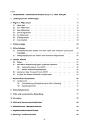 Inhalt 1 Vergleichende Länderkundliche Analyse (VLA) i.S. § 3 Abs. 4a AsylG 1 2 Länderspezifische Anmerkungen 1 3 Regionen Afghanistans 9 3.1 Kabul-Stadt . . . . . . . . . . . . . . . . . . . . . . . . . . . . . . . . . . . . . . 11 3.2 Nord-Afghanistan . . . . . . . . . . . . . . . . . . . . . . . . . . . . . . . . . . . 13 3.3 West-Afghanistan . . . . . . . . . . . . . . . . . . . . . . . . . . . . . . . . . . 15 3.4 Zentral-Afghanistan . . . . . . . . . . . . . . . . . . . . . . . . . . . . . . . . . 17 3.5 Ost-Afghanistan . . . . . . . . . . . . . . . . . . . . . . . . . . . . . . . . . . . 19 3.6 Süd-Afghanistan . . . . . . . . . . . . . . . . . . . . . . . . . . . . . . . . . . . 22 3.7 Erreichbarkeit . . . . . . . . . . . . . . . . . . . . . . . . . . . . . . . . . . . . . 23 4 Politische Lage 28 5 Sicherheitslage 37 5.1 Sicherheitsrelevante Vorfälle und zivile Opfer nach Provinzen (25.11.2023 - 25.11.2024) . . . . . . . . . . . . . . . . . . . . . . . . . . . . . . . . . . . . . . 44 5.2 Verfolgungungspraxis der Taliban, neue technische Möglichkeiten . . . . . . . 45 6 Zentrale Akteure 47 6.1 Taliban . . . . . . . . . . . . . . . . . . . . . . . . . . . . . . . . . . . . . . . . . 47 6.2 Anti-Taliban-Widerstandsgruppen / politische Opposition . . . . . . . . . . . . . 50 6.2.1 National Resistance Front (NRF) . . . . . . . . . . . . . . . . . . . . . . 52 6.2.2 Weitere Widerstandsbewegungen . . . . . . . . . . . . . . . . . . . . . 56 6.3 Islamischer Staat Khorasan Provinz (ISKP) . . . . . . . . . . . . . . . . . . . . 58 6.4 Al-Qaida und weitere bewaffnete Gruppierungen . . . . . . . . . . . . . . . . . 64 7 Rechtsschutz / Justizwesen 68 7.1 Familienrecht . . . . . . . . . . . . . . . . . . . . . . . . . . . . . . . . . . . . . 71 7.1.1 Eheschließung und Registrierung der Ehe / Scheidung . . . . . . . . . . 72 7.1.2 Staatsbürgerschaft . . . . . . . . . . . . . . . . . . . . . . . . . . . . . . 75 8 Sicherheitsbehörden 76 9 Folter und unmenschliche Behandlung 77 10 Korruption 78 11 NGOs und Menschenrechtsaktivisten 80 12 Wehrdienst und Zwangsrekrutierung 83 13 Allgemeine Menschenrechtslage 85 14 Meinungs- und Pressefreiheit 86 IV