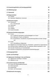 15 Versammlungsfreiheit und Vereinigungsfreiheit 89 16 Haftbedingungen 90 17 Todesstrafe 93 18 Religionsfreiheit 94 18.1 Schiiten . . . . . . . . . . . . . . . . . . . . . . . . . . . . . . . . . . . . . . . . 96 18.2 Apostasie, Blasphemie, Konversion . . . . . . . . . . . . . . . . . . . . . . . . 97 19 Ethnische Gruppen 98 19.1 Paschtunen . . . . . . . . . . . . . . . . . . . . . . . . . . . . . . . . . . . . . . 99 19.1.1 Paschtunwali . . . . . . . . . . . . . . . . . . . . . . . . . . . . . . . . . 100 19.2 Tadschiken . . . . . . . . . . . . . . . . . . . . . . . . . . . . . . . . . . . . . . 104 19.3 Hazara . . . . . . . . . . . . . . . . . . . . . . . . . . . . . . . . . . . . . . . . 105 19.4 Usbeken . . . . . . . . . . . . . . . . . . . . . . . . . . . . . . . . . . . . . . . . 108 19.5 Kutschi-Nomaden . . . . . . . . . . . . . . . . . . . . . . . . . . . . . . . . . . 109 20 Relevante Bevölkerungsgruppen 110 20.1 Frauen . . . . . . . . . . . . . . . . . . . . . . . . . . . . . . . . . . . . . . . . . 110 20.1.1 Politische Partizipation und Berufstätigkeit von Frauen . . . . . . . . . . 116 20.1.2 Bildung für Frauen und Mädchen . . . . . . . . . . . . . . . . . . . . . . 120 20.1.3 Frauenhäuser, sexualisierte und geschlechtsspezifische Gewalt, Zwangs ehe . . . . . . . . . . . . . . . . . . . . . . . . . . . . . . . . . . . . . . 122 20.2 Kinder . . . . . . . . . . . . . . . . . . . . . . . . . . . . . . . . . . . . . . . . . 125 20.2.1 Schulbildung in Afghanistan . . . . . . . . . . . . . . . . . . . . . . . . . 128 20.3 Mitglieder der ehemaligen Regierung / Streitkräfte / ausländischer Organisationen 130 20.4 Personen denen vorgeworfen wird, von westlichen Werten beeinflusst zu sein 134 20.5 Sexuelle Orientierung und Genderidentität . . . . . . . . . . . . . . . . . . . . . 137 20.6 Personen mit physischen und psychischen Beeinträchtigungen . . . . . . . . . 138 21 Bewegungsfreiheit 140 22 IDPs und Flüchtlinge 142 23 Afghanische Flüchtlinge in Iran und Pakistan 142 23.1 Afghanische Flüchtlinge in Pakistan . . . . . . . . . . . . . . . . . . . . . . . . 142 23.2 Afghanen in Iran . . . . . . . . . . . . . . . . . . . . . . . . . . . . . . . . . . . 154 24 Grundversorgung und Wirtschaft 167 24.1 Armut und Lebensmittelunsicherheit . . . . . . . . . . . . . . . . . . . . . . . . 175 24.2 Wohnungsmarkt . . . . . . . . . . . . . . . . . . . . . . . . . . . . . . . . . . . 179 24.3 Arbeitsmarkt . . . . . . . . . . . . . . . . . . . . . . . . . . . . . . . . . . . . . 182 24.4 Bank- und Finanzwesen . . . . . . . . . . . . . . . . . . . . . . . . . . . . . . . 185 25 Medizinische Versorgung 188 V