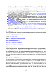 Verteilung werden Name, Post- und/oder E-Mail-Adressen gespeichert. Den Empfängern stehen die allgemeinen Rechte auf Auskunft, Berichtigung, Löschung, Einschränkung, Datenübertrag barkeit, Widerruf und Widerspruch zu. Das Abonnement kann jederzeit gekündigt werden (E-Mail mit dem Betreff „ unsubscribe“ an BFA-Staatendokumentation@bmi.gv.at). Informationen zum E-Mail-Verkehr mit dem BMI (Kundmachung gemäß § 13 Abs. 2 AVG)https: //www.bmi.gv.at/Impressum/email_richtlinien.aspx Hinweise für elektronische Anbringen (96,7 KB) https://www.bfa.gv.at/Kontakt/files/Kundmachung_nach_13_Abs_2_und_5_AVG.pdf Amtssignatur – Bildmarke (117,7 KB) https://www.bfa.gv.at/Impressum/files/Amtssignatur_Bildmarke_Veroeffentlichungstext_2020.p df 28.3 Veröffentlichte Versionen • Version 11, Gültig von 10-04-2024 bis 31-01-2025 • Version 10, Gültig von 28-09-2023 bis 10-04-2024 • Version 9, Gültig von 21-03-2023 bis 28-09-2023 • Version 8, Gültig von 10-08-2022 bis 21-03-2023 • Version 7, Gültig von 04-05-2022 bis 10-08-2022 • Version 6, Gültig von 28-01-2022 bis 04-05-2022 • Version 5, Gültig von 16-09-2021 bis 28-01-2022 • Version 4, Gültig von 11-06-2021 bis 16-09-2021 • Version 3, Gültig von 01-04-2021 bis 11-06-2021 • Version 2, Gültig von 16-12-2020 bis 01-04-2021 © 2025 Staatendokumentation des Bundesamtes für Fremdenwesen und Asyl 203