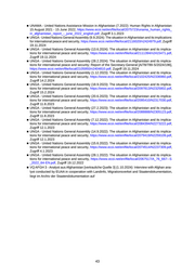 ■ UNAMA - United Nations Assistance Mission in Afghanistan (7.2022): Human Rights in Afghanistan 15 August 2021 - 15 June 2022, https://www.ecoi.net/en/file/local/2075723/unama_human_rights_ in_afghanistan_report_-_june_2022_english.pdf, Zugriff 3.1.2023 ■ UNGA - United Nations General Assembly (9.9.2024): The situation in Afghanistan and its implications for international peace and security, https://www.ecoi.net/en/file/local/2116020/n2424979.pdf, Zugriff 19.11.2024 ■ UNGA - United Nations General Assembly (13.6.2024): The situation in Afghanistan and its implica tions for international peace and security, https://www.ecoi.net/en/file/local/2111394/n2415471.pdf, Zugriff 19.11.2024 ■ UNGA - United Nations General Assembly (28.2.2024): The situation in Afghanistan and its implica tions for international peace and security; Report of the Secretary-General [A/78/789-S/2024/196], https://www.ecoi.net/en/file/local/2105950/n2404810.pdf, Zugriff 19.11.2024 ■ UNGA - United Nations General Assembly (1.12.2023): The situation in Afghanistan and its implica tions for international peace and security, https://www.ecoi.net/en/file/local/2102425/N2336960.pdf, Zugriff 14.2.2024 ■ UNGA - United Nations General Assembly (18.9.2023): The situation in Afghanistan and its implica tions for international peace and security, https://www.ecoi.net/en/file/local/2097813/N2325802.pdf, Zugriff 15.2.2024 ■ UNGA - United Nations General Assembly (20.6.2023): The situation in Afghanistan and its implica tions for international peace and security, https://www.ecoi.net/en/file/local/2095410/N2317030.pdf, Zugriff 11.8.2023 ■ UNGA - United Nations General Assembly (27.2.2023): The situation in Afghanistan and its implica tions for international peace and security, https://www.ecoi.net/en/file/local/2088888/N2305123.pdf, Zugriff 11.8.2023 ■ UNGA - United Nations General Assembly (7.12.2022): The situation in Afghanistan and its implica tions for international peace and security, https://www.ecoi.net/en/file/local/2084394/N2273222.pdf, Zugriff 12.1.2023 ■ UNGA - United Nations General Assembly (14.9.2022): The situation in Afghanistan and its implica tions for international peace and security, https://www.ecoi.net/en/file/local/2079419/N2259109.pdf, Zugriff 12.1.2023 ■ UNGA - United Nations General Assembly (15.6.2022): The situation in Afghanistan and its implica tions for international peace and security, https://www.ecoi.net/en/file/local/2074514/N2237309.pdf, Zugriff 4.1.2023 ■ UNGA - United Nations General Assembly (28.1.2022): The situation in Afghanistan and its implica tions for international peace and security, https://www.ecoi.net/en/file/local/2067517/A_76_667--S _2022_64-EN.pdf, Zugriff 19.12.2022 ■ VQ AFGH 3 - Analyst aus Afghanistan [vertrauliche Quelle 3] (1.10.2024): Interview with Afghan ana lyst conducted by EUAA in cooperation with Landinfo, Migrationsverket and Staatendokumentation, liegt im Archiv der Staatendokumentation auf 43