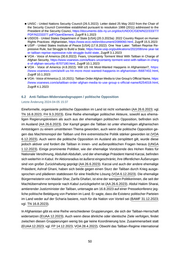 ■ DIP - Diplomat, The (20.8.2021): Is the Panjshir Valley the Taliban’s Achilles Heel?, https://thediplo mat.com/2021/08/is-the-panjshir-valley-the-talibans-achilles-heel/ , Zugriff 22.12.2022 ■ KaN - Kabul Now (8.8.2023): NRF claims killing and injuring 3 Taliban fighters in Badakhshan province, https://kabulnow.com/2023/08/nrf-claims-killing-and-injuring-3-taliban-fighters-in-badak hshan-province, Zugriff 30.1.2024 ■ KaN - Kabul Now (18.7.2023): NRF claims killing and injuring three Taliban fighters in Baghlan province, https://kabulnow.com/2023/07/nrf-claims-killing-and-injuring-three-taliban-fighters-in-bag hlan-province, Zugriff 24.1.2024 ■ KP - Khaama Press (21.8.2022): Taliban Supreme Leader Appoints Special Military Commander for Panjshir Province - The Khaama Press News Agency, https://www.khaama.com/taliban-supreme-l eader-appoints-special-military-commander-for-panjshir-province-678890 , Zugriff 17.1.2023 ■ LWJ - Long War Journal (6.9.2021): Taliban completes conquest of Afghanistan after seizing Panjshir, https://www.longwarjournal.org/archives/2021/09/taliban-completes-conquest-of-afghanistan-after -seizing-panjshir.php, Zugriff 22.12.2022 ■ NYT - New York Times, The (4.3.2022): Taliban Search Operation Echoes Resented U.S. Tactics in Afghanistan, https://www.nytimes.com/2022/03/02/world/asia/afghanistan-taliban-resistance.html , Zugriff 16.1.2023 ■ REU - Reuters (29.9.2023): No current talks with Taliban, Afghanistan’s Massoud says, promising guerrilla warfare, https://www.reuters.com/world/asia-pacific/no-current-talks-with-taliban-afghanist ans-massoud-says-promising-guerrilla-2023-09-29 , Zugriff 20.2.2024 ■ REU - Reuters (30.11.2022): Afghanistan’s Massoud urges elections to create legitimate government, https://www.reuters.com/world/asia-pacific/afghanistans-massoud-urges-elections-create-legitimat e-government-2022-11-30 , Zugriff 13.1.2023 ■ RFE/RL - Radio Free Europe/Radio Liberty (19.5.2022): Hostilities Grow Between Taliban And Tajikistan Amid Border Closure, Truck Seizures, https://www.rferl.org/a/afghanistan-taliban-taj ikistan-border-truck-seizures/31858508.html , Zugriff 16.1.2023 ■ RFE/RL - Radio Free Europe/Radio Liberty (13.5.2022): New Reports Of Fighting In Afghanistan’s Panjshir Trigger Fresh Claims Of Taliban War Crimes, https://www.rferl.org/a/afghanistan-panjshir-t aliban-atrocities/31848654.html, Zugriff 13.1.2023 ■ SIGAR - Special Inspector General for Afghanistan Reconstruction [USA] (30.4.2022): Quarterly Report to the United States Congress, https://www.sigar.mil/pdf/quarterlyreports/2022-04-30qr.pdf, Zugriff 10.1.2023 ■ Telegraph - Telegraph, The (12.5.2022): Dozens of Taliban fighters killed in Afghan military resistance uprising, https://www.telegraph.co.uk/global-health/terror-and-security/dozens-taliban-fighters-kille d-afghan-military-resistance-uprising , Zugriff 16.1.2023 ■ UNGA - United Nations General Assembly (1.12.2023): The situation in Afghanistan and its implica tions for international peace and security, https://www.ecoi.net/en/file/local/2102425/N2336960.pdf, Zugriff 14.2.2024 ■ UNGA - United Nations General Assembly (20.6.2023): The situation in Afghanistan and its implica tions for international peace and security, https://www.ecoi.net/en/file/local/2095410/N2317030.pdf, Zugriff 11.8.2023 ■ UNGA - United Nations General Assembly (28.1.2022): The situation in Afghanistan and its implica tions for international peace and security, https://www.ecoi.net/en/file/local/2067517/A_76_667--S _2022_64-EN.pdf, Zugriff 19.12.2022 ■ VOA - Voice of America (6.12.2023): Afghan Insurgent Groups Step Up Attacks, Political Campaign Against Taliban, https://www.voanews.com/a/afghan-insurgent-groups-step-up-attacks-political-c ampaign-against-taliban-/7386099.html , Zugriff 27.2.2024 ■ VOA - Voice of America (14.9.2022): Taliban Claim Killing 40 Insurgents in Turbulent Northern Afghan Province, https://www.voanews.com/a/taliban-claim-killing-40-insurgents-in-turbulent-northern-afg han-province-/6746865.html, Zugriff 16.1.2023 ■ VOA - Voice of America (28.4.2022): Afghan ‘Fighting Season’ Ushers in New Anti-Taliban Groups, https://www.voanews.com/a/afghan-fighting-season-ushers-in-new-anti-taliban-groups/6542148.ht ml, Zugriff 13.1.2023 55