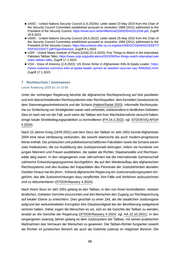 ■ UNSC - United Nations Security Council (1.6.2023b): Letter dated 23 May 2023 from the Chair of the Security Council Committee established pursuant to resolution 1988 (2011) addressed to the President of the Security Council, https://www.ecoi.net/en/file/local/2093255/N2312536.pdf, Zugriff 18.8.2023 ■ UNSC - United Nations Security Council (26.5.2022): Letter dated 25 May 2022 from the Chair of the Security Council Committee established pursuant to resolution 1988 (2011) addressed to the President of the Security Counci, https://documents-dds-ny.un.org/doc/UNDOC/GEN/N22/333/77/ PDF/N2233377.pdf?OpenElement, Zugriff 9.1.2023 ■ USIP - United States Institute of Peace [USA] (21.6.2022): Five Things to Watch in the Islamabad- Pakistani Taliban Talks, https://www.usip.org/publications/2022/06/five-things-watch-islamabad-pak istani-taliban-talks, Zugriff 17.1.2023 ■ VOA - Voice of America (2.8.2022): US Drone Strike in Afghanistan Kills Al-Qaida Leader, https: //www.voanews.com/a/us-kills-al-qaida-leader-aymen-al-zawahiri-sources-say-/6682822.html , Zugriff 17.1.2023 7 Rechtsschutz / Justizwesen Letzte Änderung 2025-01-14 15:59 Unter der vorherigen Regierung beruhte die afghanische Rechtsprechung auf drei parallelen und sich überschneidenden Rechtssystemen oder Rechtsquellen: dem formellen Gesetzesrecht, dem Stammesgewohnheitsrecht und der Scharia (Hakimi/Sadat 2020). Informelle Rechtssyste me zur Schlichtung von Streitigkeiten waren weit verbreitet, insbesondere in ländlichen Gebieten. Dies ist nach wie vor der Fall, auch wenn die Taliban seit ihrer Machtübernahme versucht haben, einige lokale Streitbeilegungspraktiken zu kontrollieren (FH 24.2.2022; vgl. STDOK/VQ AFGH 4.2024). Nach 23 Jahren Krieg (1978-2001) und dem Sturz der Taliban im Jahr 2001 konnte Afghanistan 2004 eine neue Verfassung verkünden, die sowohl islamische als auch modern-progressive Werte enthält. Die juristischen und politikwissenschaftlichen Fakultäten sowie die Scharia waren zwei Institutionen, die zur Ausbildung des Justizpersonals beitrugen, indem sie Hunderte von jungen Männern und Frauen ausbildeten, die später als Richter, Staatsanwälte und Rechtsan wälte tätig waren. In den vergangenen zwei Jahrzehnten hat die internationale Gemeinschaft zahlreiche Entwicklungsprogramme durchgeführt, die auf den Wiederaufbau des afghanischen Rechtssystems und den Ausbau der Kapazitäten des Personals der Justizbehörden abzielen. Darüber hinaus hat die [Anm.: frühere] afghanische Regierung ein Justizverwaltungssystem ein geführt, das alle Justizeinrichtungen dazu verpflichtet, ihre Fälle und Verfahren aufzuzeichnen und zu dokumentieren (STDOK/Nassery 4.2024). Nach ihrem Sturz im Jahr 2001 gelang es den Taliban, in den von ihnen kontrollierten, meisten ländlichen, Gebieten Gerichte einzurichten und den Menschen den Zugang zur Rechtsprechung auf lokaler Ebene zu erleichtern. Dies geschah zu einer Zeit, als die staatlichen Justizorgane aufgrund der weitverbreiteten Korruption ihre Glaubwürdigkeit bei der Bevölkerung weitgehend verloren hatten. Daher zogen die Menschen es vor, sich an die Gerichte der Taliban zu wenden, anstatt an die Gerichte der Regierung (STDOK/Nassery 4.2024; vgl. AA 22.10.2021). In den vergangenen zwanzig Jahren gelang es dem Justizsystem der Taliban, mit seinen praktischen Maßnahmen das Vertrauen der Menschen zu gewinnen. Die Taliban-Richter fungierten sowohl als Richter im juristischen Bereich als auch als Gelehrte (ulama) im religiösen Bereich. Die 68