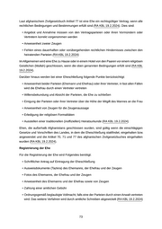 Laut afghanischem Zivilgesetzbuch Artikel 77 ist eine Ehe ein rechtsgültiger Vertrag, wenn alle rechtlichen Bedingungen und Bestimmungen erfüllt sind (RA KBL 19.2.2024). Dies sind: • Angebot und Annahme müssen von den Vertragsparteien oder ihren Vormündern oder Vertretern korrekt vorgenommen werden • Anwesenheit zweier Zeugen • Fehlen eines dauerhaften oder vorübergehenden rechtlichen Hindernisses zwischen den heiratenden Parteien (RA KBL 19.2.2024) Im Allgemeinen wird eine Ehe zu Hause oder in einem Hotel von den Paaren vor einem religiösen Geistlichen (Mullah) geschlossen, wenn die oben genannten Bedingungen erfüllt sind (RA KBL 19.2.2024). Darüber hinaus werden bei einer Eheschließung folgende Punkte berücksichtigt: • Anwesenheit beider Parteien (Ehemann und Ehefrau) oder ihrer Vertreter, in fast allen Fällen wird die Ehefrau durch einen Vertreter vertreten • Willensbekundung und Absicht der Parteien, die Ehe zu schließen • Einigung der Parteien oder ihrer Vertreter über die Höhe der Mitgift des Mannes an die Frau • Anwesenheit von Zeugen für die Zeugenaussage • Erledigung der religiösen Formalitäten • Ausstellen einer traditionellen (inoffiziellen) Heiratsurkunde (RA KBL 19.2.2024) Ehen, die außerhalb Afghanistans geschlossen wurden, sind gültig wenn die einschlägigen Gesetze und Vorschriften des Landes, in dem die Eheschließung stattfindet, eingehalten bzw. angewendet und die Artikel 70, 71 und 77 des afghanischen Zivilgesetzbuches eingehalten wurden (RA KBL 19.2.2024). Registrierung der Ehe Für die Registrierung der Ehe wird Folgendes benötigt: • Schriftlicher Antrag auf Eintragung der Eheschließung • Ausweisdokumente (Tazkira) des Ehemanns, der Ehefrau und der Zeugen • Fotos des Ehemanns, der Ehefrau und der Zeugen • Anwesenheit des Ehemanns und der Ehefrau sowie von Zeugen • Zahlung einer amtlichen Gebühr • Ordnungsgemäß beglaubigte Vollmacht, falls eine der Parteien durch einen Anwalt vertreten wird. Das weitere Verfahren wird durch amtliche Schreiben abgewickelt (RA KBL 19.2.2024) 73