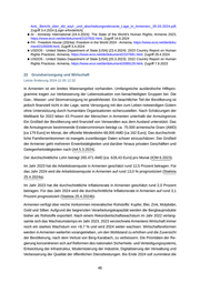 Amt,_Bericht_über_die_asyl-_und_abschiebungsrelevante_Lage_in_Armenien,_05.03.2024.pdf , Zugriff 3.4.2024 [Login erforderlich] ■ AI - Amnesty International (24.4.2024): The State of the World’s Human Rights; Armenia 2023, https://www.ecoi.net/de/dokument/2107832.html, Zugriff 14.6.2024 ■ FH - Freedom House (2024a): Freedom in the World 2024 - Armenia, https://www.ecoi.net/de/doku ment/2105009.html, Zugriff 3.4.2024 ■ USDOS - United States Department of State [USA] (23.4.2024): 2023 Country Report on Human Rights Practices: Armenia, https://www.ecoi.net/de/dokument/2107681.html, Zugriff 29.4.2024 ■ USDOS - United States Department of State [USA] (20.3.2023): 2022 Country Report on Human Rights Practices: Armenia, https://www.ecoi.net/de/dokument/2089129.html, Zugriff 7.9.2023 22 Grundversorgung und Wirtschaft Letzte Änderung 2024-11-05 12:32 In Armenien ist ein breites Warenangebot vorhanden. Umfangreiche ausländische Hilfspro gramme tragen zur Verbesserung der Lebenssituation von benachteiligten Gruppen bei. Die Gas-, Wasser- und Stromversorgung ist gewährleistet. Ein beachtlicher Teil der Bevölkerung ist jedoch finanziell nicht in der Lage, seine Versorgung mit den zum Leben notwendigen Gütern ohne Unterstützung durch humanitäre Organisationen sicherzustellen. Nach Schätzungen der Weltbank für 2022 leben 43 Prozent der Menschen in Armenien unterhalb der Armutsgrenze. Ein Großteil der Bevölkerung wird finanziell von Verwandten aus dem Ausland unterstützt. Das die Armutsgrenze bestimmende Existenzminimum beträgt ca. 75.000 armenische Dram (AMD) [ca 179 Euro] im Monat, der offizielle Mindestlohn 68.000 AMD [ca 162 Euro]. Das durchschnitt liche Familieneinkommen ist mangels zuverlässiger Daten schwer einzuschätzen. Der Großteil der Armenier geht mehreren Erwerbstätigkeiten und darüber hinaus privaten Geschäften und Gelegenheitstätigkeiten nach (AA 5.3.2024). Der durchschnittliche Lohn beträgt 265.471 AMD [ca. 628,43 Euro] pro Monat (IOM 6.2023). Im Jahr 2023 hat die Arbeitslosenquote in Armenien geschätzt rund 12,5 Prozent betragen. Für das Jahr 2024 wird die Arbeitslosenquote in Armenien auf rund 13,0 % prognostiziert (Statista 25.4.2024a). Im Jahr 2023 hat die durchschnittliche Inflationsrate in Armenien geschätzt rund 2,0 Prozent betragen. Für das Jahr 2024 wird die durchschnittliche Inflationsrate in Armenien auf rund 3,1 Prozent prognostiziert (Statista 25.4.2024b). Armenien verfügt über reiche Vorkommen mineralischer Rohstoffe: Kupfer, Blei, Zink, Molybdän, Gold und Silber. Aufgrund der begrenzten Verarbeitungskapazität werden die Bergbauprodukte bisher als Rohstoffe exportiert. Nach einem Rekordwirtschaftswachstum im Jahr 2022 verlang samte sich das Wachstumstempo im Jahr 2023. 2023 verzeichnete Armeniens Wirtschaft immer noch ein starkes Wachstum von +8,7 % und wird 2024 weiter wachsen. Wirtschaftsreformen werden in Armenien weiterhin vorangetrieben, um den Wohlstand zu erhöhen und die Zuversicht der Bevölkerung, nach dem Verlust von Berg-Karabach, zu verbessern. Die Prioritäten der Re gierung konzentrieren sich auf Reformen des nationalen Sicherheits- und Verteidigungssystems, Entwicklung der Infrastruktur, Modernisierung der Industrie, Digitalisierung der Verwaltung und Verbesserung der Qualität der öffentlichen Dienstleistungen. Bis Ende 2024 soll zumindest die 46
