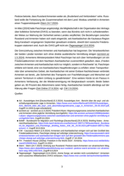 4.1 Regionale Konfliktzone: Bergkarabach (Berg-Karabach) Letzte Änderung 2024-11-08 08:32 Die Vertreibung ethnischer Aserbaidschaner in den frühen 1990er-Jahren führte zu einer über wiegend ethnischen armenischen Bevölkerung. Die letzte Volkszählung im Jahr 2015 ergab eine Gesamtbevölkerung von etwa 151.000 Menschen, mit kleinen Minderheiten von ethni schen Russen, Ukrainern, Jesiden, Georgiern und Syrern (FH 2024b). Der Konflikt zwischen Aserbaidschan und Armenien um das ehemalige autonome Gebiet Berg karabach (russisch: Nagorny-Karabakh; in Armenien überwiegend „Artsakh“ genannt) ist durch den verlorenen 44-Tage-Krieg im Jahr 2020, durch den Verzicht Armeniens auf territoriale An sprüche auf dieses Gebiet, im Ergebnis durch die militärische Besetzung Bergkarabachs durch Aserbaidschan am 19./20. September 2023 und die damit verbundene Flucht von über 100.000 Armeniern faktisch entschieden. In einem auszuhandelnden Friedensabkommen gilt es, ge genseitig die territoriale Integrität Armeniens und Aserbaidschans anzuerkennen das Recht der Armenier auf Rückkehr in ihre angestammten Siedlungsgebiete bei Wahrung ihrer kulturellen und Minderheiten-Rechte sowie der Sicherheit festzuschreiben (AA 5.3.2024). Die Republik Berg-Karabach, die sich auch Republik Artsakh nannte, genoss nach einem Waf fenstillstandsabkommen aus dem Jahr 1994, das einen etwa zweijährigen offenen Krieg be endete, de facto die Unabhängigkeit von Aserbaidschan, wurde jedoch nie von einem UN-Mit gliedstaat (FH 2024b; vgl. AA 5.3.2024) oder von Armenien anerkannt, praktisch waren beide wirtschaftlich und rechtlich jedoch stark verflochten. Die Bewohner von Bergkarabach haben neben ihrem „ RBK“-Pass armenische Reisepässe erhalten, was jedoch nicht die Verleihung der armenischen Staatsangehörigkeit bedeutete. In Eriwan gibt es eine bergkarabachische Vertretung. Von der „ RBK“ ausgestellte Reisepässe sind äußerlich nur anhand der dreistel ligen Kennziffer des Ausstellungsortes von armenischen Reisepässen zu unterscheiden (AA 5.3.2024). Die Bevölkerung des Gebiets bestand überwiegend aus ethnischen Armeniern und war auf grund ihrer geografischen und diplomatischen Isolation auf enge politische und wirtschaftliche Beziehungen zu Armenien angewiesen. Im Jahr 2023 kündigte die lokale Regierung ihre Auflö sung an, nachdem eine von den aserbaidschanischen Behörden geführte Militäroperation zur massenhaften Abwanderung der ethnischen armenischen Bevölkerung geführt hatte. Ende des Jahres waren bilaterale Friedensgespräche zwischen der armenischen und der aserbaidscha nischen Regierung im Gange, und das Gebiet von Berg-Karabach blieb weitgehend entvölkert (FH 2024b). Die von Armenien und Aserbaidschan beim EGMR eingereichten Beschwerden, in denen sie sich gegenseitig beschuldigen, während der Kämpfe in den Jahren 2020 und 2016 Gräuel taten begangen zu haben, warten noch auf eine Entscheidung des Gerichts, ebenso wie die Beschwerden Armeniens nach den schweren Kämpfen im September 2022 entlang der interna tionalen Grenze und innerhalb Armeniens (USDOS 23.4.2024). Nach der Flucht von mehr als 100.000 ethnischen Armeniern aus Berg-Karabach nach Armenien Ende September kündig te das armenische Untersuchungskomitee eine Untersuchung der mutmaßlichen Verbrechen 6