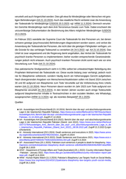 verurteilt und auch hingerichtet werden. Dies gilt etwa für Minderjährige oder Menschen mit geis tigen Behinderungen (AA 21.10.2024). Auch das staatliche Recht verbietet zwar die Anwendung der Todesstrafe für Minderjährige (USDOS 20.3.2023; vgl. HRW 11.3.2024). Dennoch verurtei len Gerichte Minderjährige nach dem Anti-Terrorismus-Gesetz zum Tode. Dabei erschwert die unzuverlässige Dokumentation die Bestimmung des Alters möglicher Minderjähriger (USDOS 20.3.2023). Im Februar 2021 wandelte der Supreme Court die Todesstrafe für drei Personen um, bei denen schwere geistige (psychosoziale) Behinderungen diagnostiziert worden waren, und verbot die Anwendung der Todesstrafe bei Personen, die nicht über die geistigen Fähigkeiten verfügen, um die Gründe für das verhängte Todesurteil zu verstehen (AI 24.5.2022; vgl. AA 21.10.2024). Das Urteil ist zwar wegweisend und die Regierung damit angehalten, das Verbot der Todesstrafe für psychisch kranke Personen zu implementieren, bisher wurden entsprechende Gesetzesände rungen jedoch nicht erlassen. Auch psychisch kranken Personen droht somit nach wie vor eine Verurteilung zum Tode (AA 21.10.2024). Das pakistanische Strafgesetzbuch sieht in § 295c selbst bei unbeabsichtigter Beleidigung des Propheten Mohammed die Todesstrafe vor. Diese wurde bislang zwar verhängt, jedoch noch nie für Blasphemie vollstreckt, sondern häufig durch ein höherrangiges Gericht aufgehoben. Nach divergierenden Angaben von Menschenrechtsaktivisten sollen mit Stand 2024 zwischen 30 und 80 aufgrund von Blasphemie zum Tode Verurteilte auf die Vollstreckung ihres Urteils warten (AA 21.10.2024). Neun Personen davon wurden im Jahr 2023 zum Tode aufgrund von Blasphemie verurteilt (AI 29.5.2024). In den letzten Jahren wurden auch einige Todesurteile aufgrund blasphemischer Inhalte in Textnachrichten in den sozialen Medien, wie WhatsApp, ausgesprochen (HRW 11.3.2024; vgl. als rezentes BeispielAP 25.1.2025). Quellen ■ AA - Auswärtiges Amt [Deutschland] (21.10.2024): Bericht über die asyl- und abschiebungsrelevante Lage in der Islamischen Republik Pakistan, https://www.ecoi.net/en/file/local/2117687/Deutschland. Auswärtiges Amt, Bericht über die asyl- und abschiebungsrelevante Lage in der Islamischen Republik Pakistan, 21.10.2024.pdf, Zugriff 27.12.2024 ■ AA - Auswärtiges Amt [Deutschland] (8.8.2022): Bericht über die asyl- und abschiebungsrelevante Lage in der Islamischen Republik Pakistan (Stand: Juni 2022), https://www.ecoi.net/en/file/local /2077279/Auswärtiges_Amt,_Bericht_über_die_asyl-_und_abschiebungsrelevante_Lage_in_de r_Islamischen_Republik_Pakistan_(Stand_Juni_2022),_08.08.2022.pdf , Zugriff 21.3.2023 [Login erforderlich] ■ AI - Amnesty International (29.5.2024): Death sentences and executions in 2023, https://www.amne sty.org/en/documents/act50/7952/2024/en, Zugriff 4.6.2024 ■ AI - Amnesty International (24.5.2022): Death Sentences and Executions 2021, https://www.ecoi.n et/en/file/local/2073393/ACT5054182022ENGLISH.pdf, Zugriff 4.6.2024 ■ AP - Associated Press (25.1.2025): Pakistani court sentences 4 people to death for blasphemy, https: //apnews.com/article/pakistan-blasphemy-death-sentence-a3b46de9922fd63046cf0857a5a2f86f , Zugriff 26.2.2025 ■ DFAT - Department of Foreign Affairs and Trade [Australien] (25.1.2022): Country Information Report - Pakistan - January 2022, https://www.dfat.gov.au/sites/default/files/country-information-report-pak istan.pdf, Zugriff 14.8.2024 ■ HRW - Human Rights Watch (11.3.2024): Pakistan’s Blasphemy Law Targets Youth on Social Media, https://www.hrw.org/news/2024/03/12/pakistans-blasphemy-law-targets-youth-social-media , Zugriff 26.2.2025 104