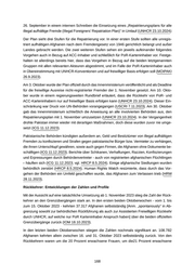 26. September in einem internen Schreiben die Einsetzung eines „ Repatriierungsplans für alle illegal aufhältige Fremde (Illegal Foreigners’ Repatriation Plan)“ in Umlauf (UNHCR 23.10.2024): Der Plan sieht drei Stufen für die Repatriierung vor. In einer ersten Stufe sollten alle unregis triert aufhältigen Afghanen nach dem Fremdengesetz von 1946 gerichtlich belangt und außer Landes gebracht werden. Die zwei weiteren Stufen sehen ein jeweils aufeinander folgendes Vorgehen auch in Bezug auf ACC-Inhaber und schließlich für PoR-Karteninhaber vor. Festge halten ist allerdings bereits hier, dass das Vorgehen in Bezug auf die beiden letztgenannten Gruppen mit allen relevanten Akteuren abgestimmt, und im Falle der PoR-Karteninhaber auch in Übereinstimmung mit UNHCR-Konventionen und auf freiwilliger Basis erfolgen soll (MOIPAKI 26.9.2023). Am 3. Oktober wurde der Plan offiziell durch das Innenministerium veröffentlicht und als Deadline für die freiwillige Ausreise nicht-registrierter Fremder der 1. November gesetzt. Am 10. Okto ber wurde in einem regierungsweiten Rundbrief erläutert, dass die Rückkehr von PoR- und ACC-Karteninhabern nur auf freiwilliger Basis erfolgen kann (UNHCR 23.10.2024). Dieser Ein schränkung war Druck von UN-Behörden vorangegangen (USCRI 7.11.2023). Am 30. Oktober gab das Innenministerium schließlich die Anweisung an alle involvierten Behörden aus, den Repatriierungsplan mit 1. November umzusetzen (UNHCR 23.10.2024). In der Vergangenheit drohte Pakistan immer wieder mit derartigen Maßnahmen, doch diese wurden zuvor nie umge setzt (ICG 11.12.2023). Pakistanische Behörden kündigten außerdem an, Geld und Besitztümer von illegal aufhältigen Fremden zu konfiszieren und Strafen gegen pakistanische Bürger bzw. Vermieter zu verhängen, die ihnen Unterschlupf gewähren, sowie auch gegen Firmen, die Afghanen ohne Dokumente be schäftigen (ICG 11.12.2023). Berichte über Schikanen, Verhaftungen, Razzien, Konfiszierungen und Erpressungen durch Behördenvertreter - auch von registrierten afghanischen Flüchtlingen – häuften sich (ICG 11.12.2023; vgl. HRCP 8.5.2024). Einige afghanische Siedlungen wurden behördlich zerstört (HRCP 8.5.2024). Human Rights Watch resümierte, dass durch das Vor gehen der Behörden ein Umfeld geschaffen wurde, das Afghanen zum Verlassen trieb (HRW 28.11.2023). Rückkehrer: Entwicklungen der Zahlen und Profile Mit der Aussicht auf eine tatsächliche Umsetzung ab 1. November 2023 stieg die Zahl der Rück kehrer an den Grenzübergängen stark an. In den ersten beiden Oktoberwochen - vom 1. bis zum 15. Oktober 2023 - kehrten 37.317 Afghanen selbstständig [Anm. „ spontanously“ in Ab grenzung sowohl zur behördlichen Rückführung als auch zur Assistierten Freiwilligen Rückkehr durch UNHCR, auf welche nur PoR Karteninhaber Anspruch haben] über die beiden offiziellen Grenzübergänge zurück (IOM 18.10.2023). In den letzten beiden Oktoberwochen stiegen die Zahlen nochmals signifikant an. 108.782 Afghanen kehrten allein zwischen 16. und 31. Oktober 2023 selbstständig zurück. Von den Rückkehrern waren um die 20 Prozent erwachsene Frauen, um die21 Prozent erwachsene 168