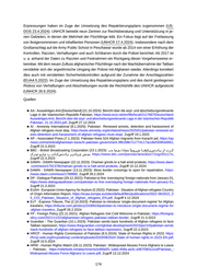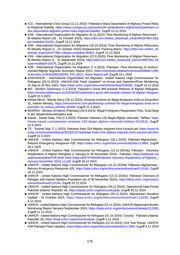 ■ ICG - International Crisis Group (11.12.2023): Pakistan’s Mass Deportation of Afghans Poses Risks to Regional Stability, https://www.crisisgroup.org/asia/south-asia/pakistan-afghanistan/pakistans-m ass-deportation-afghans-poses-risks-regional-stability , Zugriff 13.12.2024 ■ IOM - International Organization for Migration (8.11.2023): Flow Monitoring of Afghan Returnees – Bi-Weekly Report (16 - 31 October 2023), https://dtm.iom.int/dtm_download_track/44526?file=1&ty pe=node&id=31041, Zugriff 14.12.2024 ■ IOM - International Organization for Migration (18.10.2023): Flow Monitoring of Afghan Returnees, Bi-Weekly Report (1 - 15 October 2023) Displacement Tracking Matrix, https://dtm.iom.int/dtm_do wnload_track/44521?file=1&type=node&id=30461, Zugriff 13.12.2024 ■ IOM - International Organization for Migration (22.9.2023): Flow Monitoring of Afghan Returnees - Bi-Weekly Report (1 - 15 September 2023), https://dtm.iom.int/dtm_download_track/41996?file=1& type=node&id=29376, Zugriff 14.12.2024 ■ IOM - International Organization for Migration (7.3.2023): Pakistan: Flow Monitoring of Undocu mented Afghan Migrants Summary Report 2022, https://reliefweb.int/attachments/ab50f8a9-c298- 4c4a-a91c-a7fe36166233/PAK_FM_2022_Yearly Report.pdf, Zugriff 19.1.2025 ■ IOM/UNHCR - International Organization for Migration, United Nations High Commissioner for Refugees (29.11.2023): UNHCR-IOM Flash Update#7 on Arrest and Detention/Flow Monitoring, 15 Sep to 25 Nov 2023, https://data.unhcr.org/en/documents/download/105092, Zugriff 14.12.2024 ■ MD - Modern Diplomacy (1.3.2023): Pakistan’s Good Will towards Release of Afghan Refugees, https://moderndiplomacy.eu/2023/03/01/pakistans-good-will-towards-release-of-afghan-refugees , Zugriff 22.3.2023 ■ Minute Mirror - Minute Mirror (29.12.2022): Amnesty scheme for illegal foreigners ends on December 31, Interior Ministry, https://minutemirror.com.pk/amnesty-scheme-for-illegal-foreigners-ends-on-d ecember-31-interior-ministry-82848 , Zugriff 21.3.2023 ■ MOIPAKI - Ministry of Interior [Pakistan] (26.9.2023): Illegal Foreigners Repatriation Plan, Scan [liegt in der Staatendokumentation auf] ■ Siasat - Siasat Daily, The (2.2.2023): Pakistan releases 120 illegal Afghan nationals: Taliban, https: //www.siasat.com/pakistan-releases-120-illegal-afghan-nationals-taliban-2516531 , Zugriff 22.3.2023 ■ TS - Toronto Star (7.1.2023): Pakistan frees 524 Afghan migrants from Karachi jail, https://www.th estar.com/news/world/asia/2023/01/07/pakistan-frees-524-afghan-migrants-from-karachi-jail.html , Zugriff 22.3.2023 ■ UNHCR - United Nations High Commissioner for Refugees (16.1.2025): Pakistan-Afghanistan - Returns Emergency Response #26, https://data.unhcr.org/en/documents/details/113864 , Zugriff 20.1.2025 ■ UNHCR - United Nations High Commissioner for Refugees (13.12.2024a): Pakistan: Voluntary Repatriation of Afghan Refugees (1 January to 30 November 2024) - Pakistan, https://reliefweb.int/ attachments/d0ecf79f-6b94-44b2-bdab-df26747f4b58/Pakistan Voluntary Repatriation of Afghans_- January-November 2024_v1.pdf, Zugriff 19.12.2024 ■ UNHCR - United Nations High Commissioner for Refugees (13.12.2024b): Pakistan-Afghanistan - Returns Emergency Response #25, https://data.unhcr.org/en/documents/download/113148, Zugriff 25.12.2024 ■ UNHCR - United Nations High Commissioner for Refugees (13.12.2024c): Pakistan Overview of Refugee and Asylum-Seekers Population (as of 30 November 2024), https://data.unhcr.org/en/docu ments/download/113144, Zugriff 25.12.2024 ■ UNHCR - United Nations High Commissioner for Refugees (30.11.2024): Operational Data Portal, Pakistan (Islamic Republic of), https://data2.unhcr.org/en/country/pak, Zugriff 25.12.2024 ■ UNHCR - United Nations High Commissioner for Refugees (25.11.2024): Afghanistan Situation Update - 31 October 2024, https://data.unhcr.org/en/documents/download/112690 , Zugriff 5.12.2024 ■ UNHCR - United Nations High Commissioner for Refugees (19.11.2024): UNHCR Afghanistan Border Monitoring Report January-September 2024, https://data.unhcr.org/en/documents/details/112585, Zugriff 11.12.2024 ■ UNHCR - United Nations High Commissioner for Refugees (31.10.2024): Country - Pakistan (Islamic Republic of), https://data.unhcr.org/en/country/pak, Zugriff 3.12.2024 ■ UNHCR - United Nations High Commissioner for Refugees (23.10.2024): One Year Recap: UNHCR- IOM Pakistan Flash Updates, https://data.unhcr.org/en/documents/details/111983, Zugriff 4.12.2024 175