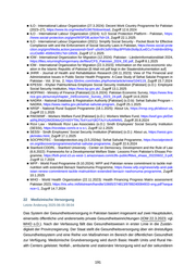 ■ ILO - International Labour Organization (27.3.2024): Decent Work Country Programme for Pakistan (2023–27), https://www.ilo.org/media/519676/download, Zugriff 12.6.2024 ■ ILO - International Labour Organization (2024): ILO Social Protection Platform - Pakistan, https: //www.social-protection.org/gimi/WSPDB.action?id=19, Zugriff 22.1.2025 ■ ILO - International Labour Organization (2021): Simplify Social Security - Pocket Book for Effective Compliance with and the Enforcement of Social Security Laws in Pakistan, https://www.social-prote ction.org/gimi/Media.action;jsessionid=SmF-u0o9VJslNYl8qc8PFb8n3lo9pJLwECuTmbh8m90Hg o1zOe86!-458942951?id=18509, Zugriff 17.1.2025 ■ IOM - International Organization for Migration (12.2024): Pakistan - Länderinformationsblatt 2024, https://files.returningfromgermany.de/files/CFS_Pakistan_2024_DE.pdf, Zugriff 8.1.2025 ■ IOM - International Organization for Migration (22.3.2023): Information on the socio-economic situ ation in the Islamic Republic of Pakistan [E-Mail mit pdf liegt in der Staatendokumentation auf] ■ JHRR - Journal of Health and Rehabilitation Research (30.11.2023): View of The Financial and Administrative Issues in Public Sector Health Programs: A Case Study of Sehat Salulat Program in Pakistan - Vol. 3/ Iss. 2, https://jhrlmc.com/index.php/home/article/view/104/119, Zugriff 15.7.2024 ■ KPESSI - Khyber Pakhtunkhwa Employee Social Security Institution [Pakistan] (o.D.): Employee Social Security Institution, https://essi.kp.gov.pk/, Zugriff 13.1.2025 ■ MOFPAKI - Ministry of Finance [Pakistan] (11.6.2024): Pakistan Economic Survey, https://www.fina nce.gov.pk/survey/chapter_24/Economic_Survey_2023_24.pdf, Zugriff 14.6.2024 ■ NADRA - National Database & Registration Authority [Pakistan] (o.D.b): Sehat Sahulat Program – NADRA, https://www.nadra.gov.pk/sehat-sahulat-program, Zugriff 25.1.2025 ■ NRSP - National Rural Support Programme (18.1.2025): About Us, https://nrsp.org.pk/about-us , Zugriff 22.1.2025 ■ PAKIWWF - Workers Welfare Fund [Pakistan] (o.D.): Workers Welfare Fund, https://wwf.gov.pk/Det ail/NjJlN2Q3M2EtMzQ3Yi00YTlhLTk4YzctYjllOTAzYzAxMWM1, Zugriff 20.8.2024 ■ Rizvi Law - Mahboob Rizvi Law Associates (o.D.): Sindh Employees’ Social Security Institution (SESSI), https://rizvislaw.com/s-e-s-s-i , Zugriff 12.1.2025 ■ SESSI - Sindh Employees’ Social Security Institution [Pakistan] (o.D.): About us, https://sessi.gov. pk/index.html, Zugriff 17.1.2025 ■ SOCPROTEC - Socialprotection.org (3.5.2024a): Sehat Sahulat Programme, https://socialprotecti on.org/discover/programmes/sehat-sahulat-programme, Zugriff 22.6.2024 ■ Stanford-CDDRL - Stanford University - Center on Democracy, Development and the Rule of Law (6.6.2022): Frameworks for a Developmental Welfare State: Lessons From Pakistan’s Ehsaas Pro gramme, https://fsi9-prod.s3.us-west-1.amazonaws.com/s3fs-public/ffdws_ehaas_20220602_0.pdf , Zugriff 11.7.2024 ■ WFP - World Food Programme (9.10.2024): WFP and Pakistan renew commitment to tackle mal nutrition with extended Benazir Nashonuma Programme, https://www.wfp.org/news/wfp-and-pak istan-renew-commitment-tackle-malnutrition-extended-benazir-nashonuma-programme , Zugriff 10.1.2025 ■ WHO - World Health Organization (22.11.2023): Health Financing Progress Matrix assessment: Pakistan 2023, https://iris.who.int/bitstream/handle/10665/374813/9789240084933-eng.pdf?seque nce=1, Zugriff 14.7.2024 22 Medizinische Versorgung Letzte Änderung 2025-06-05 08:04 Das System der Gesundheitsversorgung in Pakistan basiert insgesamt auf zwei Hauptsäulen, einerseits öffentliche und andererseits private Gesundheitseinrichtungen (IOM 22.3.2023; vgl. WHO o.D.). Nach der Verfassung fällt das Gesundheitswesen in erster Linie in die Zustän digkeit der Provinzregierung. Der Staat stellt die Gesundheitsversorgung über ein dreistufiges Gesundheitssystem und eine Reihe von Maßnahmen im Bereich der öffentlichen Gesundheit zur Verfügung. Medizinische Grundversorgung wird durch Basic Health Units und Rural He alth Centers geleistet. Notfall-, ambulante und stationäre Versorgung wird auf der sekundären 191