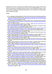 Medikamenten und eine ununterbrochene Kühlkette gesichert (AA 15.7.2024). Da 95 Prozent aller pharmazeutischen Inhaltsstoffe importiert wurden, hat die Entwertung der Rupie zu einem 20-prozentigen Rückgang der Medikamentenproduktion und zu erheblichen Preissteigerungen geführt (Lancet 18.11.2023). Quellen ■ AA - Auswärtiges Amt [Deutschland] (21.10.2024): Bericht über die asyl- und abschiebungsrelevante Lage in der Islamischen Republik Pakistan, https://www.ecoi.net/en/file/local/2117687/Deutschland. Auswärtiges Amt, Bericht über die asyl- und abschiebungsrelevante Lage in der Islamischen Republik Pakistan, 21.10.2024.pdf, Zugriff 27.12.2024 ■ AA - Auswärtiges Amt [Deutschland] (15.7.2024): Pakistan: Reise- und Sicherheitshinweise (Teilrei sewarnung), https://www.auswaertiges-amt.de/de/ReiseUndSicherheit/pakistansicherheit/204974# content_3, Zugriff 15.7.2024 ■ AKDN - Aga Khan Development Network (o.D.): Pakistan - Health, https://the.akdn/en/where-we-w ork/south-asia/pakistan/health-pakistan, Zugriff 31.1.2025 ■ BRP - Business Recorder (16.3.2024): Stigma and mental health problems in a Pakistani context, https://www.brecorder.com/news/40293884, Zugriff 14.7.2024 ■ BS - Bertelsmann Stiftung (19.3.2024): BTI 2024 Pakistan Country Report, https://bti-project.org/fil eadmin/api/content/en/downloads/reports/country_report_2024_PAK.pdf, Zugriff 19.4.2024 ■ DAWN - DAWN Newspaper (12.1.2025): KP govt pours Rs100bn into free healthcare since 2016, https://www.dawn.com/news/1884578, Zugriff 24.1.2025 ■ DAWN - DAWN Newspaper (16.11.2024): Another Rs4bn released for Sehat Card scheme, https: //www.dawn.com/news/1872600, Zugriff 24.1.2025 ■ DAWN - DAWN Newspaper (9.7.2024): Pakistan faces shortage of 1m nurses, 40,000 doctors don’t practice, Senate panel told, https://www.dawn.com/news/1844692, Zugriff 31.1.2025 ■ DAWN - DAWN Newspaper (4.6.2024): Islamabad, AJK, GB residents deprived of free healthcare, https://www.dawn.com/news/1837631, Zugriff 31.1.2025 ■ DAWN - DAWN Newspaper (6.3.2024): ‘Misuse’ of health card scheme: 80 per cent of C-section procedures conducted at private hospitals in Punjab, https://www.dawn.com/news/1819551, Zugriff 31.1.2025 ■ DAWN - DAWN Newspaper (4.9.2023): Sehat Card crumbles as thousands denied treatment at DHQ hospitals in Punjab, https://www.dawn.com/news/1773920, Zugriff 31.1.2025 ■ DAWN - DAWN Newspaper (3.7.2023): Punjab govt tweaks Sehat Card policy, cuts affluent class, https://www.dawn.com/news/1762684/punjab-govt-tweaks-sehat-card-policy-cuts-affluent-class , Zugriff 24.1.2025 ■ finanzen.net - finanzen.net GmbH (6.2.2025): Pakistanische Rupie - Euro Währungsrechner, https: //www.finanzen.at/waehrungsrechner/pakistanische-rupie-euro, Zugriff 6.2.2025 ■ Forbes - Forbes (18.1.2024): Unsung Heroes Of Community Health In Pakistan, https://www.fo rbes.com/sites/unicefusa/2024/01/18/unsung-heroes-of-community-health-in-pakistan , Zugriff 17.7.2024 ■ GLOBUNI - Global Union (6.5.2024): Lady health workers in Pakistan amplify their voices on May Day, https://uniglobalunion.org/news/lady-health-workers-may-day , Zugriff 17.7.2024 ■ HPMLN - Horizon Pakistan Muslim League - Nawaz (25.4.2024): Sehat Insaf Card: a flawed en deavour, https://horizonedition.com/sehat-insaf-card-a-flawed-endeavour , Zugriff 25.1.2025 ■ IOM - International Organization for Migration (12.2024): Pakistan - Länderinformationsblatt 2024, https://files.returningfromgermany.de/files/CFS_Pakistan_2024_DE.pdf, Zugriff 8.1.2025 ■ IOM - International Organization for Migration (22.3.2023): Information on the socio-economic situ ation in the Islamic Republic of Pakistan [E-Mail mit pdf liegt in der Staatendokumentation auf] ■ JHRR - Journal of Health and Rehabilitation Research (30.11.2023): View of The Financial and Administrative Issues in Public Sector Health Programs: A Case Study of Sehat Salulat Program in Pakistan - Vol. 3/ Iss. 2, https://jhrlmc.com/index.php/home/article/view/104/119, Zugriff 15.7.2024 ■ Lancet - The Lancet (17.2.2024): Economic crises and cancer care in Pakistan—timely action saves lives - Vol. 403 Iss. 10427 , https://www.thelancet.com/journals/lancet/article/PIIS0140-6736(23)0 1380-6/fulltext, Zugriff 17.7.2024 196