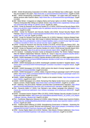 ■ BBC - British Broadcasting Corporation (3.5.2025): India and Pakistan face conflict again - how did they de-escalate in the past?, https://www.bbc.co.uk/news/articles/cn4wk22vk4zo, Zugriff 4.5.2025 ■ BBC - British Broadcasting Corporation (1.5.2025): Pahalgam: US urges India and Pakistan to defuse tensions after Kashmir attack, https://www.bbc.co.uk/news/articles/cvgnw9kydgqo , Zugriff 4.5.2025 ■ BW - Bitter Winter: A magazine on religious liberty and human rights (1.6.2023): Pakistan: Bishops’ Patience Exhausted After Killings at Catholic School, https://bitterwinter.org/pakistan-bishops-patie nce-exhausted-after-killings-at-catholic-school , Zugriff 20.1.2024 ■ CRSS - Center for Research and Security Studies (31.12.2024): CRSS Annual Security Report 2024, https://crss.pk/2024-marks-deadliest-year-for-pakistans-security-forces-record-high-fatalities-in-a -decade, Zugriff 6.5.2025 ■ CRSS - Center for Research and Security Studies (19.2.2024): Annual Security Report 2023 Pakistan, https://crss.pk/wp-content/uploads/2024/02/CRSS-Annual-Security-Report-2023_Full-V ersion_MM-V5_SAP.pdf, Zugriff 12.9.2024 ■ CRSS - Center for Research and Security Studies (31.12.2023): Pakistan’s Violence-Related Fatal ities Mark A Record 6-Year High, 56% Surge In Violence Recorded In 2023: CRSS Annual Security Report, https://crss.pk/pakistans-violence-related-fatalities-mark-a-record-6-year-high-56-surge-i n-violence-recorded-in-2023-crss-annual-security-report , Zugriff 11.1.2024 ■ CRSS - Center for Research and Security Studies (2.8.2023): Annual Security Report 2022 - Re- Emergence Of Proxy Terrorism - 3, https://crss.pk/annual-security-report-2022-3 , Zugriff 18.10.2023 ■ CRSS - Center for Research and Security Studies (3.1.2022): CRSS Annual Security Report 2021- Executive Summary, https://crss.pk/crss-annual-security-report-2021/ , Zugriff 20.12.2023 ■ CTC Sentinel - Combating Terrorism Center at Westpoint (5.2023): The Tehrik-i-Taliban Pakistan After the Taliban’s Afghanistan Takeover, Volume 16 - Issue 5, https://ctc.westpoint.edu/the-tehrik-i -taliban-pakistan-after-the-talibans-afghanistan-takeover , Zugriff 25.10.2023 ■ DAWN - DAWN Newspaper (4.5.2025): Pakistan decides to brief UNSC on India’s aggressive actions: FO, https://www.dawn.com/news/1908387/pakistan-decides-to-brief-unsc-on-indias-aggressive-a ctions-fo, Zugriff 4.5.2025 ■ DAWN - DAWN Newspaper (21.5.2024): Imambargah custodian wounded in ‘targeted attack’, https: //www.dawn.com/news/1834743/imambargah-custodian-wounded-in-targeted-attack , Zugriff 19.9.2024 ■ DAWN - DAWN Newspaper (12.5.2024): ASWJ activist shot dead in Korangi ‘targeted attack’, https: //www.dawn.com/news/1832964, Zugriff 19.9.2024 ■ DAWN - DAWN Newspaper (7.1.2024): 4 killed, 3 injured in firing on passenger coach in KP’s Kurram: police, https://www.dawn.com/news/1803874/4-killed-3-injured-in-firing-on-passenger-coach-in-k ps-kurram-police, Zugriff 13.9.2024 ■ DAWN - DAWN Newspaper (14.12.2022): Trouble on the western frontier, https://www.dawn.com/n ews/1726252, Zugriff 21.12.2023 ■ DAWN - DAWN Newspaper (14.1.2022): Remaining Pak-Afghan border fence to be completed with Kabul’s consent: Sheikh Rashid, https://www.dawn.com/news/1669407, Zugriff 21.12.2023 ■ DIP - Diplomat, The (25.6.2024): Pakistan Launches New Counterterrorism Operation, https://thed iplomat.com/2024/06/pakistan-launches-new-counterterrorism-operation , Zugriff 19.9.2024 ■ DW - Deutsche Welle (1.7.2024): Can Pakistan’s new military campaign end militancy?, https: //www.dw.com/en/can-pakistans-new-military-campaign-end-militancy/a-69531397 , Zugriff 20.9.2024 ■ EASO - European Asylum Support Office (10.2021): EASO Pakistan Security situation Country of Origin Information Report, https://www.ecoi.net/en/file/local/2063078/2021_10_EASO_COI_Report _Pakistan_Security_situation.pdf, Zugriff 5.10.2023 ■ FAZ - Frankfurter Allgemeine Zeitung (12.5.2025): Indien-Pakistan: Modis neue Kaschmir-Doktrin, https://www.faz.net/aktuell/politik/ausland/indien-pakistan-modis-neue-kaschmir-doktrin-1104717 56.html, Zugriff 18.5.2025 ■ FES - Friedrich-Ebert-Stiftung (12.2020): Strengthening Governance in Pakistan - Assessing the National Action Plan to counter Terrorism and Extremism, https://www.pakpips.com/web/wp-content /uploads/2021/01/NAP-Final-from-Hamayun.pdf , Zugriff 5.10.2023 ■ HRW - Human Rights Watch (22.8.2023): Pakistan: Mob Attacks Christian Settlement, https://www. hrw.org/news/2023/08/22/pakistan-mob-attacks-christian-settlement , Zugriff 12.10.2023 26