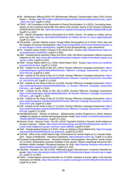 ■ BS - Bertelsmann Stiftung (2024): BTI (Bertelsmann Stiftung’s Transformation Index) 2024 Country Report — Russia, https://bti-project.org/fileadmin/api/content/en/downloads/reports/country_report _2024_RUS.pdf, Zugriff 2.4.2024 ■ CERD - UN Committee on the Elimination of Racial Discrimination (1.6.2023): Concluding obser vations on the combined twenty-fifth and twenty-sixth periodic reports of the Russian Federation (CERD/C/RUS/CO/25-26), https://documents.un.org/doc/undoc/gen/g23/098/13/pdf/g2309813.pdf, Zugriff 21.11.2024 ■ DIS - Danish Immigration Service [Denmark] (9.12.2022): Russia - An update on military service since July 2022, https://us.dk/media/10558/update-on-military-service-in-russia_tilgaengelig.pdf , Zugriff 12.2.2024 ■ FA/Laruelle - Laruelle, Marlene (Autor), Foreign Affairs (Herausgeber) (9.12.2022): Putin’s War and the Dangers of Russian Disintegration, https://www.foreignaffairs.com/russian-federation/putins-w ar-and-dangers-russian-disintegration , Zugriff 6.9.2024 [kostenpflichtig, Login erforderlich] ■ FH - Freedom House (2024): Freedom in the World 2024 - Russia, https://freedomhouse.org/count ry/russia/freedom-world/2024, Zugriff 3.4.2024 ■ GfbV - Gesellschaft für bedrohte Völker (9.8.2024): Über 100 NGOs unterstützen Hilferuf russischer Indigener an UN, https://www.gfbv.de/de/news/russland-indigene-voelker-kriminalisiert-appell-un-g uterres-11409, Zugriff 6.9.2024 ■ HRW - Human Rights Watch (11.1.2024): World Report 2024 - Russia, https://www.ecoi.net/de/do kument/2103134.html, Zugriff 17.4.2024 ■ ISW - Institute for the Study of War (24.1.2024): Russian Offensive Campaign Assessment, https:// understandingwar.org/sites/default/files/Russian Offensive Campaign Assessment, January 24, 2024 PDF.pdf, Zugriff 26.1.2024 ■ ISW - Institute for the Study of War (23.12.2023): Russian Offensive Campaign Assessment, https:// www.understandingwar.org/sites/default/files/Russian Offensive Campaign Assessment, December 23, 2023 (PDF).pdf, Zugriff 27.12.2023 ■ ISW - Institute for the Study of War (11.12.2023): Russian Offensive Campaign Assessment, https:// www.understandingwar.org/sites/default/files/Dec 11 Russian Offensive Campaign Assessment PDF.docx_.pdf, Zugriff 4.1.2024 ■ ISW - Institute for the Study of War (28.11.2023): Russian Offensive Campaign Assessment, https://understandingwar.org/sites/default/files/Nov 28 Russian Offensive Campaign Assessment PDF.docx_.pdf, Zugriff 2.1.2024 ■ ISW - Institute for the Study of War (8.10.2023): Russian Offensive Campaign Assessment, https:// www.understandingwar.org/sites/default/files/Russian Offensive Campaign Assessment, October 8, 2023 (PDF).pdf, Zugriff 23.1.2024 ■ ISW - Institute for the Study of War (17.10.2022): Russian Offensive Campaign Assessment, https:// www.understandingwar.org/sites/default/files/Russian Offensive Campaign Assessment, October 17 PDF.pdf, Zugriff 27.12.2023 ■ MoD@DefenceHQ - Ministry of Defence - @DefenceHQ [United Kingdom] (4.1.2024): Defence Intelligence Update on Ukraine [benutzergenerierter Inhalt], https://twitter.com/DefenceHQ/status/1 742830139874877856/photo/1, Zugriff 12.1.2024 ■ Moscow Times - Moscow Times, The (30.1.2023): Population Decline in Russia’s Small Indigenous Groups Continues – Report, https://www.themoscowtimes.com/2023/01/30/population-decline-in-r ussias-small-indigenous-groups-continues-report-a80089 , Zugriff 6.9.2024 ■ NGE - Nowaja gaseta Ewropa (3.8.2023): Гонки на гробовых [Sarg-Wettrennen], https://novayaga zeta.eu/articles/2023/08/03/gonki-na-grobovykh, Zugriff 28.12.2023 ■ OHCHR - Office of the United Nations High Commissioner for Human Rights (o.D.): Russian Feder ation - Status of Ratification - Interactive Dashboard, https://indicators.ohchr.org, Zugriff 11.11.2024 ■ Russland-Analysen/Bessudnow - Russland-Analysen (Herausgeber), Bessudnow, Alexej (Autor) (21.12.2022): Sterblichkeit russischer Soldaten in der Ukraine: Sterben Angehörige ethnischer Min derheiten wirklich häufiger? (Russland-Analysen Nr. 429), https://laender-analysen.de/russland-a nalysen/429/RusslandAnalysen429.pdf, Zugriff 19.1.2024 ■ Standard - Standard, Der (28.9.2022): Widerstand gegen Rekrutierung in russischer Republik Da gestan, https://www.derstandard.at/story/2000139477516/widerstand-gegen-rekrutierung-in-dages tan, Zugriff 27.12.2023 ■ UNGA - United Nations General Assembly (11.10.2024): Situation of human rights in the Russian Federation (A/79/508), https://documents.un.org/doc/undoc/gen/n24/291/80/pdf/n2429180.pdf , Zugriff 18.11.2024 95