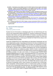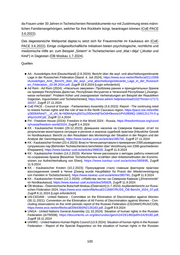 da Frauen unter 30 Jahren in Tschetschenien Reisedokumente nur mit Zustimmung eines männ lichen Familienangehörigen, welcher für ihre Rückkehr bürgt, beantragen können (CoE-PACE 3.6.2022). Das dagestanische Webportal daptar.ru setzt sich für Frauenrechte im Kaukasus ein (CoE- PACE 3.6.2022). Einige zivilgesellschaftliche Initiativen bieten psychologische, rechtliche und medizinische Hilfe an: zum Beispiel „ Sintem“ in Tschetschenien und „ Mat i ditja“ („ Mutter und Kind“) in Dagestan (ÖB Moskau 1.7.2024). Quellen ■ AA - Auswärtiges Amt [Deutschland] (2.8.2024): Bericht über die asyl- und abschiebungsrelevante Lage in der Russischen Föderation (Stand: 4. Juli 2024), https://www.ecoi.net/en/file/local/2113358 /Auswärtiges_Amt,_Bericht_über_die_asyl-_und_abschiebungsrelevante_Lage_in_der_Russisch en_Föderation,_02.08.2024.pdf, Zugriff 19.8.2024 [Login erforderlich] ■ Ad Rem - Ad Rem (2024): «Насильно замужем»: Проблема ранних и принудительных браков на примере Республики Дагестан, Республики Ингушетии и Чеченской Республики [„ Zwangs weise verheiratet“: Problem früher und zwangsweiser Verheiratungen am Beispiel der Republiken Dagestan, Inguschetien und Tschetschenien], https://www.adrem.help/download/102/?tmstv=17171 16157, Zugriff 27.11.2024 ■ CoE-PACE - Council of Europe - Parliamentary Assembly (3.6.2022): Report - The continuing need to restore human rights and the rule of law in the North Caucasus region, https://pace.coe.int/en/file s/30064/html?__cf_chl_tk=N0MvfyHujStO1y2i5De4AjF5sOdH0kwzw1IPrh2B99Q-1660131174-0-g aNycGzNCpE, Zugriff 12.4.2024 ■ FH - Freedom House (2024): Freedom in the World 2024 - Russia, https://freedomhouse.org/count ry/russia/freedom-world/2024, Zugriff 3.4.2024 ■ KK - Kaukasischer Knoten (29.12.2023): Домашнее насилие на Северном Кавказе: отчет по результатам мониторинга ситуации в регионе и анализа судебной практики [Häusliche Gewalt im Nordkaukasus: Bericht zu den Resultaten des Monitorings der Situation in der Region und der Analyse der Gerichtspraxis], https://www.kavkaz-uzel.eu/articles/395756, Zugriff 27.11.2024 ■ KK - Kaukasischer Knoten (23.4.2023): Власти Чечни рапортовали о примирении 2395 разведенных супружеских пар [Behörden Tschetscheniens berichteten über Versöhnung von 2395 geschiedenen Ehepaaren], https://www.kavkaz-uzel.eu/articles/388028, Zugriff 11.9.2024 ■ KK - Kaukasischer Knoten (14.2.2023): Жители Чечни рассказали о методах работы комиссий по сохранению браков [Bewohner Tschetscheniens erzählten über Arbeitsmethoden der Kommis sionen zur Aufrechterhaltung von Ehen], https://www.kavkaz-uzel.eu/articles/385895 , Zugriff 11.9.2024 ■ KK - Kaukasischer Knoten (10.2.2023): Принуждение стало главным фактором практики воссоединения семей в Чечне [Zwang wurde Hauptfaktor für Praxis der Wiedervereinigung von Familien in Tschetschenien], https://www.kavkaz-uzel.eu/articles/385790, Zugriff 11.9.2024 ■ KK - Kaukasischer Knoten (12.2.2020): «Убийства чести» на Северном Кавказе [„ Ehrenmorde“ im Nordkaukasus], https://www.kavkaz-uzel.eu/articles/345826, Zugriff 11.9.2024 ■ ÖB Moskau - Österreichische Botschaft Moskau [Österreich] (1.7.2024): Asylländerbericht zur Russi schen Föderation 2024, https://www.ecoi.net/en/file/local/2116897/RUSS_ÖB-Bericht_2024_07.pdf, Zugriff 8.11.2024 [Login erforderlich] ■ UN-CEDAW - United Nations - Committee on the Elimination of Discrimination against Women (30.11.2021): Convention on the Elimination of All Forms of Discrimination against Women - Con cluding observations on the ninth periodic report of the Russian Federation (CEDAW/C/RUS/CO/9), https://www.ecoi.net/en/file/local/2064360/N2135183.pdf, Zugriff 9.9.2024 ■ UNGA - United Nations General Assembly (11.10.2024): Situation of human rights in the Russian Federation (A/79/508), https://documents.un.org/doc/undoc/gen/n24/291/80/pdf/n2429180.pdf , Zugriff 18.11.2024 ■ UNHRC - United Nations Human Rights Council (13.9.2024): Situation of human rights in the Russian Federation - Report of the Special Rapporteur on the situation of human rights in the Russian 100