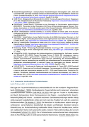 ■ UNHRC - United Nations Human Rights Council (13.9.2024): Situation of human rights in the Russian Federation - Report of the Special Rapporteur on the situation of human rights in the Russian Federation, Mariana Katzarova (Advance edited version; A/HRC/57/59), https://www.ohchr.org/site s/default/files/2024-09/A-HRC-57-59-aev-EN.docx , Zugriff 7.11.2024 ■ UNHRCOM - United Nations Human Rights Committee (1.12.2022): International Covenant on Civil and Political Rights - Concluding observations on the eighth periodic report of the Russian Federation (CCPR/C/RUS/CO/8), https://www.ecoi.net/en/file/local/2083107/G2258965.pdf, Zugriff 16.4.2024 ■ USDOS - United States Department of State [USA] (22.4.2024): 2023 Country Reports on Human Rights Practices: Russia, https://www.state.gov/wp-content/uploads/2024/03/528267_RUSSIA-202 3-HUMAN-RIGHTS-REPORT.pdf , Zugriff 8.5.2024 ■ Verfassung RUSS - Verfassung [Russland] (6.10.2022): Конституция РФ с изменениями 2022 года [Verfassung der RF mit Änderungen des Jahres 2022], http://duma.gov.ru/news/55446, Zugriff 27.2.2024 ■ WG - Wichtige Geschichten (30.1.2023): Народы на грани исчезновения [Völker an der Schwelle zum Verschwinden], https://istories.media/stories/2023/01/30/narodi-na-grani-ischeznoveniya , Zugriff 6.9.2024 18 Relevante Bevölkerungsgruppen 18.1 Frauen Letzte Änderung 2024-12-16 16:02 Russland hat die UN-Konvention zur Beseitigung jeder Form von Diskriminierung der Frau und auch das Zusatzprotokoll ratifiziert (OHCHR o.D.). Gemäß der Verfassung der Russischen Föderation haben Männer und Frauen gleiche Rechte und Freiheiten. Die Verfassung schreibt die Bewahrung traditioneller Familienwerte fest (Verfassung RUSS 6.10.2022). Es existiert eine Nationale Handlungsstrategie zur Förderung der Interessen von Frauen für den Zeitraum 2023- 2030 (VORHSF RUSS 29.12.2022). Gemäß dem Strafgesetzbuch kann Vergewaltigung eine lebenslange Freiheitsstrafe nach sich ziehen (StGB RUSS 9.11.2024). Vergewaltigung innerhalb der Ehe wird als Straftatbestand nicht ausdrücklich anerkannt (UNGA 11.10.2024). Manchmal weigern sich Polizeibeamte, auf Verge waltigung oder häusliche Gewalt zu reagieren, wenn die Tat nicht unmittelbar lebensbedrohlich für das Opfer ist. Behörden stufen im Regelfall Vergewaltigung oder versuchte Vergewaltigung nicht als lebensbedrohlich ein (USDOS 22.4.2024). Häusliche Gewalt ist weitverbreitet (AA 2.8.2024). Eine gesetzliche Definition für den Begriff häusliche Gewalt fehlt (USDOS 22.4.2024; vgl. UNGA 11.10.2024). Auch gibt es kein Gesetz zur Vorbeugung gegen häusliche Gewalt (Russland-Analysen/Anonym 24.7.2024). Strafverfolgungsbehörden sind wenig gewillt, Fälle häuslicher Gewalt gerichtlich zu verfolgen (UNHRCOM 1.12.2022). Die Polizei ist nicht be fugt, strafrechtliche Ermittlungen einzuleiten, wenn das Opfer keine Anzeige erstattet (USDOS 22.4.2024). Die Anzahl der an die Behörden gemeldeten Fälle ist niedrig, weil Polizei und Justiz nicht angemessen auf die Thematik reagieren (HRW 12.1.2023). Oft drängt die Polizei Opfer häuslicher Gewalt zur Aussöhnung mit den Tätern. Die meisten Fälle häuslicher Gewalt, welche an Behörden herangetragen werden, werden entweder nicht bearbeitet oder an Schlichtungs stellen weitergeleitet. Schlichtungsstellen werden von Friedensrichtern geleitet und verfolgen eher das Ziel des Familienerhalts anstatt Bestrafung der Täter (USDOS 22.4.2024). Ein Opfer schutzsystem fehlt (UN-CEDAW 30.11.2021; vgl. UNGA 11.10.2024). Opfer häuslicher Gewalt, welche Täter in Notwehr töten, werden im Regelfall inhaftiert (FH 2024). Laut NGOs stellen von 96