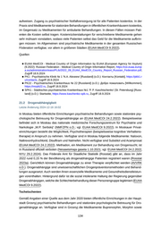 aufweisen. Zugang zu psychiatrischer Notfallversorgung ist für alle Patienten kostenlos. In der Praxis sind Medikamente für stationäre Behandlungen in öffentlichen Krankenhäusern kostenlos, im Gegensatz zu Medikamenten für ambulante Behandlungen. In diesen Fällen müssen Pati enten die Kosten selbst tragen. Kostenrückerstattungen für verschriebene Medikamente gehen sehr mühsam vonstatten, sodass viele Patienten selbst das Geld für die Medikamente aufbrin gen müssen. Im Allgemeinen sind psychiatrische Medikamente in der gesamten Russischen Föderation verfügbar, vor allem in größeren Städten (EUAA MedCOI 9.2022). Quellen ■ EUAA MedCOI - Medical Country of Origin Information by EUAA (European Agency for Asylum) (9.2022): Russian Federation - Medical Country of Origin Information Report, https://coi.euaa.europ a.eu/administration/easo/PLib/2022_09_EUAA_MedCOI_Country_Report_Russian_Federation.pdf, Zugriff 18.9.2024 ■ PK1 - Psychiatrische Klinik № 1 ’N.A. Alexeew’ [Russland] (o.D.): Контакты [Kontakt], https://pkb1.r u/contacts, Zugriff 18.9.2024 ■ PK22 - Psychiatrisches Krankenhaus № 22 [Russland] (o.D.): Добро пожаловать [Willkommen], https://mopb22.ru, Zugriff 18.9.2024 ■ SPK1 - Städtisches psychiatrisches Krankenhaus №1 ’P. P. Kaschtschenko’ (St. Petersburg) [Russ land] (o.D.): Startseite, https://www.kaschenko-spb.ru, Zugriff 18.9.2024 21.2 Drogenabhängigkeit Letzte Änderung 2024-12-16 16:02 In Moskau bieten öffentliche Einrichtungen psychiatrische Behandlungen sowie stationäre psy chologische Betreuung für Drogenabhängige an (EUAA MedCOI 24.2.2022). Beispielsweise befindet sich in Moskau das nationale medizinische Forschungszentrum für Psychiatrie und Narkologie „ W.P. Serbskij“ (NMFZPN o.D.; vgl. EUAA MedCOI 9.2022). In Moskauer Privat einrichtungen besteht die Möglichkeit, Psychotherapien (beispielsweise kognitive Verhaltens therapie) in Anspruch zu nehmen. Verfügbar sind in Moskau folgende Medikamente: Naloxon, Naltrexonhydrochlorid, Disulfiram und Nalmefen. Nicht verfügbar sind Substitol und Acamprosat (EUAA MedCOI 24.2.2022). Methadon, ein Medikament zur Behandlung von Drogensucht, ist in Russland offiziell verboten (Nesawisimaja gaseta 1.10.2021; vgl. EUAA MedCOI 24.2.2022, NYU 29.2.2024). Das Föderale Amt für Staatliche Statistik (Rosstat) gibt an, dass im Jahr 2022 rund 0,15 % der Bevölkerung als drogenabhängige Patienten registriert waren (Rosstat 2023a). Gerichtlich können Drogenabhängige zu einer Therapie verpflichtet werden (AVVRK o.D.). Drogenabhängige sind unwissenschaftlichen Drogenpräventionsmethoden und Behand lungen ausgesetzt. Auch werden ihnen essenzielle Medikamente und Gesundheitsdienstleistun gen vorenthalten. Hintergrund dafür ist die sozial intolerante Haltung der Regierung gegenüber Drogenabhängigen, welche die Schlechterbehandlung dieser Personengruppe legitimiert (EUAA MedCOI 9.2022). Tschetschenien Gemäß Angaben einer Quelle aus dem Jahr 2020 bieten öffentliche Einrichtungen in der Haupt stadt Grosnyj psychiatrische Behandlungen und stationäre psychologische Betreuung für Dro genabhängige an. Verfügbar sind in Grosnyj die Medikamente Buprenorphin, Morphin sowie 134