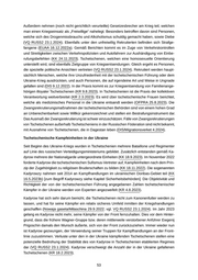 10.4 Situation in Tschetschenien Letzte Änderung 2024-12-16 16:02 Tschetschenische Gruppierungen kämpfen in der Ukraine seit Kriegsbeginn (EUAA 16.12.2022a). Die von Putin am 21.9.2022 verkündete Teilmobilmachung (EPVT RUSS 21.9.2022) wurde in Tschetschenien nicht umgesetzt. Ramsan Kadyrow, das Oberhaupt der Republik Tschetsche nien, begründete dies damit, dass Tschetschenien bereits überproportional viele Kämpfer in die Ukraine entsandt und somit die Quote übererfüllt hatte (KK 23.9.2022). Nach Verkündung der Teilmobilmachung durch Putin wandte sich Kadyrow an Kampfunwillige und nannte diese Feiglinge, Verräter und Menschen zweiter Klasse (KK 11.10.2023). Im Herbst 2022 befahl Kadyrow, Einberufungsbefehle an diejenigen Bevölkerungsteile zu versenden, welche sich der Einberufung zu entziehen versuchen (KR 11.10.2023). Die Bevölkerung Tschetscheniens unterstützt den Krieg größtenteils nicht (SOS-NK 8.6.2023). Gemäß einer aktuellen Umfrage wird der Ukraine-Krieg von 39 % der befragten Tschetschenen unterstützt. 71 % unterstützen einen Abzug der Truppen aus der Ukraine sowie Friedensverhandlungen (Holod 1.10.2024). Rekrutierungsmethoden und Zielgruppen der Rekrutierung In Tschetschenien finden Rekrutierungen von Kämpfern in einer allgemeinen Atmosphäre des Zwanges und unter Verletzung von Menschenrechtsstandards statt. In vielen Fällen erfolgen Zwangsrekrutierungen (EUAA 16.12.2022a; vgl. KR 8.6.2023). Auf Einzelpersonen in Tsche tschenien wird Druck ausgeübt (ÖB Moskau 25.1.2023). Republiksoberhaupt Kadyrow betreibt in Bezug auf den Ukraine-Krieg eine intensive mediale Propaganda (VQ RUSS2 23.1.2024). Oft ruft er die Bewohner Tschetscheniens zur Teilnahme am Ukraine-Krieg auf (KK 14.12.2023). Kadyrow drohte Kampfunwilligen mit der „ Hölle“ (KK 17.7.2022) und ordnete die Streichung von Sozialleistungen für Familien von Kriegsdienstverweigerern an (KK 25.8.2022). Beamten, Imamen und Kommandanten in Tschetschenien sind Rekrutierungsquoten für den Ukraine-Krieg auferlegt. Um diese normativen Vorgaben erfüllen zu können, werden Tschetsche nen in Geheimgefängnissen rechtswidrig festgehalten. So sie einen Kriegseinsatz ablehnen, werden Repressalien gegen ihre Verwandten angedroht (KR 7.8.2023). Häufig werden Einwoh ner Tschetscheniens von Behördenmitarbeitern (Silowiki) entführt, um ihre Kriegsteilnahme zu erzwingen (KR 7.8.2023; vgl. EUAA 17.2.2023). Einige der Entführten werden vor die Wahl gestellt, entweder in den Krieg zu ziehen (KR 7.8.2023; vgl. AI 28.3.2023, EUAA 17.2.2023) oder Lösegeld zu bezahlen (EUAA 17.2.2023), Folter über sich ergehen zu lassen und we gen fingierter Straftaten gerichtlich verurteilt zu werden (KR 7.8.2023; vgl. AI 28.3.2023, EUAA 17.2.2023). Gedroht wird außerdem mit der Entführung von Familienmitgliedern sowie der De mütigung weiblicher Verwandter. Die Entführten sind meistens junge Männer, welche bereits zuvor im Visier der Behörden waren (EUAA 17.2.2023). Die meisten tschetschenischen Kriegsteilnehmer entstammen dem ländlichen Raum und le ben mit ihren Familien in bescheidenen Verhältnissen. Die versprochenen hohen Geldsummen verleiten sie zu einem Kriegseinsatz. Weiters nehmen am Ukraine-Krieg tschetschenische Be rufs- bzw. Vertragssoldaten teil. Diesen machte Kadyrow ein schlechtes Gewissen und erklärte ihnen, es sei nun an der Zeit, ihren in Friedenszeiten empfangenen „ hohen“ Sold abzuarbeiten. 52