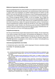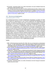 ■ Kommersant - Kommersant (26.9.2022): Кремль рассчитывает на более активное устранение ошибок при мобилизации [Kreml baut auf aktivere Beseitigung von Fehlern bei Mobilisierung], https://www.kommersant.ru/doc/5581793, Zugriff 27.12.2023 ■ Kreml - Kreml [Russland] (31.10.2022): Ответы на вопросы журналистов [Antworten auf Fragen von Journalisten], http://kremlin.ru/events/president/news/69730, Zugriff 22.12.2023 ■ Landinfo - Referat für Länderinformationen der Einwanderungsbehörde [Norwegen] (10.8.2023): Russland: Militærtjeneste og mobilisering til krigen i Ukraina [Russland: Militärdienst und Mobilisie rung für den Krieg in der Ukraine], https://www.ecoi.net/en/file/local/2095753/Russland-temanotat -Militaertjeneste-og-mobilisering-til-krigen-i-Ukraina-10082023.pdf , Zugriff 8.2.2024 ■ MBZ - Außenministerium der Niederlande [Niederlande] (31.3.2023): Country of origin information report Russian Federation, https://www.government.nl/binaries/government/documenten/directives/ 2023/06/31/country-of-origin-information-report-russian-federation/EN COI Report Netherlands on Russian Federation March 2023.pdf, Zugriff 13.2.2024 ■ MoD@DefenceHQ - Ministry of Defence - @DefenceHQ [United Kingdom] (30.10.2023): Defence Intelligence Update on Ukraine [benutzergenerierter Inhalt], https://twitter.com/DefenceHQ/status/1 718912487213637907/photo/1, Zugriff 23.1.2024 ■ MoD@DefenceHQ - Ministry of Defence - @DefenceHQ [United Kingdom] (3.9.2023): Defence Intelligence Update on Ukraine [benutzergenerierter Inhalt], https://twitter.com/DefenceHQ/status/1 698212159715459238/photo/1, Zugriff 9.1.2024 ■ MoD@DefenceHQ - Ministry of Defence - @DefenceHQ [United Kingdom] (29.8.2023): Defence Intelligence Update on Ukraine [benutzergenerierter Inhalt], https://twitter.com/DefenceHQ/status/1 696394754865455170/photo/1, Zugriff 9.1.2024 ■ NGE - Nowaja gaseta Ewropa (3.8.2023): Гонки на гробовых [Sarg-Wettrennen], https://novayaga zeta.eu/articles/2023/08/03/gonki-na-grobovykh, Zugriff 28.12.2023 ■ NGE - Nowaja gaseta Ewropa (22.9.2022): Источник: засекреченный пункт указа о мобилизации позволяет Минобороны призвать один миллион человек [Quelle: Geheim gehaltener Punkt des Mobilisierungserlasses erlaubt Verteidigungsministerium, 1 Million Personen einzuberufen], https: //novayagazeta.eu/articles/2022/09/22/istochnik-zasekrechennyi-punkt-ukaza-o-mobilizatsii-pozvo liaet-minoborony-prizvat-odin-million-chelovek-news , Zugriff 22.12.2023 ■ ÖB Moskau - Österreichische Botschaft Moskau [Österreich] (11.2.2025): Auskunft der Botschaft, per E-Mail ■ ÖB Moskau - Österreichische Botschaft Moskau [Österreich] (1.7.2024): Asylländerbericht zur Russi schen Föderation 2024, https://www.ecoi.net/en/file/local/2116897/RUSS_ÖB-Bericht_2024_07.pdf, Zugriff 8.11.2024 [Login erforderlich] ■ RBK - RBK (28.9.2022): Власти заявили, что срочников могут мобилизовать после увольнения в запас [Behörden erklärten, dass Grundwehrdiener nach Entlassung in Reserve mobilisiert werden können], https://www.rbc.ru/politics/28/09/2022/633442a19a79471d6c7b7a7b, Zugriff 2.2.2024 ■ RG - Rossijskaja gaseta [Russland] (21.9.2022): Шойгу: В рамках мобилизации будут призваны 300 тысяч резервистов [Schojgu: Im Rahmen der Mobilisierung werden 300.000 Reservisten einberufen werden], https://rg.ru/2022/09/21/shojgu-v-ramkah-mobilizacii-budut-prizvany-300-tysia ch-rezervistov.html, Zugriff 22.12.2023 ■ RIA Nowosti - RIA Nowosti [Russland] (20.11.2023): В Подмосковье создадут элитный полк для отправки в зону СВО [In Moskauer Region wird Eliteregiment zur Entsendung in Zone der speziellen Militäroperation gegründet], https://ria.ru/20231115/svo-1909628049.html, Zugriff 27.12.2023 ■ RIA Nowosti - RIA Nowosti [Russland] (19.10.2022): Мобилизация женщин: подлежат ли призыву из запаса в 2022 году [Mobilisierung von Frauen: ob sie Einberufung aus Reserve im Jahr 2022 unterliegen], https://ria.ru/20221019/mobilizatsiya-1825087089.html, Zugriff 23.2.2024 ■ Standard - Standard, Der (28.9.2022): Widerstand gegen Rekrutierung in russischer Republik Da gestan, https://www.derstandard.at/story/2000139477516/widerstand-gegen-rekrutierung-in-dages tan, Zugriff 27.12.2023 ■ SWP/Klein - Stiftung Wissenschaft und Politik (Herausgeber), Klein, Margarete (Autor) (7.6.2024): Wie Russland für einen langen Krieg rekrutiert (SWP-Aktuell 26), https://www.swp-berlin.org/public ations/products/aktuell/2024A26_Russland_rekrutiert.pdf, Zugriff 6.12.2024 ■ TASS - TASS [Russland] (28.10.2022): Частичная мобилизация в России: 300 тыс. за 37 дней. Шойгу доложил Путину о завершении частичной мобилизации [Teilmobilmachung in Russland: 300.000 in 37 Tagen: Schojgu vermeldete an Putin Teilmobilisierungsende], https://tass.ru/armiya-i -opk/16189289, Zugriff 22.12.2023 48