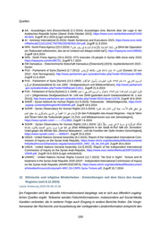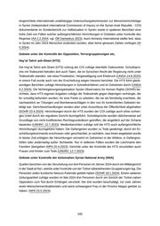 Quellen ■ AA - Auswärtiges Amt [Deutschland] (2.2.2024): Auswärtiges Amt, Bericht über die Lage in der Arabischen Republik Syrien (Stand: Ende Oktober 2023), https://www.ecoi.net/de/dokument/21043 40.html, Zugriff 26.2.2024 [Login erforderlich] ■ AI - Amnesty International (5.2024): Death Sentences and Executions 2023, https://www.ecoi.net/e n/file/local/2110112/ACT5079522024ENGLISH.pdf, Zugriff 11.9.2024 ■ NPA - North Press Agency (23.5.2024): له ذفنتس ةضﺭاعملﺍ مكح مﺍدعﺇ هتﺭدصﺃ يف فيﺭ ؟بلح [Wird die Opposition ein Todesurteil vollstrecken, das sie im Umland von Aleppo erteilt hat?], https://npasyria.com/186550, Zugriff 18.6.2024 ■ NPA - North Press Agency (20.4.2023): HTS executes 19 people in Syrias Idlib since early 2023, https://npasyria.com/en/96731, Zugriff 5.7.2024 ■ ÖB Damaskus - Österreichische Botschaft Damaskus [Österreich] (2023): Asylländerbericht 2023 - Syrien ■ PoS - Parliament of Syria [Syrien] (2.7.2012): نوناقلﺍ 19 ماعل 2012 نوناق ةحفاكم ﺏاهﺭإلﺍ [Gesetz 19 von 2012 - Anti-Terrorgesetz], http://www.parliament.gov.sy/arabic/index.php?node=55151&cat=4306, Zugriff 21.6.2024 ■ PoS - Parliament of Syria [Syrien] (13.3.1950): موسرملﺍ يعيرشتلﺍ 61 ماعل 1950 نوناق ﺕابوقعلﺍ لوصﺃو ﺕامكاحملﺍ ةيركسعلﺍ [Gesetzesdekret 61 von 1950 - Strafgesetzbuch und Militärverfahren], http://www.parliament .gov.sy/arabic/index.php?node=5585&cat=11811, Zugriff 21.6.2024 ■ PoS - Parliament of Syria [Syrien] (1.1.1949): نوناق ﺕابوقعلﺍ ماعلﺍ 148 ماعل 1949 لّدعملﺍ ــب موسرملﺍ يعيرشتلﺍ 1 ماعل 2011) [Allgemeines Strafgesetzbuch Nr. 148 von 1949 (geändert durch Gesetzesdekret Nr. 1 von 2011)], http://www.parliament.gov.sy/arabic/index.php?node=55151&cat=12278, Zugriff 18.6.2024 ■ SNHR - Syrian Network for Human Rights (12.9.2023): Todesstrafe - Militärfeldgerichte, https://snhr .org/wp-content/pdf/english/R230904E.pdf, Zugriff 18.6.2024 ■ SOHR - Syrian Observatory for Human Rights (23.4.2024): ىلع ىطخ ماظن ..دسألﺍ ةئيه ريرحت ماشلﺍ ذفنت ةبوقع مﺍدعإلﺍ قحب 13 ًاصخش نم نييندملﺍ نييركسعلﺍو ذنم علطم ماعلﺍ [In den Fußstapfen des Assad-Regimes - Hay’at Tahrir ash-Sham führt die Todesstrafe gegen 13 Zivil- und Militärpersonen aus seit Jahresbeginn], https://www.syriahr.com/-------/711390/ , Zugriff 7.6.2024 ■ SOHR - Syrian Observatory for Human Rights (18.1.2024): ةمكحملﺍ ةيركسعلﺍ يف ةنيدم يعﺍرلﺍ ﺭدصت ًامكح ًايلكش قحب ةلتق ﺓﺭزجم ﺯوﺭون يوﺫو اياحضلﺍ نوبلاطي ةلﺍدعلاب [Das Militärgericht in der Stadt Al-Ra’i fällt ein „ formelles“ Urteil gegen die Mörder des „ Newroz-Massakers“, und die Familien der Opfer fordern Gerechtigkeit], https://www.syriahr.com/-----/699247 , Zugriff 25.6.2024 ■ UNGA - United Nations General Assembly (9.2.2024): Report of the Independent International Com mission of Inquiry on the Syrian Arab Republic, https://www.ohchr.org/sites/default/files/documents/ hrbodies/hrcouncil/sessions-regular/session55/A_HRC_55_64_EN.pdf, Zugriff 26.6.2024 ■ UNGA - United Nations General Assembly (14.8.2023): Report of the Independent International Commission of Inquiry on the Syrian Arab Republic, https://www.ecoi.net/en/file/local/2097210/G23 15549.pdf, Zugriff 24.6.2024 [Login erforderlich] ■ UNHRC - United Nations Human Rights Council (12.7.2023): “No End in Sight”: Torture and ill- treatment in the Syrian Arab Republic 2020-2023* - Independent International Commission of Inquiry on the Syrian Arab Republic (A/HRC/53/CRP.5), https://www.ohchr.org/sites/default/files/document s/hrbodies/hrcouncil/coisyria/A-HRC-53-CRP5-Syria-Torture.pdf , Zugriff 15.7.2024 12 Ethnische und religiöse Minderheiten - Entwicklungen seit dem Sturz des Assad- Regimes (seit 8.12.2024) Letzte Änderung 2025-05-08 22:36 [Im Folgenden wird der aktuelle Informationsstand dargelegt, wie er sich aus öffentlich zugäng lichen Quellen ergibt. Teilweise werden Falschinformationen, insbesondere auf Social-Media Kanälen verbreitet, die in weiterer Folge auch Eingang in andere Berichte finden. Die Vorge hensweise der Recherche und Ausarbeitung der vorliegenden Länderinformation entspricht den 193