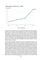 Quelle 16: SCPR 6.2024 In Syrien kam es im Jahr 2023 zu einer Hyperinflation der Preise, da sich der Verbraucher preisindex (VPI) im Vergleich zu 2022 verdoppelte und einen Wert von 400 erreichte (Basisjahr 2021), verglichen mit 185 im Jahr 2022. Diese Inflation führte zu einem deutlichen Anstieg der Armutsgrenzen in ganz Syrien. Auch der Wert der Türkischen Lira (TL), die in den Gebieten der Opposition als Handelswährung verwendet wird, sank 2023 gegenüber dem US-Dollar um 28,6 % im Vergleich zu 2022. Der Wechselkurs betrug 2023 24,2 TL pro US-Dollar, verglichen mit 18,8 TL pro US-Dollar im Jahr 2022 (SCPR 6.2024). Einem syrischen, staatsnahen Medium zufolge sind die Preise auf dem Markt im Nordwesten Syriens 2024 zwischen 12 und 38 % gestiegen (Syria TV 31.5.2024). Die Assad-Regierung hatte keine Maßnahmen zum Schutz der Privatwirtschaft ergriffen. Im Ge genteil wurde der Privatsektor zunehmend ausgebeutet. Privatunternehmen waren besonders gefährdet, geschlossen zu werden oder dass ihr Vermögen willkürlich beschlagnahmt wird. Die Regierung füllte die Staatskasse durch willkürliche Steuern und Bußgelder für Privatunterneh men auf. Darüber hinaus stahlen und beschlagnahmten bewaffnete Akteure, die für das Regime arbeiteten, regelmäßig das Eigentum kleiner Unternehmen oder erpressten Bestechungsgelder oder „ Schutzgelder“. Die Regierung hatte auch Einnahmen aus dem Privatsektor erzielt, indem sie die Anzahl oder die Kosten der bürokratischen Schritte erhöhte, die für die Gründung eines Unternehmens erforderlich waren. Im Januar 2023 hatte das Ministerium für Binnenhandel und Verbraucherschutz damit begonnen, von allen Verkäufern zu verlangen, dass sie ein „ Handelsre gister“ einholen – ein bürokratischer Schritt, der einen Kleinunternehmer zwischen 800.000 und 1 Million Syrischen Pfund kostete (BS 19.3.2024). Der Gouverneur von Homs, der im Rahmen 261