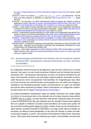 wo-years-of-legal-paralysis-as-de-facto-authorities-struggle-to-issue-new-land-registry , Zugriff 9.7.2024 ■ Syria TV - Syria TV (1.6.2024): ..قئاثولاب 750 فلﺃ يﺭوس نوﺩّدهم نﺍدقفب مهتاكلتمم يف ايﺭوس [Dokumente - 750.000 Syrer sind davon bedroht, ihr Eigentum zu verlieren], https://www.syria.tv/-750------- , Zugriff 9.8.2024 ■ TDA-SY - The Day after (1.11.2024): Interventional Policies to Address the Problem of Informal Settlements in Syria, https://tda-sy.org/wp-content/uploads/INTERVENTIONAL-POLICIES-TO-A DDRESS-THE-PROBLEM-OF-INFORMAL-SETTLEMENTS-IN-SYRIA.pdf , Zugriff 25.11.2024 ■ UNGA - United Nations General Assembly (10.9.2024): Report of the Independent International Commission of Inquiry on the Syrian Arab Republic (September - Oktober 2024), https://documents. un.org/doc/undoc/gen/g24/133/77/pdf/g2413377.pdf, Zugriff 14.10.2024 ■ UNGA - United Nations General Assembly (9.2.2024): Report of the Independent International Com mission of Inquiry on the Syrian Arab Republic, https://www.ohchr.org/sites/default/files/documents/ hrbodies/hrcouncil/sessions-regular/session55/A_HRC_55_64_EN.pdf, Zugriff 26.6.2024 ■ UNHCR - United Nations High Commissioner for Refugees (5.11.2024): Informal settlements, https: //emergency.unhcr.org/emergency-assistance/shelter-camp-and-settlement/settlements/informal-s ettlements, Zugriff 29.11.2024 ■ UNRCHCSYR - UN Resident Coordinator and Humanitarian Coordinator for Syria (22.9.2024): FFM Syrien 2024 - Gespräch mit UN Resident Coordinator and Humanitarian Coordinator for Syria, Protokoll [liegt in der Staatendokumentation auf] ■ USDOS - United States Department of State [USA] (22.4.2024): 2023 Country Report on Human Rights Practices: Syria, https://www.state.gov/reports/2023-country-reports-on-human-rights-pract ices/syria/, Zugriff 3.5.2024 15.3 Grundversorgung und Wirtschaft in den Gebieten unter der Kontrolle der kurdisch dominierten SDF - Demokratische Autonome Administration von Nord- und Ostsy rien (DAANES) Letzte Änderung 2025-05-08 22:36 [Im vorliegenden Dokument wurde auf die allgemeine Lage nach dem Umbruch am 8.12.2024 fokussiert. Die Lage in von den Kurden dominierten Gebieten unter der Kontrolle der kurdisch dominierten SDF – Demokratische Administration von Nord- und Ostsyrien (DAANES) hat sich bisher nicht wesentlich verändert und wurde daher aufgrund zeitlicher, personeller und finan zieller Ressourcen nicht in der gewohnten Tiefe bearbeitet. Für Fragestellungen dazu, bitten wir auf die Vorversion der Länderinformation zurückzugreifen bzw. uns mittels einer Anfrage zu kontaktieren. Die Einarbeitung aktueller Quellen und Informationen zur Lage in der DAANES wird zeitnah mittels Aktualisierung erfolgen. Weitere Informationen zur vorliegenden Länderin formation finden sich im Kapitel Länderspezifische Anmerkungen.] Im kurdisch-kontrollierten Nordostsyrien liegen die größten Ölreserven des Landes (WiWo 9.12.2024). Im Gouvernement Deir ez-Zour befinden sich 40 % dieser Reserven sowie mehrere Gasfelder (DW 10.12.2024). Laut dem britischen Unternehmen Gulfsands fördern die Kurden in etwa 80.000 Barrel Öl pro Tag. Das entspricht nach den aktuellen Preisen einem täglichen Wert von ungefähr 5,6 Millionen US-Dollar. Damit kontrollieren die Kurden einen großen Teil der syrischen Einnahmequellen (WiWo 9.12.2024). Darüber hinaus war die internationale Ko alition bestrebt, sie jährlich finanziell zu unterstützen, und einige Länder haben ein Budget von Hunderten von Millionen Dollar bereitgestellt, um die Löhne der Kämpfer zu zahlen und ande re finanzielle Ausgaben zu sichern. Die Syrischen Demokratischen Kräfte (Syrian Democratic Forces - SDF) nutzen diese finanzielle Unterstützung vor allem, um die Gehälter und Löhne ihrer 300