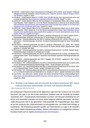 ■ CSIS - Center for Strategic and International Studies (11.12.2024): Dont Rush Syrian Refugees Return, https://www.csis.org/analysis/dont-rush-syrian-refugees-return , Zugriff 7.1.2025 ■ DS - Daily Sabah (27.12.2024): New Syrian IDs, passports to be printed in Türkiye, https://www.dail ysabah.com/politics/new-syrian-ids-passports-to-be-printed-in-turkiye/news , Zugriff 9.1.2025 ■ FA - Foreign Affairs (11.2.2025): Syrias Biggest Problem, https://www.foreignaffairs.com/syria/syria s-biggest-problem, Zugriff 14.2.2025 ■ HLP Syria - Housing, Land & and Property Rights Syria (20.1.2025): Explained: Recovering Extorted Properties Amid Fraud and Other Legal Challenges, https://hlp.syria-report.com/hlp/explained-rec overing-extorted-properties-amid-fraud-and-other-legal-challenges , Zugriff 7.2.2025 ■ HRW - Human Rights Watch (16.1.2025): World Report 2025: Rights Trends in Syria, https://www. hrw.org/world-report/2025/country-chapters/syria, Zugriff 3.2.2025 ■ JS - Just Security (29.1.2025): Syria’s Uncertain Path: Challenges of Return, Stability and Trust, https://www.justsecurity.org/107044/syria-uncertain-return-stability-trust , Zugriff 7.2.2025 ■ Nashra - El Nashra (11.2.2025): لوؤسم :يﺭوس 100 فلﺃ نطﺍوم ﺍوﺩاع نم ايكرت لالخ نيرهش ربعمو ﺓديدج ﺱوباي لبقتسﺍ 627 فلﺃ رفاسم [Syrischer Beamter: 100.000 Bürger in zwei Monaten aus der Tür kei zurückgekehrt, 627.000 Reisende am Grenzübergang Jdeidet Yabous begrüßt], https://el nashra.com/news/show/1710358/-يﺭوس-لوؤسم 100-عمو-نيرهش-لالخ-ايكرت-ﺍوﺩاع-يﺭوس-فلﺃ Zugriff 11.2.2025 ■ NRC - Norwegian Refugee Council (13.2.2025): Syria: Destruction, lack of services delay safe returns within country, https://www.nrc.no/news/2025/february/syria-destruction-lack-of-services-d elay-safe-returns-within-country , Zugriff 13.2.2025 ■ ÖB Amman - Österreichische Botschaft Amman [Österreich] (6.2.2025): UNHCR HK Grandi - Briefing zu SY [erhalten per E-Mail] ■ REU - Reuters (5.2.2025a): Hope turns to regret among Syrians returning home from Turkey, https: //www.reuters.com/world/middle-east/hope-turns-regret-among-syrians-returning-home-turkey-202 5-02-05, Zugriff 5.2.2025 ■ Rudaw - Rudaw Media Network (15.12.2024): ماقممئاق مئاقلﺍ :وﺍﺩوورل ﺀدب ﺭوبع نييﺭوسلﺍ نيبغﺍرلﺍ ﺓﺩوعلاب مهﺩالبل [Bürgermeister von Al-Qaim gegenüber Rudaw: Syrer, die in ihr Land zurückkehren wollen, beginnen, die Grenze zu überqueren], https://www.rudawarabia.net/arabic/middleeast/iraq/151220243#hatha lyoum, Zugriff 20.12.2024 ■ T24 - T24 (9.1.2025): Ali Yerlikaya: Son bir ayda 52 bin 622 Suriyeli gönüllü olarak ülkesine döndü [Ali Yerlikaya: 52.622 Syrer sind im letzten Monat freiwillig in ihr Land zurückgekehrt], https://t24.co m.tr/haber/ali-yerlikaya-son-bir-ayda-gonullu-52-bin-622-suriyeli-ulkesine-dondu,1208880 , Zugriff 14.1.2025 ■ TNA - New Arab, The (19.2.2025): Lebanon ’facilitating Syrian deportation flights’ from Europe, https://www.newarab.com/news/lebanon-facilitating-syrian-deportation-flights-europe , Zugriff 20.2.2025 ■ UNHCR - United Nations High Commissioner for Refugees (20.2.2025): Syria Governorates of Return Overview (as of 20 February 2025), https://reliefweb.int/report/syrian-arab-republic/syria-g overnorates-return-overview-20-february-2025 , Zugriff 20.2.2025 ■ UNHCR - United Nations High Commissioner for Refugees (11.2.2025): Syria situation: Crisis Re gional Flash Update #13, https://reporting.unhcr.org/syria-situation-crisis-regional-flash-update-13 , Zugriff 11.2.2025 ■ UNHCR - United Nations High Commissioner for Refugees (6.2.2025): Flash Regional Survey on Syrian Refugees Perceptions and Intentions on Return to Syria (February 2025), https://reliefweb.in t/report/syrian-arab-republic/flash-regional-survey-syrian-refugees-perceptions-and-intentions-ret urn-syria-february-2025 , Zugriff 7.2.2025 ■ UNHCR - United Nations High Commissioner for Refugees (23.1.2025): UNHCR Regional Flash Update #11 - Syria Situation Crisis (23 January 2025), https://reliefweb.int/report/syrian-arab-repub lic/unhcr-regional-flash-update-11-syria-situation-crisis-23-january-2025 , Zugriff 29.1.2025 ■ UNHCR - United Nations High Commissioner for Refugees (2.1.2025): Syria situation: Crisis Re gional Flash Update #8, https://reporting.unhcr.org/syria-situation-crisis-regional-flash-update-8?_ kx=geZMpaDDK-jQ3Afth9Qg7BrXHxj4q-CZODhu-eKHycMuJSDGU-7NYOWPD95FZZPh.QSR8 8A, Zugriff 8.1.2025 ■ UNHCR - United Nations High Commissioner for Refugees (27.12.2024): UNHCR Regional Flash Update #7 - Syria Situation Crisis (27 December 2024), https://reliefweb.int/report/syrian-arab-rep ublic/unhcr-regional-flash-update-7-syria-situation-crisis-27-december-2024 , Zugriff 3.1.2025 331