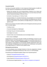 Finanzielle Starthilfe Die Höhe der finanziellen Starthilfe ist in einem degressiven Modell geregelt und staffelt sich nach dem Zeitpunkt der Antragstellung auf unterstützte freiwillige Rückkehr: • Während des laufenden asyl- oder fremdenrechtlichen Verfahrens bis ein Monat nach Rechtskraft der Rückkehrentscheidung: € 900,00 pro Person; ab einem Monat nach Rechts kraft der Rückkehrentscheidung: € 250,00 pro Person • Kernfamilien: Maximalbetrag von € 3.000 pro Familie • Sonderkonstellation: Für vulnerable Rückkehrende, die grundsätzlich von der finanziellen Starthilfe ausgeschlossen wären, kann nach individueller Einzelfallprüfung durch das Bun desamt für Fremdenwesen und Asyl (BFA) ein einmaliger Betrag von € 250,00 pro Person gewährt werden. Kriterien für den Erhalt der finanziellen Starthilfe und der Reintegrationsunterstützung (Ausnah men im Einzelfall möglich): • Freiwillige Ausreise • Finanzielle Bedürftigkeit bzw. Mittellosigkeit • Erstmaliger Bezug der Unterstützungsleistung • Nachhaltigkeit der Ausreise • Keinerlei Evidenz eines Sicherheitsrisikos durch die freiwillige Rückkehr • Keine schwere Straffälligkeit Ausgeschlossen vom Bezug der finanziellen Starthilfe sind EWR-Bürger, Personen aus den Westbalkan-Staaten sowie Staatsangehörige von Ländern mit visumsfreier Einreise nach Ös terreich (z.B. Georgien, Moldawien). Sonderkonstellation: Für vulnerable Rückkehrende aus diesen Regionen, die grundsätzlich von der finanziellen Starthilfe ausgeschlossen wären, kann nach individueller Einzelfallprüfung durch das Bundesamt für Fremdenwesen und Asyl (BFA) ein einmaliger Betrag von € 250,00 pro Person gewährt werden Reintragrationsunterstützung Für 42 Herkunftsländer können freiwillige Rückkehrer im Sinne des Leitgedankens „ Rückkehr mit Perspektiven“ Reintegrationsunterstützung im Wert von bis zu € 3.500 beantragen. Die Abwicklung des Reintegrationsangebots erfolgt mit den Kooperationspartnern: • Frontex (EU Reintegrationsprogramm EURP) • IOM Österreich (Reintegrationsprogramm RESTART IV) • Caritas Österreich (Reintegratonsprogramm IRMA plus III) • OFII (französische Migrationsbehörde „French Office for Immigration and Integration“) 334