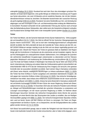 gegen syrische Militärziele als Verteidigungsmaßnahme, um zu verhindern, dass strategische Waffen in die Hände potenziell feindlicher Kräfte in Syrien fallen (Soufan 16.12.2024). Israel gab an, dass das 1974 geschlossene Abkommen über den Rückzug aus Syrien mit der Machtüber nahme durch die Rebellen „ geplatzt“ sei. Des Weiteren gab Israel zu, dass seine Truppen an „ einigen zusätzlichen Punkten“ jenseits der Pufferzone weiter im Landesinneren von Syrien ope rieren, betonte jedoch, dass sie „ nicht auf Damaskus vorrücken“ (BBC 10.12.2024) Netanjahu sagte, dass das Gebiet südlich von Damaskus entmilitarisiert wird. Israel werde weder zulassen, dass die Neue Syrische Armee in diesem Gebiet stationiert wird, noch irgendeine Bedrohung für die drusische Gemeinschaft in Südsyrien akzeptieren. Der israelische Außenminister forder te die Umwandlung des Landes in einen „ Bundesstaat“ (TRT Arabi 27.2.2025). Der syrische Präsident Ahmad ash-Shara’ hat den israelischen Einmarsch verurteilt und gleichzeitig betont, dass die derzeitige Lage im Land „ keine neuen Konflikte zulässt“ (AJ 3.2.2025). Russland Russland intervenierte 2015 auf Ersuchen der syrischen Regierung und hatte seitdem Luftun terstützung, Spezialeinheiten, Militärberater, private Militärunternehmen, Schulungen, Waffen und Ausrüstung bereitgestellt. Iran und Russland unterstützten auch bei der Bekämpfung der Terrorgruppe Islamischer Staat im Irak und in der Levante (CIA 31.7.2024). Russland war ei ner von al-Assads wichtigsten Verbündeten im syrischen Bürgerkrieg. Nach seinem Sturz floh der syrische Machthaber mit seiner Familie nach Russland (Presse 28.1.2025). Russland, das lange ein zentraler Akteur in Syrien war, hat sich weitgehend zurückgezogen, da es nach dem Sturz al-Assads keinen klaren geopolitischen Vorteil mehr sieht (VB Amman 9.2.2025). Anfang Jänner 2025 berichtete der syrische Außenminister gegenüber der Financial Times, dass das Assad-Regime das Land mit etwa 8 Milliarden US-Dollar Schulden bei Russland belastet ha be (FT 29.1.2025). Russische Beamte unter der Leitung des stellvertretenden Außenministers, reisten zu Gesprächen mit den neuen syrischen Behörden nach Damaskus, wo auch ein Tref fen mit dem ash-Shara’a stattfand. Russland erklärte sich bereit, Syrien beim Wiederaufbau nach dem Krieg zu unterstützen, gab jedoch zu, dass bei den Gesprächen über die Zukunft seines strategisch wichtigen Luftwaffenstützpunkts und Marinehafens im Land keine Fortschrit te erzielt wurden (FT 29.1.2025). Die Übergangsregierung in Syrien hat den Vertrag mit einer russischen Firma für den Betrieb des Mittelmeerhafens Tartus aufgelöst. Das Informationsmi nisterium in Damaskus bestätigte, dass alle Einkünfte aus dem Hafen ab sofort dem syrischen Staat zufließen sollen. Der Vertrag mit der Firma Stroytransgaz sollte ursprünglich bis zum Jahr 2068 laufen. Als Begründung für die Auflösung nannte der Zolldirektor von Tartus, dass die russische Firma ihren Verpflichtungen der Modernisierung des Hafens nicht nachgekommen sei (Tagesschau 23.1.2025). Lediglich die russische Konzession für Betrieb und Ausbaus des Handelshafens in Tartus – nicht des militärischen – wurde einstweilen zurückgezogen. Über die Marinebasis wird noch verhandelt, stellte der syrische Verteidigungsminister Abu Qasra in einem Interview mit Al Araby klar (Standard 23.1.2025). Während Russland sich nach Jahren der Unterstützung des Assad-Regimes voraussichtlich aus Syrien zurückziehen wird, betonte ash-Shara’ die „ strategischen Interessen“ mit dem „ zweitmächtigsten Land der Welt“. Er wol le nicht, dass Russland Syrien auf eine Weise verlässt, die seine Beziehung zu diesem Land 40