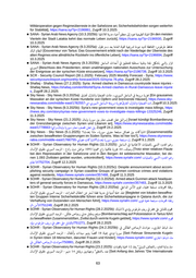 Militäroperation gegen Regimeüberreste in der Sahelzone an; Sicherheitsbehörden sorgen weiterhin für Stabilität], https://sana.sy/?p=2196861, Zugriff 10.3.2025 ■ SANA - Syrian Arab News Agecny (10.3.2025b): ﺓايحلﺍ ةيعيبطلﺍ ﺩوعت ىلﺇ مظعم ﺀايحﺃ ةنيدم ةيقﺫاللﺍ [In den meisten Vierteln der Stadt Latakia kehrt das normale Leben zurück], https://sana.sy/?p=2196930 , Zugriff 10.3.2025 ■ SANA - Syrian Arab News Agecny (9.3.2025a): ظفاحم :ﺱوطرط ةظفاحملﺍ دهشت ﺓﺩوع ةيجيﺭدت ﺓايحلل ةماعلﺍ دعب رحﺩ لولف ماظنلﺍ دئابلﺍ [Gouverneur von Tartus: Das Gouvernement erlebt nach der Niederlage der Überreste des alten Regimes eine allmähliche Rückkehr ins öffentliche Leben], https://sana.sy/?p=2196694, Zugriff 10.3.2025 ■ SANA - Syrian Arab News Agecny (9.3.2025b): ﺭﺍرق يسائﺭ ليكشتب ةنجل ةينطو ةلقتسم قيقحتلل يف ﺙﺍدحﺃ لحاسلﺍ يﺭوسلﺍ [Beschluss des Präsidenten, einen unabhängigen nationalen Ausschuss zur Untersuchung der Ereignisse an der syrischen Küste einzusetzen], https://sana.sy/?p=2196739, Zugriff 10.3.2025 ■ SCR - Security Council Report (30.1.2025): February 2025 Monthly Forecast - Syria, https://www. securitycouncilreport.org/monthly-forecast/2025-02/syria-76.php , Zugriff 28.2.2025 ■ Shafaq - Shafaq News (27.2.2025): Syria: Armed clashes in Damascus countryside leave injuries - Shafaq News, https://shafaq.com/en/World/Syria-Armed-clashes-in-Rural-Damascus-leave-injurie s, Zugriff 28.2.2025 ■ Sky News - Sky News (9.3.2025a): ﺓﺭزجم ةعورم يف لحاسلﺍ ..يﺭوسلﺍ ﺕائم اياحضلﺍ لﺯانملﺍو قرت [Ein grausames Massaker an der syrischen Küste Hunderte von Opfern und brennende Häuser], https://www.sky newsarabia.com/middle-east/1782557-يم-يﺭوسلﺍ-لحاسلﺍ-ةعورم-ﺓﺭزجم ٔقرت Zugriff 10.3.2025 ■ Sky News - Sky News (9.3.2025b): Syria’s new government vows to investigate mass killings, https: //news.sky.com/story/syrias-new-government-vows-to-investigate-mass-killings-13325246 , Zugriff 11.3.2025 ■ Sky News - Sky News (21.2.2025): ليئﺍرسﺇ نلعت فصق رباعم نيب ايﺭوس نانبلو [Israel kündigt Bombardierung der Grenzübergänge zwischen Syrien und Libanon an], https://www.skynewsarabia.com/middle- east/1778663-ﺍٕيﺍرس ٔنانبلو-ايﺭوس-رباعم-فصق-نلعت-لي Zugriff 24.2.2025 ■ Sky News - Sky News (5.1.2025): ﺕاكابتشﺍ نيب لئاصف ةحلسم يبونج ..ايﺭوس ﺍﺫام ؟ﺙدحي [Zusammenstöße zwischen bewaffneten Gruppierungen im Süden Syriens. Was ist hier los?], https://www.skynewsa rabia.com/middle-east/1766755-ياصف-ﺕاكابتشﺍ ٔ؟ﺙدحي-ايﺭوس-يبونج-ةحلسم-ل Zugriff 9.1.2025 ■ SOHR - Syrian Observatory for Human Rights (11.3.2025): مغﺭ ﺀودهلﺍ يبسنلﺍ ﺕايلمعلاب ةيماقتنالﺍ يف لحاسلﺍ ..هلابجو 44 ﺓﺭزجم ةيفئاط ﺡﺍﺭ اهتيحض 1093 نطﺍوم نوﺩ ﻉﺩﺍﺭ - دصرملﺍ يﺭوسلﺍ قوقحل ناسنإلﺍ [Trotz einer relativen Flaute bei den Repressalien in der Sahelzone und in den Bergen 44 sektiererische Massaker, bei de nen 1.093 Zivilisten getötet wurden, unkontrolliert], https://www.syriahr.com/-ﺕايلمعلاب-يبسنلﺍ-ﺀودهلﺍ-مغﺭ ماقتنالﺍ 752704, Zugriff 12.3.2025 ■ SOHR - Syrian Observatory for Human Rights (10.3.2025c): Despite announcement about accom plishing security campaign in Syrian coastline Groups of gunmen continue crimes and violations against residents, https://www.syriahr.com/en/357488, Zugriff 11.3.2025 ■ SOHR - Syrian Observatory for Human Rights (10.3.2025d): Armed attack Gunmen attack headquar ters of general security forces in Damascus, https://www.syriahr.com/en/357483, Zugriff 11.3.2025 ■ SOHR - Syrian Observatory for Human Rights (28.2.2025a): ةقفرب ﺕاعومجم ةحلسم ..ةيلحم ىوق نمألﺍ يلخﺍدلﺍ ذفنت ةلمح ةينمﺃ يف ةنيدم انطق رفست نع لاقتعﺍ ﺕﺍرشعلﺍ - دصرملﺍ يﺭوسلﺍ قوقحل ناسنإلﺍ [Begleitet von lokalen bewaffne ten Gruppen Interne Sicherheitskräfte führen eine Sicherheitskampagne in Qatana durch, die zur Verhaftung von Dutzenden von Menschen führt], https://www.syriahr.com/-ىوق-ةيلحم-ةحلسم-ﺕاعومجم-ةقفرب لﺍ-نمألﺍ 751248, Zugriff 28.2.2025 ■ SOHR - Syrian Observatory for Human Rights (28.2.2025b): موجه لبانقلاب ىلع رفخم يف فيﺭ ﺱوطرط يﺩؤي كابتشال حلسم لتقمو يندم ﺹاصرب شئاط - دصرملﺍ يﺭوسلﺍ قوقحل ناسنإلﺍ [Bombenanschlag auf Polizeistation in Tartus führt zu bewaffneten Zusammenstößen, Zivilist durch verirrte Kugeln getötet], https://www.syriahr.com/-موجه ﺩؤي-ﺱوطرط-فيﺭ-يف-رفخم-ىلع-لبانقلاب 751271, Zugriff 28.2.2025 ■ SOHR - Syrian Observatory for Human Rights (24.2.2025b): ذنم ﻁابش ..يﺭاجلﺍ ﺙﺩﺍوح ﺹاصرلﺍ شئاطلﺍ يف ايﺭوس يﺩوت ﺓايحب 18 اًصخش مهنيب ﺕﺍديس لافطﺃو - دصرملﺍ يﺭوسلﺍ قوقحل ناسنإلﺍ [Seit Februar Streunende Kugeln in Syrien töten 18 Menschen, darunter Frauen und Kinder], https://www.syriahr.com/-يﺭاجلﺍ-ﻁابش-ذنم يف-شئاطلﺍ-ﺹاصرلﺍ-ﺙﺩﺍوح 750881, Zugriff 28.2.2025 ■ SOHR - Syrian Observatory for Human Rights (23.2.2025): ذنم ةيﺍدب ..ماعلﺍ „ فلاحتلﺍ “يلودلﺍ ذفني 12 ةيلمع ﺕامجهو دض „ “ميظنتلﺍ نييﺩاهجو لتقيو 14 مهنم - دصرملﺍ يﺭوسلﺍ قوقحل ناسنإلﺍ [Seit Anfang des Jahres ”Die Internationale 63