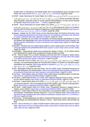 (2016), Olive Branch (2018) und Peace Spring (2019), die alle darauf abzielten, die SDF oder die Volksverteidigungseinheiten (YPG), die größte Fraktion innerhalb der SDF, zu bekämpfen. Vor dem Sturz des Assad-Regimes, der Ende November mit einer Offensive der HTS in der Nähe von Aleppo begann, waren die Fronten in Syrien zwischen den SDF und SNA mehrere Jahre lang unverändert geblieben. Der Zusammenbruch des Regimes führte jedoch zu raschen Veränderungen (LWJ 26.1.2025). In den Gebieten in Nord- und Ostsyrien kam es im Februar aufgrund von alten Streitigkeiten und Racheakten zu einer Eskalation von Familien- und Stammeszusammenstößen, bei denen fünf Menschen getötet und sieben weitere verletzt wurden, darunter eine Frau. Diese Zusammenstö ße konzentrierten sich auf die Gouvernements ar-Raqqa, Dei ez-Zour und al-Hasaka, wo leichte und mittelschwere Waffen zum Einsatz kamen (SOHR 15.2.2025). Inmitten dieser Unsicherheit haben Berichte über willkürliche Verhaftungen im Nordosten Syriens die Spannungen zwischen verschiedenen Bevölkerungsgruppen verschärft (UNOCHA 12.2.2025). Quellen ■ AlHurra - Al-Hurra (27.2.2025): حيضوت نم „ “دسق دعب نالعﺇ :نالجوﺃ ال ةقالع انل [SDF-Klarstellung nach Öcalans Ankündigung: Wir haben nichts zu tun mit], https://www.alhurra.com/syria/2025/02/28/-فقو-ﺩاح-لدج ايﺭوس-يف-رصيق-لسلسمل-تقؤم Zugriff 28.2.2025 ■ AlMon - Al Monitor (27.2.2025): End of an era? PKK leader Ocalan orders militants to end war with Turkey, dissolve, https://www.al-monitor.com/originals/2025/02/end-era-pkk-leader-ocalan-order s-militants-end-war-turkey-dissolve , Zugriff 28.2.2025 ■ ANF - Firat News Agency (27.2.2025): Aufruf von Abdullah Öcalan für Frieden und eine demokrati sche Gesellschaft, https://anfdeutsch.com/aktuelles/aufruf-von-abdullah-Ocalan-fur-frieden-und-e ine-demokratische-gesellschaft-45431 , Zugriff 28.2.2025 ■ Arabiya - Al Arabiya News (26.2.2025): ﺕﺍﺭاغ ةيكرت ىلع ﺕﺍوق ايﺭوس ةيطﺍرقميدلﺍ دصحت 12 اليتق [Türkische Luftangriffe auf Syrische Demokratische Kräfte fordern 12 Tote], https://www.alarabiya.net/arab-and- world/2025/02/26/12-نش-ﺕﺍﺭاغب-اليتق ّايﺭوس-قرش-لامش-يف-ايكرت-اهت Zugriff 28.2.2025 ■ Etana - Etana Syria (22.2.2025): Syria Update #19: 22 February 2025, https://etanasyria.org/syria -update-19-22-february-2025 , Zugriff 28.2.2025 ■ GPC - Global Protection Cluster (3.4.2025): Protection Landscape in Syria; A Snapshot; March 2025, https://globalprotectioncluster.org/sites/default/files/2025-04/250325_protection_landscape_in_syr ia_vfinal.pdf, Zugriff 23.4.2025 ■ ISW - Institute for the Study of War (16.4.2025): Iran Update, April 16, 2025, https://www.understa ndingwar.org/backgrounder/iran-update-april-16-2025 , Zugriff 22.4.2025 ■ Leb24 - Lebanon 24 (13.2.2025): ريرقت ـل The Spectator: ﺏرحلﺍ ةيلهألﺍ يف ايﺭوس مل هتنت دعب [Der Spectator-Be richt: Der Bürgerkrieg in Syrien ist noch lange nicht vorbei], https://www.lebanon24.com/news/world- news/1319783/ل-ريرقت ـthe-spectator-دعب-هتنت-مل-ايﺭوس-يف-ةيلهألﺍ-ﺏرحلﺍ Zugriff 13.2.2025 ■ LWJ - Long War Journal (26.1.2025): The strategic Tishrin Dam has become a flashpoint in post- Assad Syria, https://www.longwarjournal.org/archives/2025/01/the-strategic-tishrin-dam-has-bec ome-a-flashpoint-in-post-assad-syria.php , Zugriff 29.1.2025 ■ SCR - Security Council Report (30.1.2025): February 2025 Monthly Forecast - Syria, https://www. securitycouncilreport.org/monthly-forecast/2025-02/syria-76.php , Zugriff 28.2.2025 ■ Sky News - Sky News (31.12.2024b): مغﺭ نالعإلﺍ ..يكريمألﺍ ﺕاكابتشالﺍ ﺓرمتسم يلامش ايﺭوس [Trotz US-Ankün digung: Zusammenstöße in Nordsyrien dauern an], https://www.skynewsarabia.com/middle-east/17 65628------- , Zugriff 2.1.2025 ■ SOHR - Syrian Observatory for Human Rights (15.4.2025): ريدم دصرملﺍ :يﺭوسلﺍ رطخلﺍ ىلع دسلﺍ ةجيتن فصقلﺍ يكرتلﺍ لالخ رهشألﺍ هعبﺭألﺍ ةيضاملﺍ فصقو ﺕﺍريسملﺍ ..ةيكرتلﺍ - دصرملﺍ يﺭوسلﺍ قوقحل ناسنإلﺍ [Direktor der Syrischen Beobachtungsstelle: Die Gefahr für den Damm durch die türkischen Bombardierungen in den letzten 68