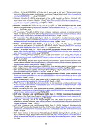 ■ AlHurra - Al-Hurra (10.1.2025a): „ “مﺍدعﺇ ﺭاتخم يح يحﺍوضب قشمﺩ هطابتﺭال ماظنب دسألﺍ [”Bürgermeister eines Vororts von Damaskus wegen Verbindungen zum Assad-Regime hingerichtet], https://www.alhurra. com/syria/2025/01/10/------- , Zugriff 13.1.2025 ■ Almodon - Almodon (9.1.2025): :ايﺭوس ﺭﺍرق ﺓﺩاعإب نيموكحملﺍ ًايئانج ىلﺇ نوجسلﺍ دعب مهﺭﺍرف [Syrien: Kriminelle Häft linge kehren nach Flucht ins Gefängnis zurück], https://www.almodon.com/arabworld/2025/1/8/-ايﺭوس مهﺭﺍرف-دعب-نوجسلﺍ-ىلﺇ-ايئانج-نيموكحملﺍ-ﺓﺩاعإب-ﺭﺍرق Zugriff 9.1.2025 ■ Almodon - Almodon (8.1.2025): فيك مكحُتس ايﺭوس دعب نايبلﺍ مقﺭ ؟دحﺍو [Wie wird Syrien nach der ersten Erklärung regiert werden?], https://www.almodon.com/arabworld/2025/1/8/-نايبلﺍ-دعب-ايﺭوس-مكحتس-فيك دحﺍو-مقﺭ Zugriff 8.1.2025 ■ AP - Associated Press (28.12.2024): Syria’s embassy in Lebanon suspends services as Lebanon hands over former Syrian army officers, https://apnews.com/article/syria-lebanon-embassy-officer s-kurds-turkey-women-8b7271fb54898a2b0cdc52f9b931f9a7 , Zugriff 7.1.2025 ■ AP - Associated Press (10.12.2024): Syrian rebels free prisoners from Assad’s notorious dungeons who celebrate in Damascus streets, https://apnews.com/article/syria-assad-prisons-human-rights-d etainees-saydnaya-982edfde78e852431d94f3f1a51b26ba, Zugriff 6.2.2025 ■ Arabiya - Al Arabiya News (12.1.2025a): مل ..ﺍوطﺭوتي قالطﺇ 360 ًاطباض ًﺍرصنعو نم شيجلﺍ يف صمح [Sie waren nicht beteiligt: 360 Offiziere und Soldaten aus der Armee in Homs entlassen], https://www.alarabiya. net/arab-and-world/syria/2025/01/12/---360------ , Zugriff 13.1.2025 ■ Arabiya - Al Arabiya News (10.1.2025): Syria monitor says alleged al-Assad loyalist ‘executed’ in public, https://english.alarabiya.net/News/middle-east/2025/01/10/syria-monitor-says-alleged-al-a ssad-loyalist-executed-in-public- , Zugriff 13.1.2025 ■ Arabiya - Al Arabiya News (7.12.2024): Around 2,000 Syrian soldiers cross to Iraq, https://english.al arabiya.net/News/middle-east/2024/12/07/syrian-troops-enter-iraq-via-al-qaim-crossing-sources , Zugriff 10.12.2024 ■ AW - Arab Weekly, the (9.1.2025): Syrian interim justice ministers appearance in execution video sparks calls for removal, https://thearabweekly.com/syrian-interim-justice-ministers-appearance-e xecution-video-sparks-calls-removal , Zugriff 17.2.2025 ■ BBC - British Broadcasting Corporation (10.3.2025): Syria operation against Assad loyalists ends after deadly violence, https://www.bbc.com/news/articles/cewk4rv9v17o, Zugriff 11.3.2025 ■ DW - Deutsche Welle (19.1.2025): Schwierige Strafverfolgung in Syrien, https://www.dw.com/de/sc hwierige-strafverfolgung-in-syrien/a-71293160 , Zugriff 29.1.2025 ■ Economist - Economist, The (3.2.2025): An interview with Ahmed al-Sharaa, Syrias president, https: //www.economist.com/middle-east-and-africa/2025/02/03/an-interview-with-ahmed-al-sharaa-syria s-president, Zugriff 5.2.2025 ■ Etana - Etana Syria (3.2.2025): Syria Update #16 - 3 February 2025, https://reliefweb.int/report/syr ian-arab-republic/syria-update-16-3-february-2025 , Zugriff 4.2.2025 ■ FR24 - France 24 (2.3.2025): Syria forms committee to draft transitional constitutional charter, https: //www.france24.com/en/middle-east/20250302-syria-forms-committee-to-draft-transitional-constit utional-charter, Zugriff 4.3.2025 ■ FR24 - France 24 (8.1.2025): From Sharia judge to minister: Syrias new justice minister tied to public executions, https://observers.france24.com/en/middle-east/20250108-from-sharia-judge-to-syrian-j ustice-minister-public-executions , Zugriff 17.2.2025 ■ HLP Syria - Housing, Land & and Property Rights Syria (3.2.2025b): Government Suspends All Transactions Over Real Estate Property, https://hlp.syria-report.com/hlp/government-suspends-all-t ransactions-over-real-estate-property , Zugriff 7.2.2025 ■ HLP Syria - Housing, Land & and Property Rights Syria (14.1.2025b): Explained: Compulsory Extension of Rented Properties, https://hlp.syria-report.com/hlp/explained-compulsory-extension-o f-rented-properties, Zugriff 7.2.2025 ■ HLP Syria - Housing, Land & and Property Rights Syria (7.1.2025): Explained: Mechanisms for Recovering Properties Confiscated Under the Anti-Terrorism Court, https://hlp.syria-report.com/hl p/explained-mechanisms-for-recovering-properties-confiscated-under-the-anti-terrorism-court , Zugriff 7.2.2025 ■ ISPI - Italian Institute for International Political Studies (7.2.2025): Coming to Terms with the past in Syria: The First, Fragile, Steps of Transitional Justice ISPI, https://www.ispionline.it/en/publication/c oming-to-terms-with-the-past-in-syria-the-first-fragile-steps-of-transitional-justice-199922 , Zugriff 7.2.2025 78