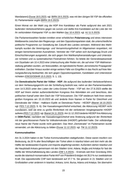 Mandataren] (Duvar 18.5.2023, vgl. BIRN 19.5.2023), was mit den übrigen 58 YSP die offiziellen 61 Parlamentarier ergibt (BIRN 19.5.2023). Einen Monat vor der Wahl zog die HDP ihre Kandidatur als Partei aufgrund des seit 2021 laufenden Verbotsverfahrens gegen sie zurück und stellte ihre Kandidaten auf die Liste der mit ihr verbündeten Kleinpartei YSP zu den Wahlen (taz 10.4.2023; vgl. AJ 11.5.2023). Die Parlamentswahlen fanden inmitten einer erheblichen Polarisierung und eines intensiven Wettbewerbs zwischen den Regierungs- und den Oppositionsparteien statt, die unterschiedliche politische Programme zur Gestaltung der Zukunft des Landes vertraten. Während des Wahl kampfs wurden die Vereinigungs- und Versammlungsfreiheit im Allgemeinen respektiert, mit einigen bemerkenswerten Ausnahmen. Vertreter der YSP sahen sich durchgängig Druck und Einschüchterungen ausgesetzt, die sich gegen ihre Wahlkampfveranstaltungen und Unterstüt zer richteten und zu systematischen Festnahmen führten. So leitete der Generalstaatsanwalt von Diyarbakır am 10.4.2023 eine Untersuchung aller Reden ein, die auf einer YSP-Wahlveran staltung gehalten wurden, um festzustellen, ob irgendwelche Reden „ terroristische Propaganda“ enthielten. Darüber hinaus wurden einige weitere Fälle von Eingriffen in das Recht auf freie Mei nungsäußerung beobachtet, die sich gegen Oppositionsparteien, Kandidaten und Unterstützer richteten (OSCE/ODIHR 15.5.2023, S. 1, 13). Die Demokratische Partei der Völker - HDP, die aufgrund des laufenden Verbotsverfahrens vor dem Verfassungsgericht von der Schließung bedroht war, nahm an den Parlamentswahlen vom 14.5.2023 unter den Listen der Links-Grünen Partei - YSP teil. Am 27.8.2023 stellte die HDP auf ihrem vierten außerordentlichen Kongress ihre Aktivitäten ein und beschloss, den politischen Kampf unter dem Dach der YSP fortzusetzen. Die YSP wiederum hielt ihren vierten großen Kongress am 15.10.2023 ab und änderte ihren Namen in Partei für Gleichheit und Demokratie der Völker - Halkların Eşitlik ve Demokrasi Partisi - HEDEP (Bianet 16.10.2023; vgl. FES 7.12.2023, S. 6). Der Kassationsgerichtshof entschied, die Abkürzung HEDEP nicht zuzulassen, weil sie eine zu große Ähnlichkeit mit der verbotenen Vorgängerpartei HADEP aufwies (FES 7.12.2023; vgl. Bianet 24.11.2023). Am 11.12.2023 änderte HEDEP ihre Abkürzung in DEM-Partei, nachdem der Kassationsgerichtshof eine Änderung aufgrund der Ähnlichkeit mit der geschlossenen Partei für Volksdemokratie (HADEP) gefordert hatte. Der vollständige neue Name der Partei wurde nicht geändert. Das Wort „ Demokratie“ im Parteinamen wurde verwendet, um die Abkürzung zu bilden (Duvar 11.12.2023; vgl. TM 11.12.2023). Kommunalwahlen Am 31.3.2024 haben in der Türkei Kommunalwahlen stattgefunden. Diese waren insofern von Bedeutung, da 20 % aller Beschäftigten der Türkei allein in Istanbul leben und dort mehr als die Hälfte der landesweiten Exporte und Importe abgefertigt werden. Außerdem stehen Istanbul und die Hauptstadt Ankara gemeinsam mit den Städten Izmir, Adana, Muğla und Antalya für fast die Hälfte der Wirtschaftsleistung des Landes (DW 1.4.2024). - Erstmals seit ihrer Gründung 2001 wurde die islamisch-konservative Partei AKP von Präsident Erdoğan mit 35,5 % nur zweitstärkste Kraft. Die oppositionelle CHP kam landesweit auf 37,7 %. Sie gewann in 21 Städten und 14 Großstädten unter anderem in Istanbul, Ankara, Izmir, Bursa, Adana und Antalya. Sie übernahm 15