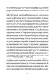 laut Jahresstatistik 2023 der türkischen Menschenrechtsvereinigung bei 256 Demonstrationen und Versammlungen (2022: 571), wobei 3.487 Personen (2022: 4.553) durch das gewaltsame Einschreiten geschlagen und verletzt wurden (İHD/HRA 23.8.2024; vgl. İHD/HRA 27.9.2023b, S. 4, 6). Jüngstes Beispiel sind die Massenproteste gegen die Absetzung des CHP-Bürgermeisters von Istanbul, Ekrem İmamoğlu. - In dem Schreiben von Human Rights Watch, Amnesty International und 13 weiteren Organisationen hieß es, man sei alarmiert „ über die jüngste Eskalation des staatlichen Vorgehens gegen die Meinungs- und Versammlungsfreiheit nach der Verhaftung des Bürgermeisters Ekrem İmamoğlu“. Die Menschenrechtsorganisationen beklagten in ihrer Stellungnahme, die Proteste seien mit „ ungerechtfertigter und unrechtmäßiger Polizeigewalt beantwortet“ worden. Menschen seien mit Schlagstöcken geschlagen und getreten worden, wenn sie am Boden lagen. Polizisten hätten wahllos Pfefferspray, Tränengas, Plastikgeschos se und Wasserwerfer gegen die Demonstranten eingesetzt, was zu zahlreichen Verletzungen geführt habe. Pauschale Demonstrationsverbote wie in Istanbul, Ankara, Antalya und Izmir sei en unverhältnismäßig und nicht zu rechtfertigen (Tagesschau 28.3.2025; vgl. WOZ 1.4.2025). Die Parlamentarische Versammlung des Europarates (PACE) „ verurteilt[e] aufs Schärfste die ungerechtfertigten Festnahmen und Inhaftierungen von Demonstranten sowie die unverhältnis mäßige Anwendung von Gewalt durch die Strafverfolgungsbehörden während der Proteste und Fälle von Misshandlungen oder anderen Menschenrechtsverletzungen an inhaftierten Perso nen […] Ebenso [brachte] die Versammlung ihre Besorgnis über Berichte über tätliche Angriffe auf Journalisten und Medienmitarbeiter während der Berichterstattung über die Proteste so wie über deren Festnahmen und Inhaftierungen im Zusammenhang mit ihrer Berichterstattung zum Ausdruck. Mindestens 20 Lokaljournalisten wurden während der Berichterstattung über die Proteste von der Polizei oder von Demonstranten tätlich angegriffen und mindestens zehn von ihnen wurden inhaftiert“ [Anm.: Originalzitat aus dem Englischen] (CoE-PACE 9.4.2025, Pt. 5 u.6). Im gleichen Sinne äußerte sich das Europäische Parlament und „ fordert[e] die türki schen Staatsorgane nachdrücklich auf, alle Vorwürfe der Schikanierung und der übermäßigen Anwendung von Gewalt gegen Demonstranten unverzüglich und wirksam zu untersuchen und die Versammlungs- und Protestfreiheit zu wahren“ (EP 7.5.2025, Pt. 23). - Nach den Protesten erhob die Staatsanwaltschaft in Istanbul Anklage gegen 819 Personen. Ihnen wurde die Teil nahme an nicht genehmigten Demonstrationen vorgeworfen. 278 Festgenommene waren in Untersuchungshaft. Einigen Protestierenden drohten bis zu fünf Jahre und in einem Fall bis zu neun Jahre Haft (Zeit Online 8.4.2025; vgl. SRF 23.3.2025). Anlässlich der Verhaftung des Istanbuler Bürgermeisters Ekrem İmamoğlu am 19.3.2025 ver abschiedete der Kongress der Gemeinden und Regionen des Europarates am 27.3.2025 eine Deklaration, in welcher u. a. auf starken Einschränkungen der Meinungs- und Versammlungs freiheit in den letzten Monaten hingewiesen wird. Der Kongress verurteilte insbesondere den Rückgriff auf pauschale Verbote öffentlicher Demonstrationen, wie sie in Gemeinden verhängt wurden, in denen Bürgermeister abgesetzt oder verhaftet wurden, darunter Istanbul. Dem fol gend verlangte der Kongress, den übermäßig weit gefassten Einschränkungen der Versamm lungs- und Meinungsfreiheit ein Ende zu setzen, die den politischen Pluralismus einschränken, 165