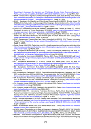 Deutschland._Bundesamt_für_Migration_und_Flüchtlinge,_Briefing_Notes_Zusammenfassung_–_ Türkei,_Januar_bis_Juni_2024,_30.06.2024.pdf?nodeid=30237621&vernum=-2, Zugriff 4.9.2024 ■ BAMF - Bundesamt für Migration und Flüchtlinge [Deutschland] (12.6.2023): Briefing Notes, KW 26, https://www.bamf.de/SharedDocs/Anlagen/DE/Behoerde/Informationszentrum/BriefingNotes/2023/ briefingnotes-kw26-2023.pdf?__blob=publicationFile&v=3, Zugriff 20.2.2024 ■ BAMF - Bundesamt für Migration und Flüchtlinge [Deutschland] (13.9.2021): Briefing Notes, KW 37/2021, Entscheidung des Verfassungsgerichtshofs gegen Demonstrationsverbo, https://www.ba mf.de/SharedDocs/Anlagen/DE/Behoerde/Informationszentrum/BriefingNotes/2021/briefingnotes-k w37-2021.pdf?__blob=publicationFile&v=3, Zugriff 9.2.2024 ■ CoE-CLRA - Congress of Local and Regional Authorities of the Council of Europe (27.3.2025): Dismissals of mayors in Türkiye [Declaration 12 (2025)], https://rm.coe.int/dismissals-of-mayors-i n-turkiye-rapporteurs-david-eray-switzerland-r-i/1680b5069a , Zugriff 2.4.2025 ■ CoE-PACE - Council of Europe - Parliamentary Assembly (9.4.2025): The arrest of the Mayor of Istanbul and the state of democracy and human rights in Türkiye [Resolution 2597 (2025)], https: //pace.coe.int/en/files/34285/pdf, Zugriff 10.4.2025 ■ DFAT - Department of Foreign Affairs and Trade [Australien] (16.5.2025): DFAT Country Information Report; Türkiye, https://www.dfat.gov.au/sites/default/files/country-information-report-turkey.pdf , Zugriff 21.5.2025 ■ Duvar - Duvar (19.4.2024): Turkish top court lifts disciplinary punishment for campus political activity, https://www.duvarenglish.com/turkish-top-court-lifts-disciplinary-punishment-for-campus-political-a ctivity-news-64229, Zugriff 24.9.2024 ■ EC - Europäische Kommission (30.10.2024): Türkiye 2024 Report [SWD(2024) 696 final], ht tps://neighbourhood-enlargement.ec.europa.eu/document/download/8010c4db-6ef8-4c85-aa06- 814408921c89_en?filename=Türkiye Report 2024.pdf, Zugriff 5.11.2024 ■ EC - Europäische Kommission (8.11.2023): Türkiye 2023 Report [SWD (2023) 696 final], https:// neighbourhood-enlargement.ec.europa.eu/system/files/2023-11/SWD_2023_696 Türkiye report.pdf, Zugriff 9.11.2023 ■ EC - Europäische Kommission (12.10.2022): Türkiye 2022 Report [SWD (2022) 333 final], ht tps://neighbourhood-enlargement.ec.europa.eu/document/download/ccedfba1-0ea4-4220-9f94- ae50c7fd0302_en?filename=Türkiye Report 2022.pdf, Zugriff 31.10.2023 ■ EC - Europäische Kommission (6.10.2020): Turkey 2020 Report [SWD (2020) 355 final], https: //ec.europa.eu/neighbourhood-enlargement/sites/near/files/turkey_report_2020.pdf , Zugriff 17.10.2023 ■ EP - Europäisches Parlament (7.5.2025): Entschließung des Europäischen Parlaments vom 7. Mai 2025 zu den Berichten 2023 und 2024 der Kommission über die Türkei (2025/2023(INI)), https: //www.europarl.europa.eu/doceo/document/TA-10-2025-0092_DE.html , Zugriff 11.6.2025 ■ EP - Europäisches Parlament (7.6.2022): Entschließung des Europäischen Parlaments vom 7. Juni 2022 zu dem Bericht 2021 der Kommission über die Türkei (2021/2250(ΙΝΙ)), https://www.europarl .europa.eu/doceo/document/TA-9-2022-0222_DE.pdf , Zugriff 12.9.2023 ■ FH - Freedom House (26.2.2025): Freedom in the World 2025 - Turkey, https://www.ecoi.net/de/do kument/2125459.html, Zugriff 20.5.2025 ■ FH - Freedom House (10.3.2023): Freedom in the World 2023 - Turkey, https://freedomhouse.org/c ountry/turkey/freedom-world/2023, Zugriff 28.4.2023 ■ FIDH/OMCT/İHD/HRA - International Federation for Human Rights, World Organisation Against Torture, İnsan Hakları Derneği/Human Rights Association (5.2021): TURKEY PART II - Turkey’s Civil Society on the Line: A Shrinking Space for Freedom of Association, https://ihd.org.tr/en/wp-content /uploads/2021/05/OBS-İHD-TURKEY.pdf, Zugriff 31.10.2023 ■ HDN - Hürriyet Daily News (27.3.2015): Turkish main opposition CHP to appeal for the annulment of the security package, http://www.hurriyetdailynews.com/turkish-main-opposition-chp-to-appea l-for-the-annulment-of-the-security-package-.aspx?pageID=238&nID=80261&NewsCatID=338 , Zugriff 6.10.2023 ■ HRW - Human Rights Watch (16.1.2025): World Report 2025 - Türkiye, https://www.ecoi.net/de/do kument/2120045.html, Zugriff 17.1.2025 ■ ICSEM - Inquiry Commission on the State of Emergency Measures [Türkei] (1.2023): THE INQUIRY COMMISSION ON THE STATE OF EMERGENCY MEASURES ACTIVITY REPORT (2017 - 2022), https://soe.tccb.gov.tr/Docs/SOE_Report_20172022.pdf, Zugriff 9.2.2024 [Login erforderlich] ■ İHD/HRA - İnsan Hakları Derneği/Human Rights Association (23.8.2024): 2023 Yılı Hak İhlalleri Raporu İnsan Hakları Derneği [2023 Bericht über Rechtsverletzungen Menschenrechtsvereinigung], 171
