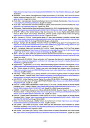 https://www.ihd.org.tr/wp-content/uploads/2024/08/2023-Yılı-Hak-İhlalleri-Bilançosu.pdf , Zugriff 20.9.2024 ■ İHD/HRA - İnsan Hakları Derneği/Human Rights Association (27.9.2023b): IHD’s Annual Human Rights Violations Report for 2022 – HRA, https://ihd.org.tr/en/ihds-annual-human-rights-violations-r eport-for-2022, Zugriff 30.1.2024 ■ ITUC-IGB - Internationaler Gewerkschaftsbund (o.D.): Der Globale Rechtsindex, https://survey.itu c-csi.org/Turkey.html?lang=de#tabs-2, Zugriff 27.6.2024 ■ ITUC-IGB - Internationaler Gewerkschaftsbund (2024): Internationaler Gewerkschaftsbund, https: //www.ituc-csi.org/turkiye?lang=de, Zugriff 20.6.2024 ■ ÖB Ankara - Österreichische Botschaft Ankara [Österreich] (4.2025): Asylländerbericht 2024 – ÖB An kara, https://www.ecoi.net/en/file/local/2125282/TUER_ÖB Bericht_2025_04.pdf, Zugriff 13.5.2025 ■ OHCHR - Office of the United Nations High Commissioner for Human Rights (25.3.2025): World News in Brief: Alarm over Türkiye detentions, Ukraine update, Sudan-Chad border emergency, https://news.un.org/en/story/2025/03/1161506, Zugriff 10.4.2025 ■ REU - Reuters (1.5.2024): Turkish police detain 217 May Day protesters in Istanbul, minister says, https://www.reuters.com/world/middle-east/turkish-police-fire-tear-gas-detain-dozens-may-day-pro testers-istanbul-2024-05-01 , Zugriff 20.6.2024 [Login erforderlich] ■ Spiegel - Spiegel, Der (8.3.2023): Türkische Polizei setzt Pfefferspray gegen Frauentagsdemo ein, https://www.spiegel.de/ausland/tuerkei-polizei-setzt-pfefferspray-gegen-frauentags-demo-ein-a-8 915f2b9-df31-478c-a8fd-5b63ee3c54a6 , Zugriff 20.2.2024 ■ SRF - Schweizer Radio und Fernsehen (23.3.2025): Türkei: Klage gegen CHP-Chef Özel wegen Präsidentenbeleidigung, https://www.srf.ch/news/international/politische-krise-in-der-tuerkei-klage -gegen-chp-chef-oezel-wegen-praesidentenbeleidigung , Zugriff 9.4.2025 ■ Stern - Stern (1.5.2024): Mehr als 200 Festnahmen bei Mai-Demonstrationen in Istanbul, https://ww w.stern.de/news/mehr-als-200-festnahmen-bei-mai-demonstrationen-in-istanbul-34676362.html , Zugriff 20.6.2024 ■ SWI - Swissinfo (2.5.2024): Polizei verhindert mit Tränengas Mai-Marsch in Istanbul Festnahmen, https://www.swissinfo.ch/ger/polizei-verhindert-mit-tränengas-mai-marsch-in-istanbul-festnahmen/ 76775949, Zugriff 20.6.2024 ■ Tagesschau - Tagesschau (28.3.2025): Menschenrechtsgruppen kritisieren Polizeigewalt, https: //www.tagesschau.de/ausland/asien/turkei-proteste-klage-polizeigewalt-100.html , Zugriff 9.4.2025 ■ TM - Turkish Minute (8.9.2021): Turkey’s top court rules blanket ban violated rights of protestors, https://www.turkishminute.com/2021/09/08/urkeystop-court-rules-blanket-ban-violated-rights-of-p rotestors/, Zugriff 9.2.2024 ■ TR-Today - Türkiye Today (26.11.2024): Protests to end violence against women in Türkiye marred by mass arrests - Türkiye Today, https://www.turkiyetoday.com/turkiye/protests-to-end-violence-a gainst-women-in-turkiye-marred-by-mass-arrests-84620 , Zugriff 21.5.2025 ■ UNHRCOM - United Nations Human Rights Committee (28.11.2024): Concluding observations on the second periodic report of Türkiye [CCPR/C/TUR/CO/2, https://www.ecoi.net/en/file/local/21203 09/g2420766.pdf, Zugriff 24.1.2025 ■ USDOS - United States Department of State [USA] (22.4.2024): Country Report on Human Rights Practices 2023 – Turkey (Türkiye), https://www.state.gov/wp-content/uploads/2024/02/528267_TU ̈RKIYE-2023-HUMAN-RIGHTS-REPORT.pdf , Zugriff 23.4.2024 [Login erforderlich] ■ USDOS - United States Department of State [USA] (20.3.2023): Country Report on Human Rights Practices 2022 – Turkey (Türkiye), https://www.state.gov/wp-content/uploads/2023/03/415610_TU ̈RKIYE-2022-HUMAN-RIGHTS-REPORT.pdf , Zugriff 29.9.2023 ■ USDOS - United States Department of State [USA] (30.3.2021): Country Report on Human Rights Practices 2020 – Turkey, https://www.state.gov/wp-content/uploads/2021/03/TURKEY-2020-HUM AN-RIGHTS-REPORT.pdf, Zugriff 29.11.2023 ■ WOZ - Die Wochenzeitung (1.4.2025): Türkei: Journalist:innen im Visier, https://www.woz.ch/taeglic h/2025/04/01/tuerkei-journalistinnen-im-visier , Zugriff 9.4.2025 ■ Zeit Online - Zeit Online (8.4.2025): Türkei: Mehr als 800 Menschen nach Protesten für Ekrem İmamoğlu angeklagt, https://www.zeit.de/politik/ausland/2025-04/tuerkei-proteste-ekrem-imamogl u-anklage-protestierende, Zugriff 9.4.2025 ■ Zeit Online - Zeit Online (25.6.2023): Türkei: Polizei nimmt in Istanbul Teilnehmer von Pride-Parade fest, https://www.zeit.de/gesellschaft/2023-06/tuerkei-istanbul-pride-festnahmen , Zugriff 20.2.2024 172